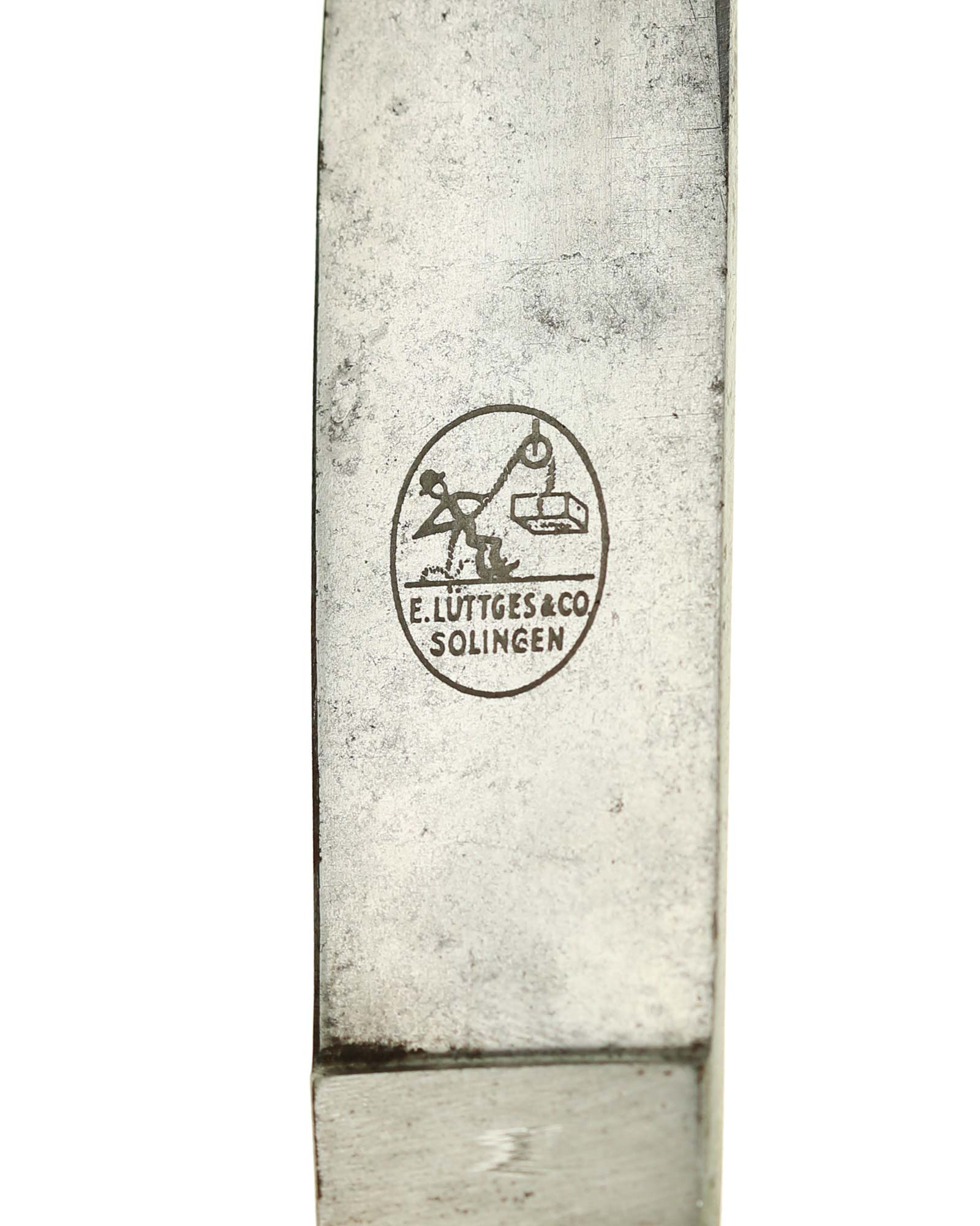 Клинок: Клинок никелированный, с одной стороны помещен девиз - "Кровь и честь" (нем. Blut und Ehre), с другой клеймо производителя E. Lüttges & Co. Solingen (Люттгес & Кo. Золинген).