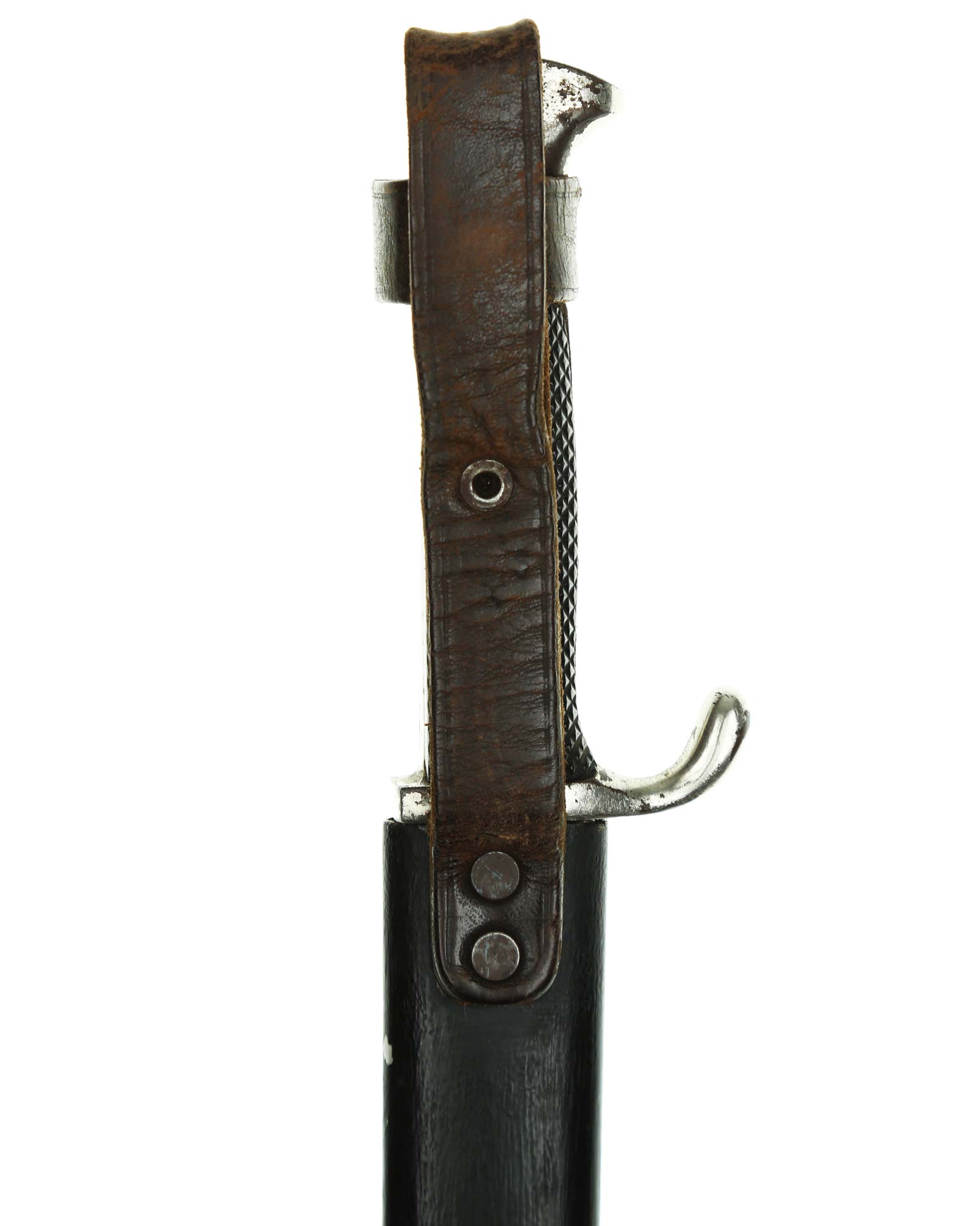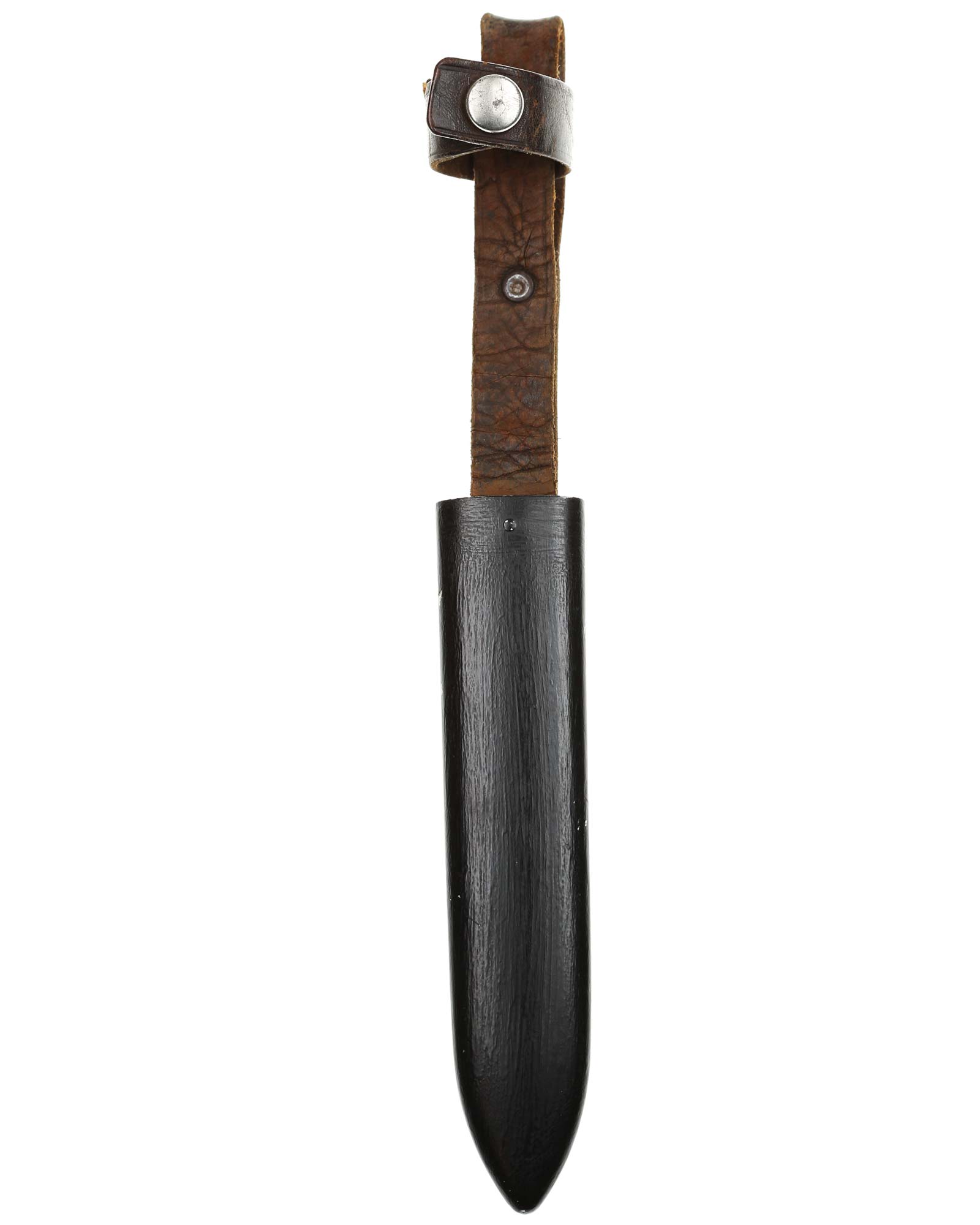 Ножны: Ножны изготовлены из окрашенной в черный цвет стали. Для плотного удержания клинка изнутри расположены две пружины, прикрепленные с помощью заклепок к внутренней стороне ножен. Устройство для ношения состоит из петли, состоящей из двухслойной кожаной ленты, крепящейся к ножнам двумя заклепками. В верхней части подвеса имеется ремешок, обращенный наружу, прикрепленныйс помощью заклепки, закрывающияся кнопкой. Кожаные ремни были черные и коричневые.