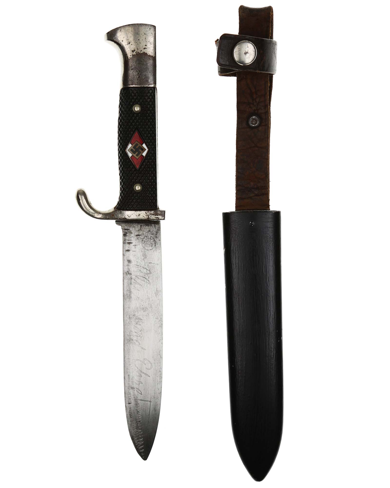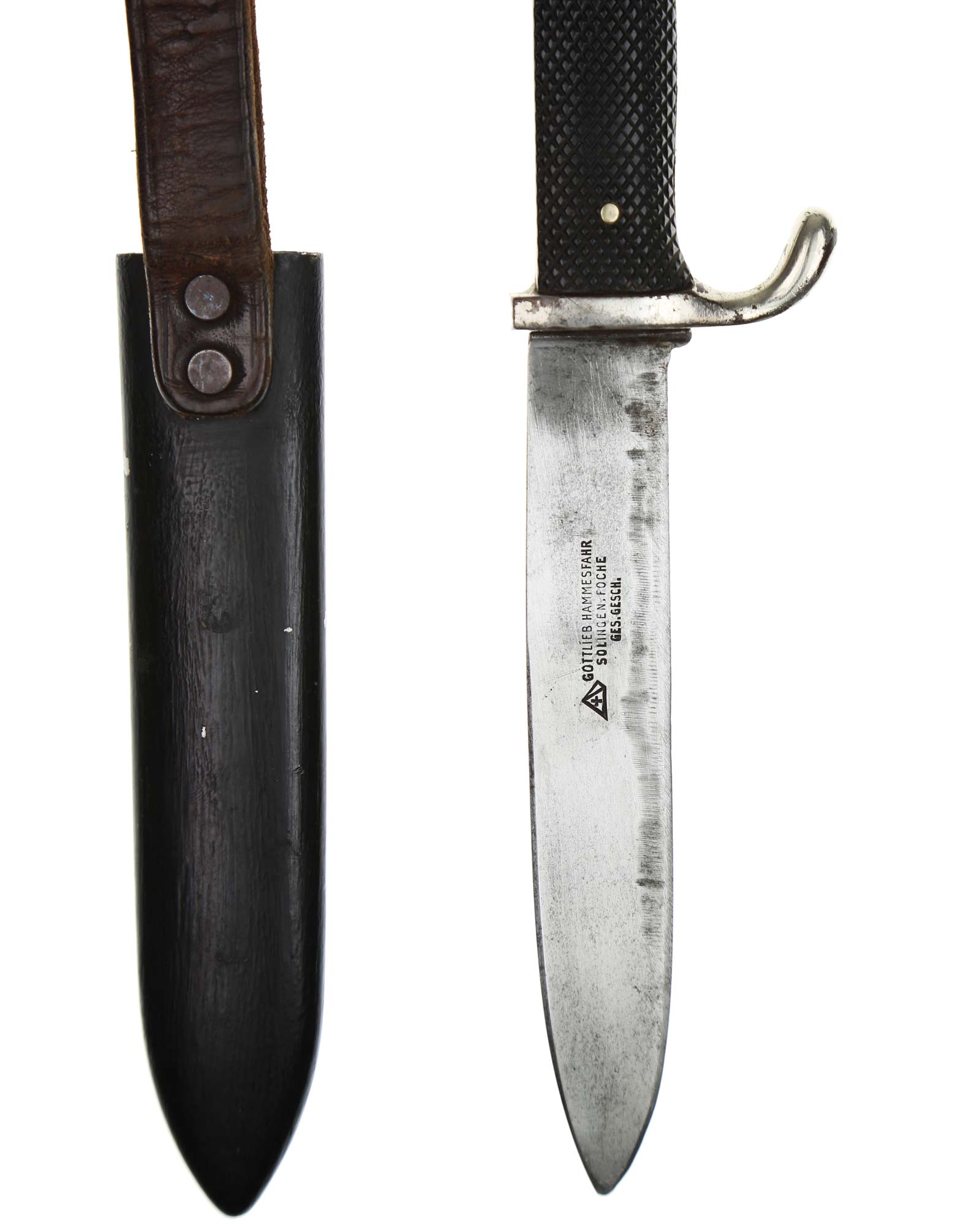 Нож "Гитлерюгенд" второго периода производства 1936-1938 гг. HJ-нож с клеймом Gottlieb Hammesfahr Solingen (Готтлиб Хаммесфар Золинген).