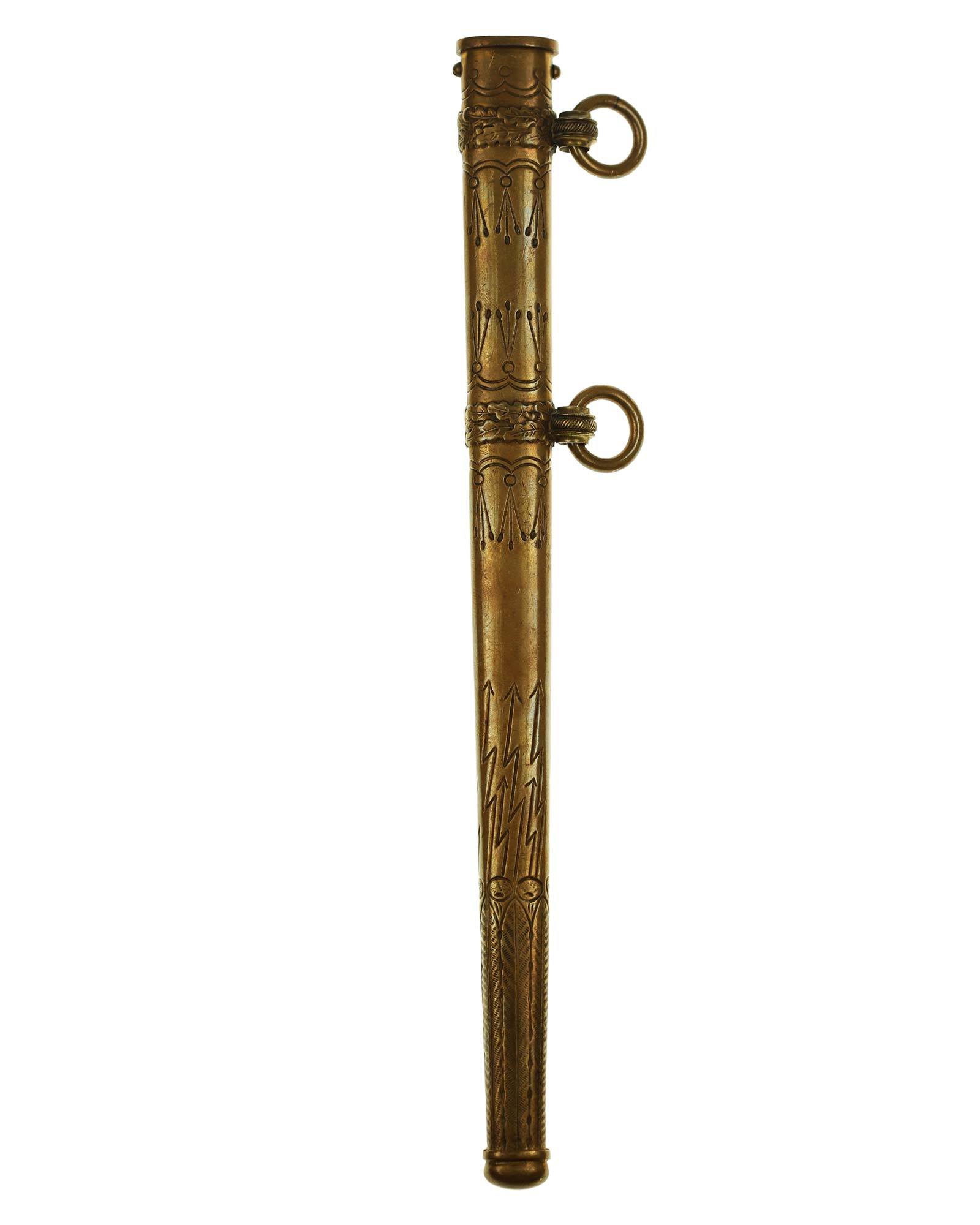 Ножны: Ножны латунные, с двумя кольцами, двумя обоймицами и устьем.