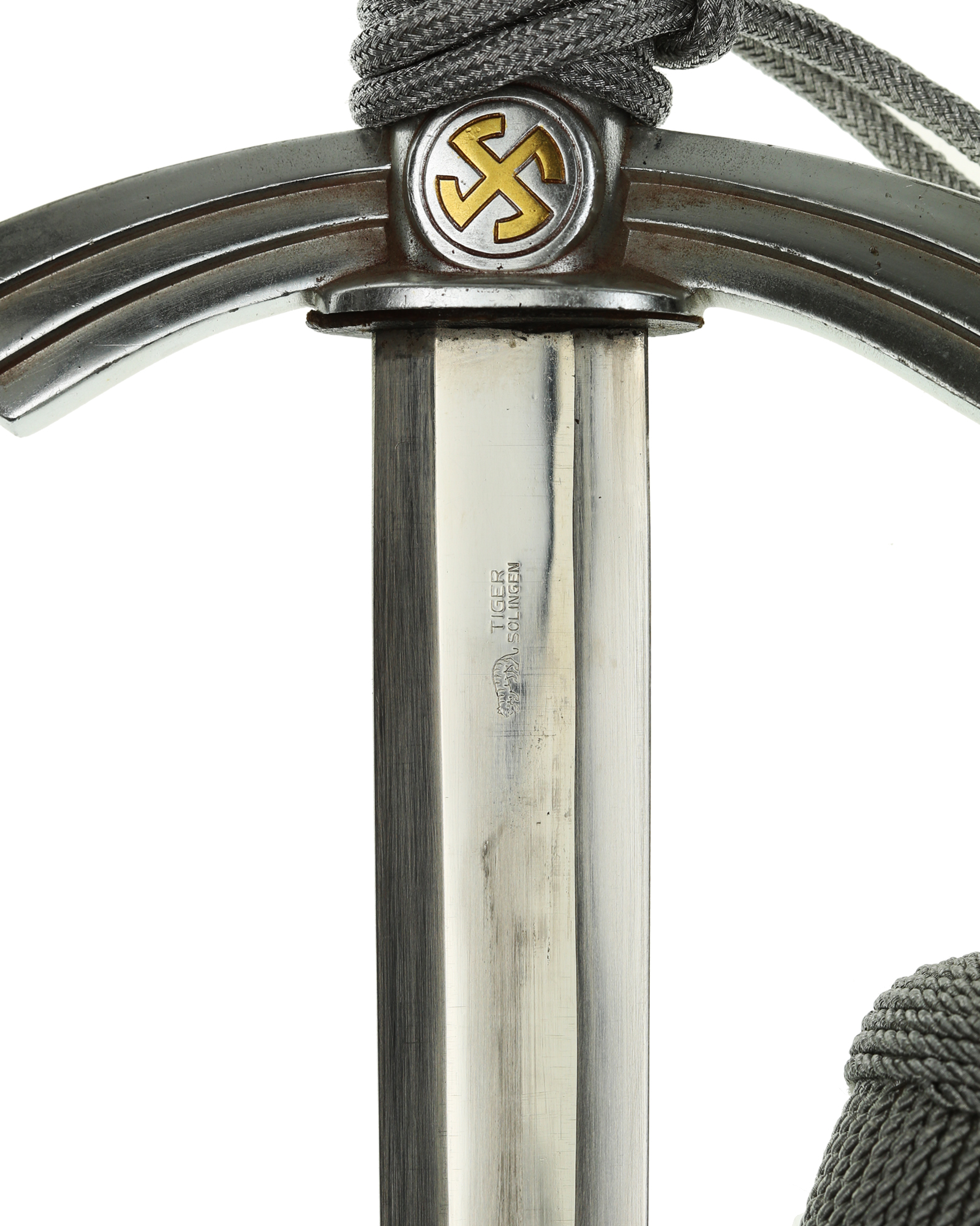 Клинок: Клинок прямой, двулезвийный, в сечении – шестигранный; боевой конец – ромбического сечения. На пяте клинка нанесено клеймо немецкой фирмы производителя «ТИГЕР Золинген» (Tiger Solingen).