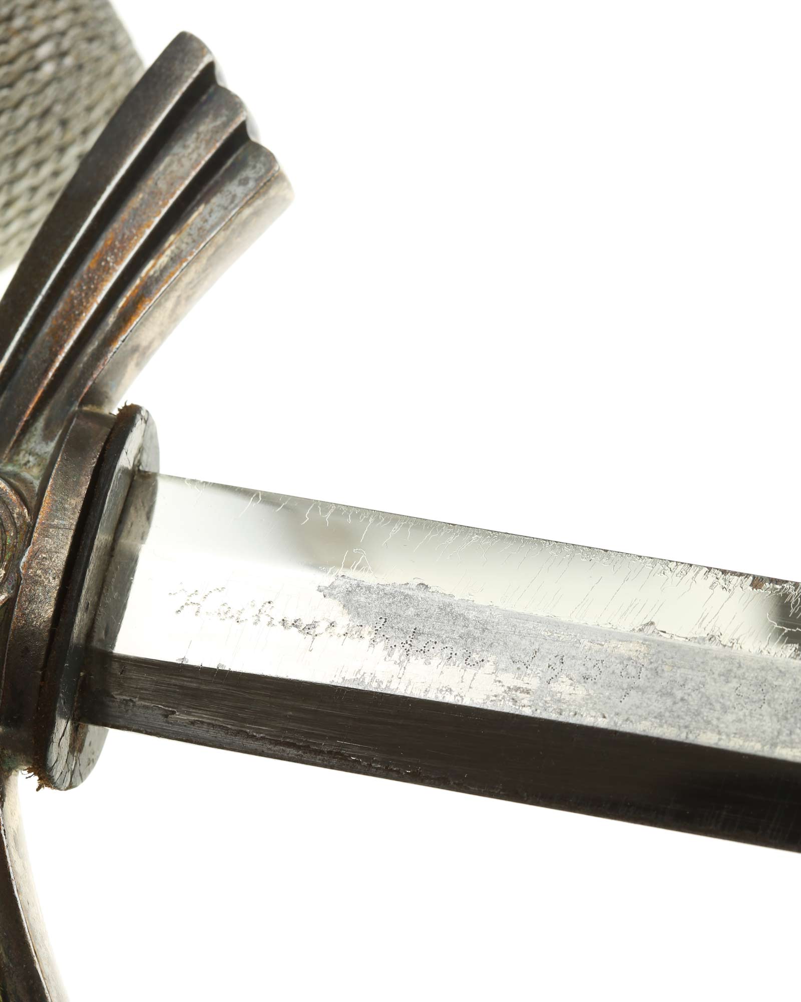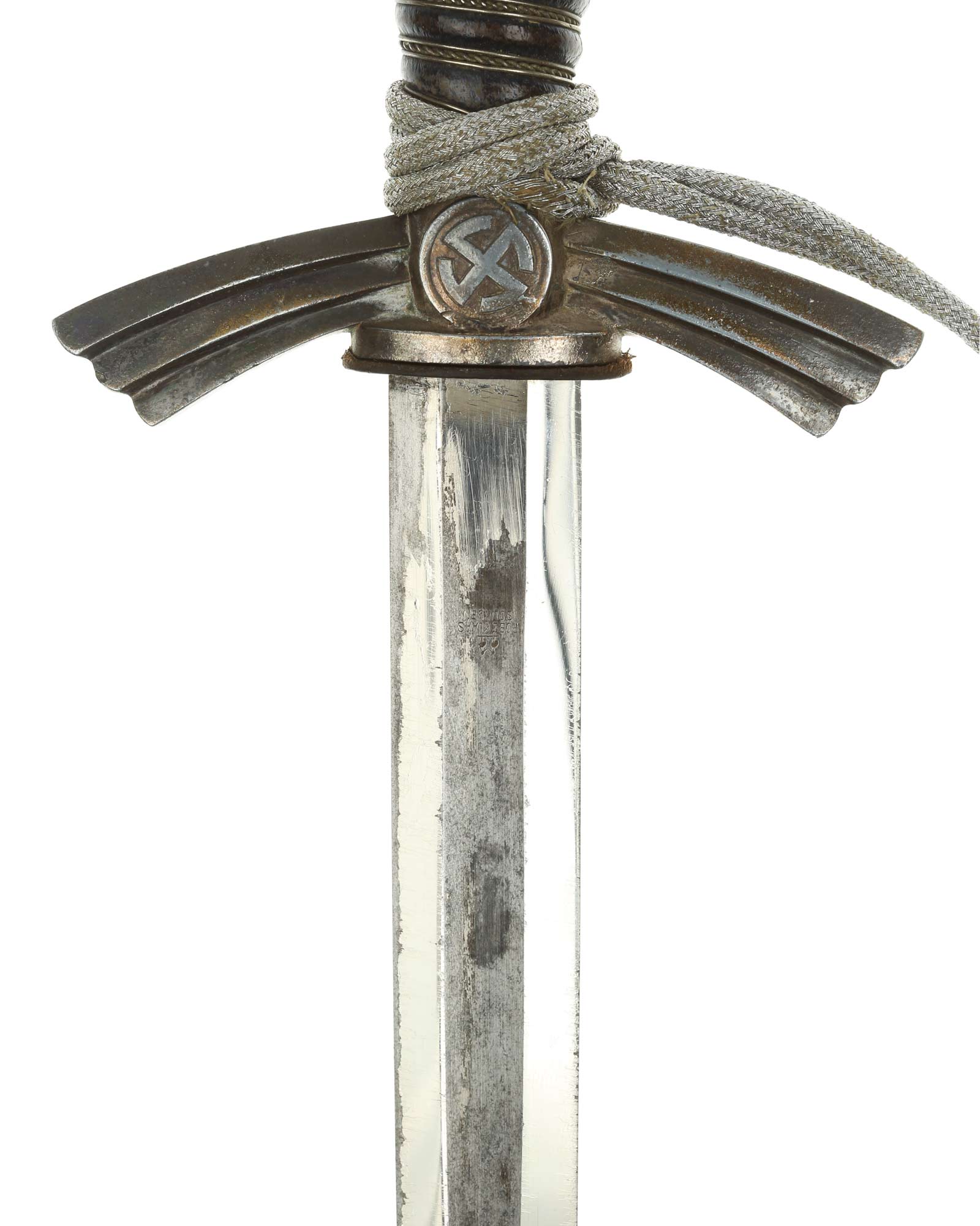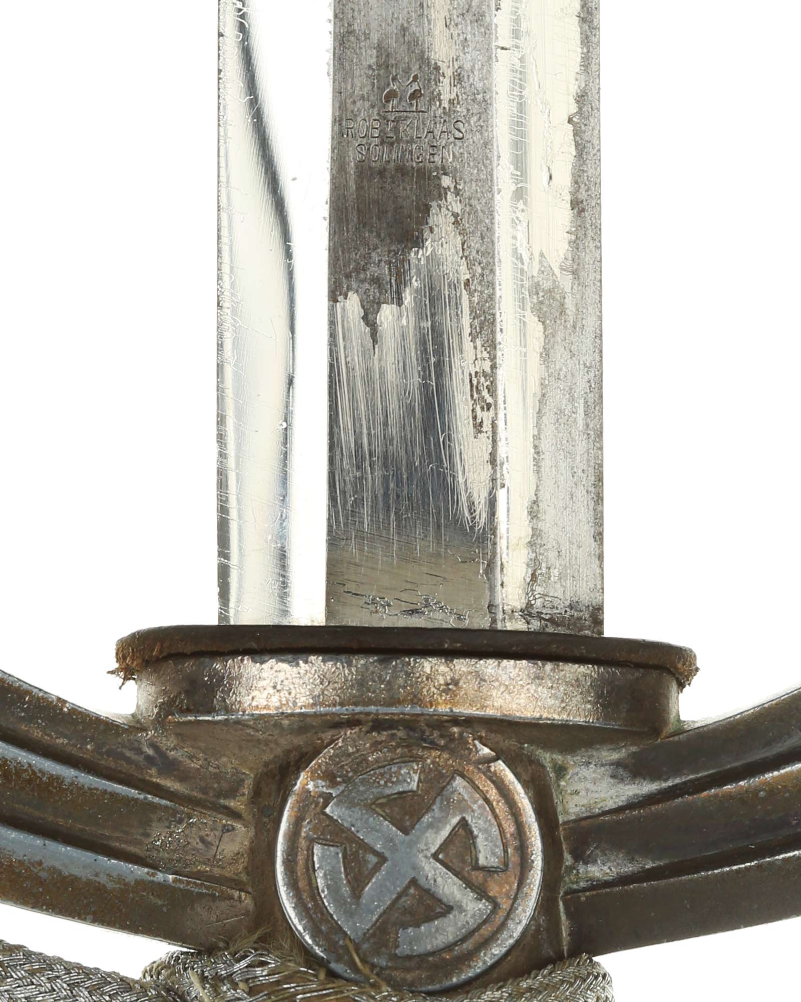Клинок: Клинок прямой, двулезвийный, в сечении – шестигранный; боевой конец – ромбического сечения. На пяте клинка нанесено клеймо немецкой фирмы производителя «Роберт Клаас Золинген» (Rob. Klaas Solingen). Другая сторона выгравирована: Weihnachten 1939 - Deine Anneliese (Рождество 1939).