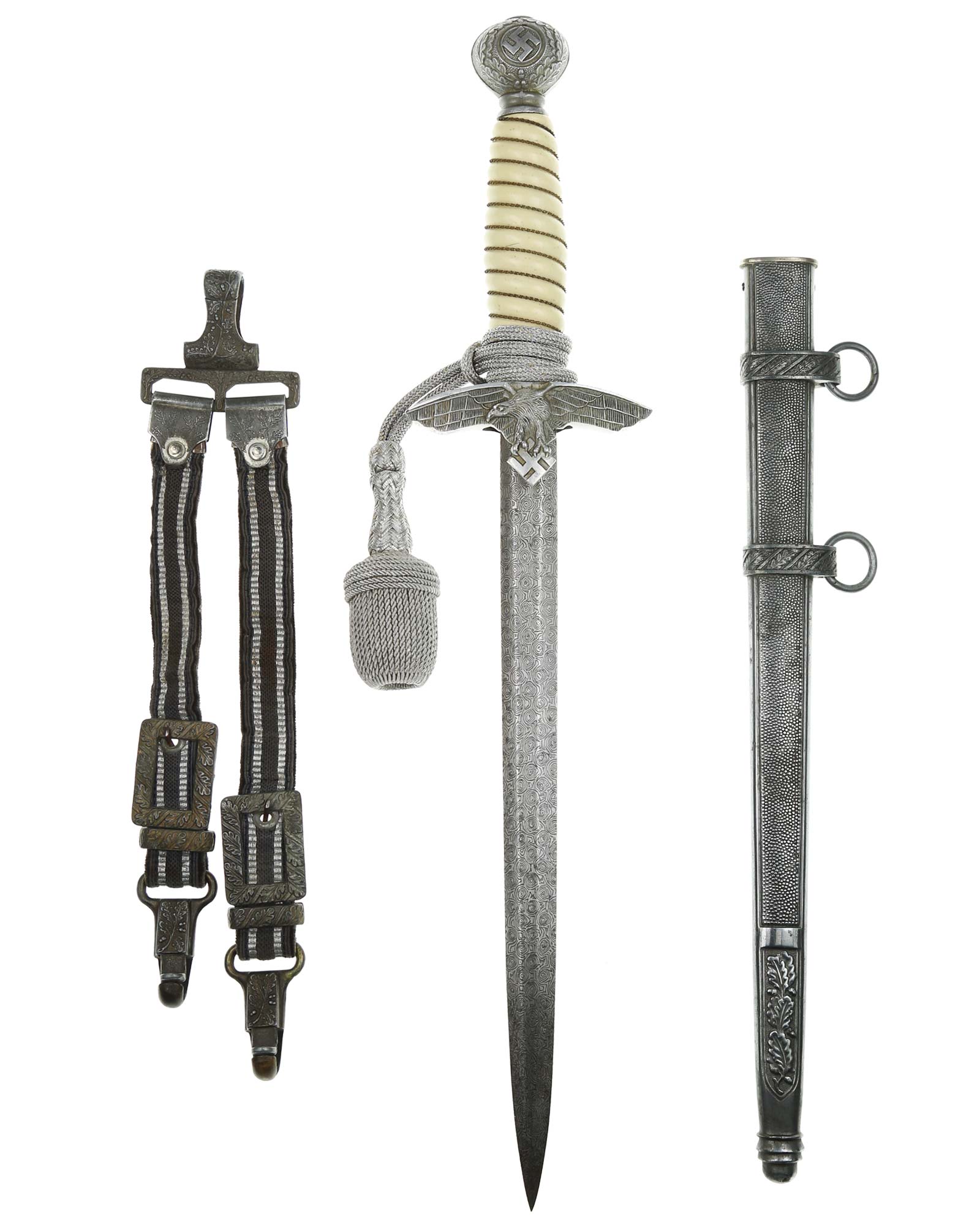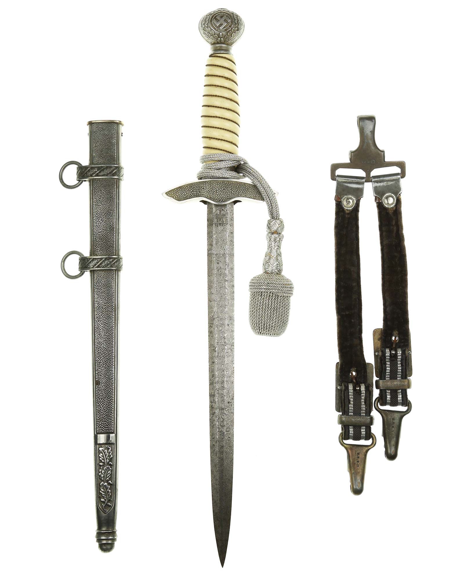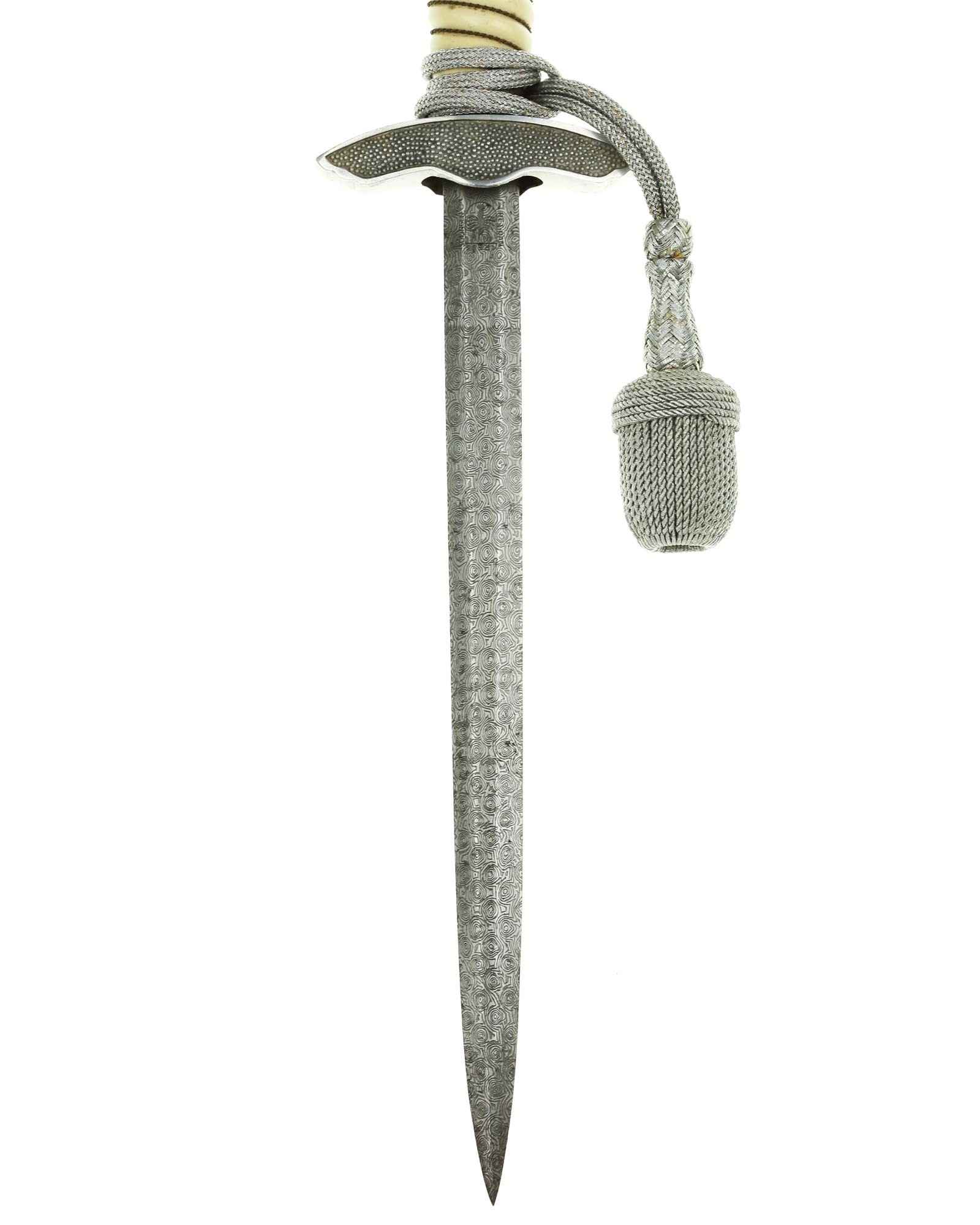 Кортик офицера ВВС Люфтваффе (нем. Luftwaffen-Offizierdolch) обр. 1937 года. Клинок в дамаске. Кортик с клеймом PET. DAN. KREBS SOLINGEN (Кребс Петер Даниэль, Золинген).