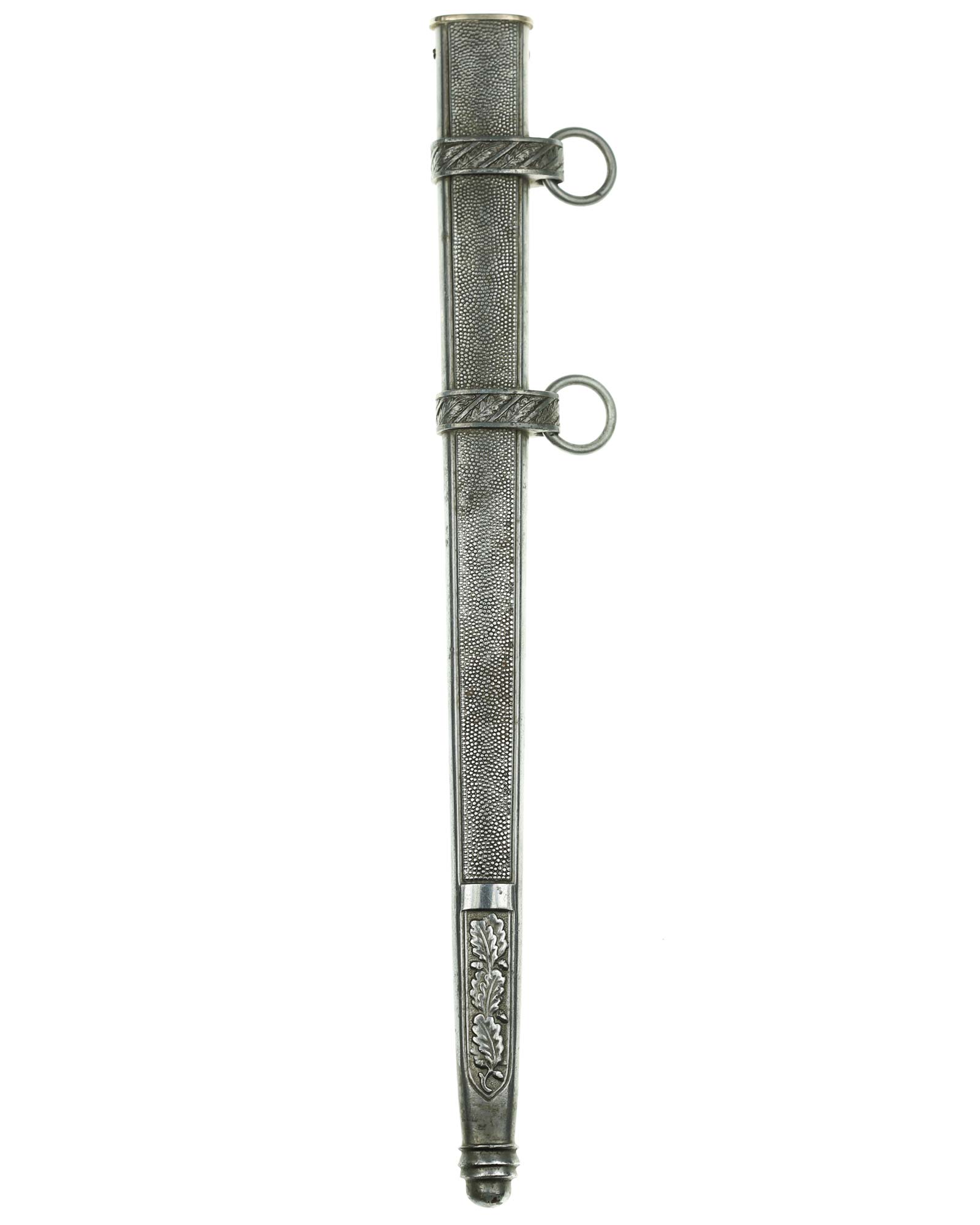 Ножны: Ножны металлические, цельные, поверхность покрыта мелкими точками. Конец ножен округлый, с тремя рельефными поясками, украшен орнаментом из дубовых листьев. Ножны имеют два обоймицы с кольцами для портупеи.