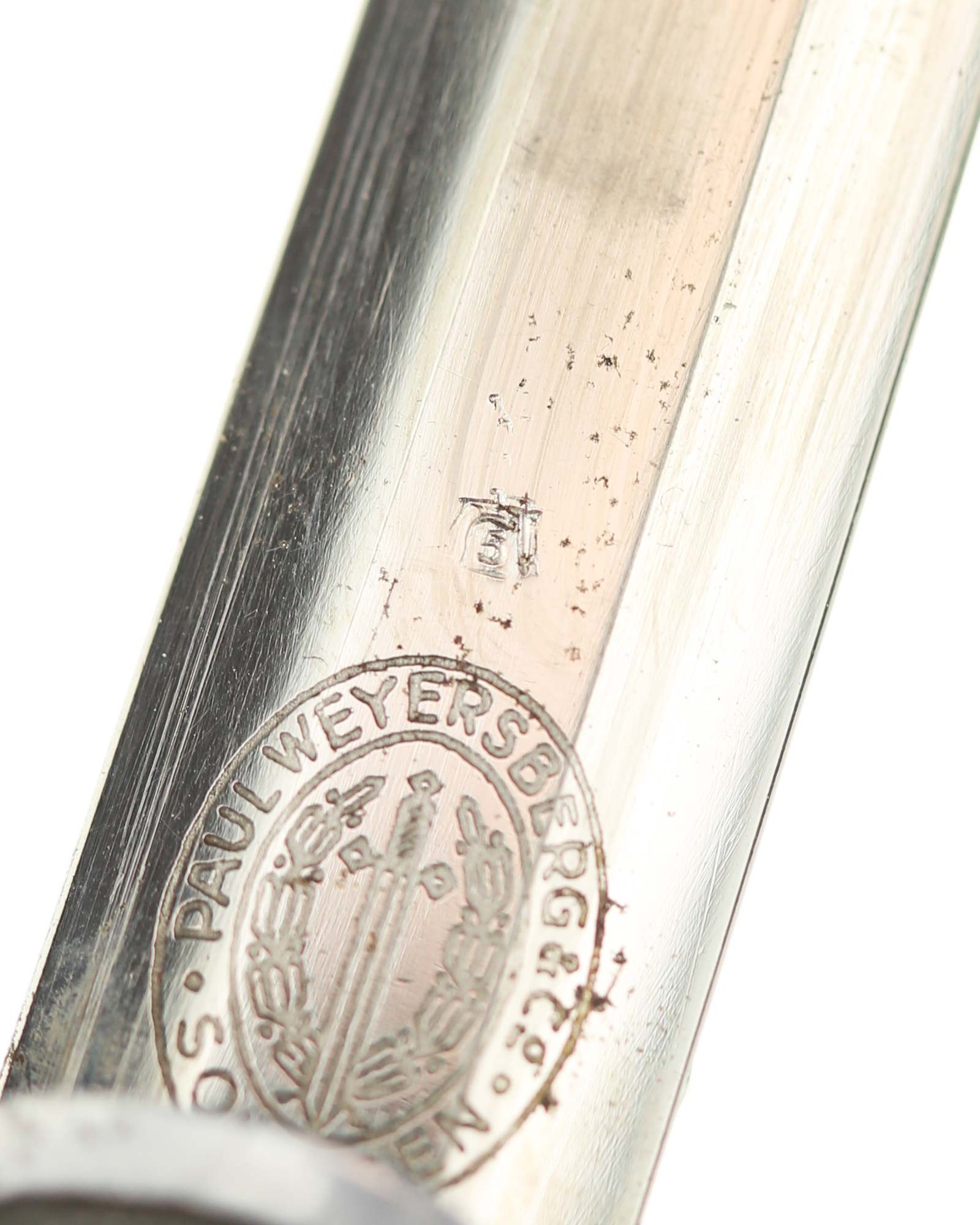 Клинок: Клинок прямой, двулезвийный, в сечении – шестигранный; боевой конец – ромбического сечения. На пяте клинка нанесено клеймо немецкой фирмы производителя «Пауль Вайерсберг Золинген» (Paul Weyersberg Solingen).