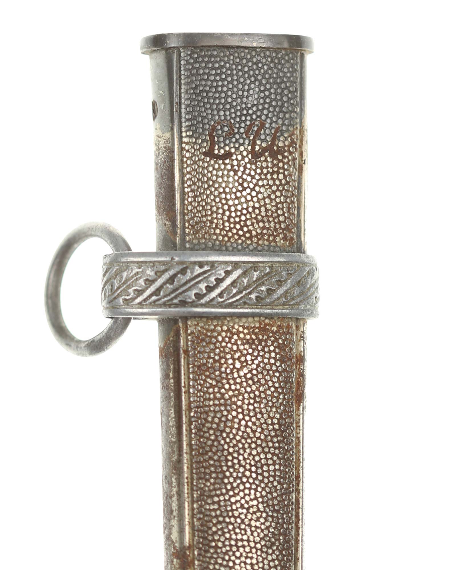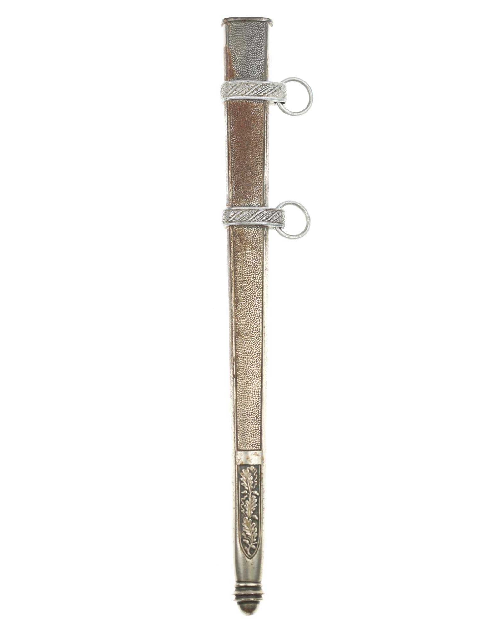 Ножны: Ножны металлические, цельные, поверхность покрыта мелкими точками. Конец ножен округлый, с тремя рельефными поясками, украшен орнаментом из дубовых листьев. Ножны имеют два обоймицы с кольцами для портупеи.