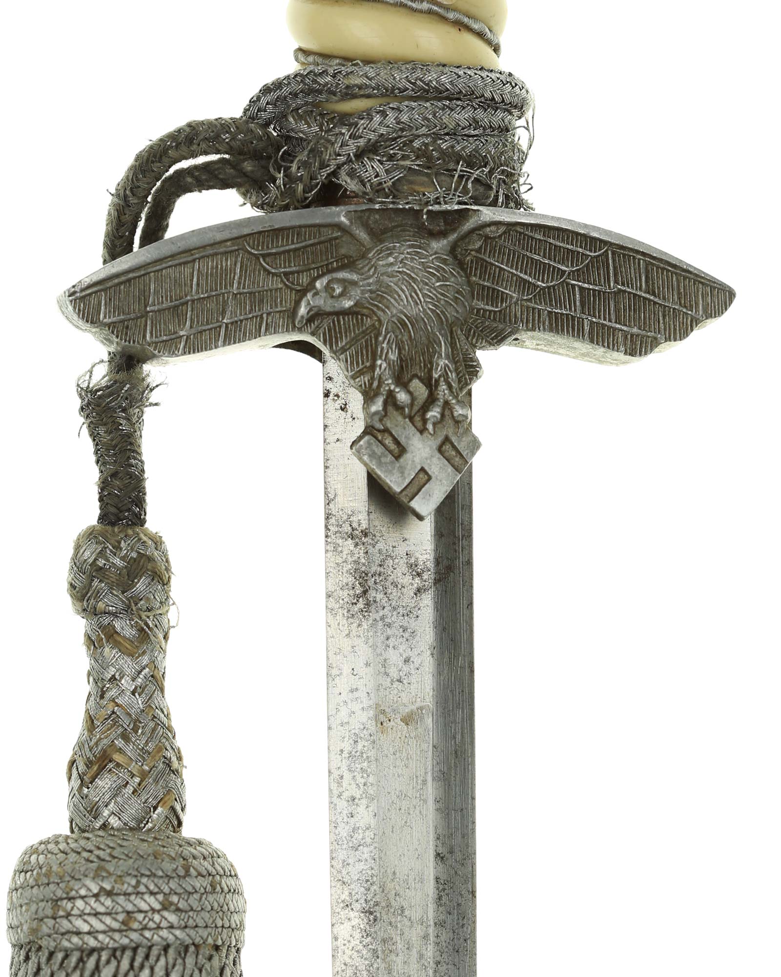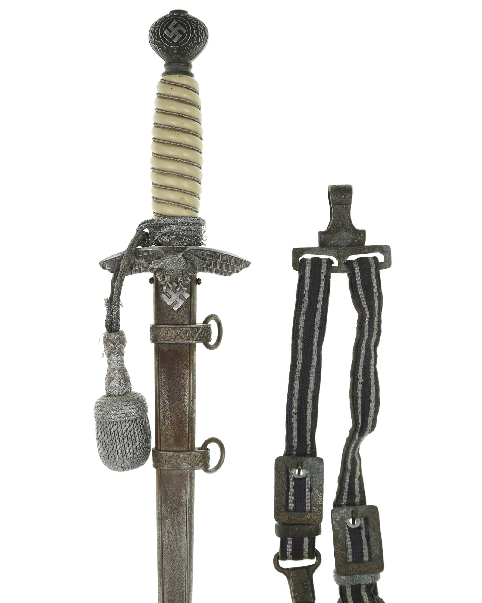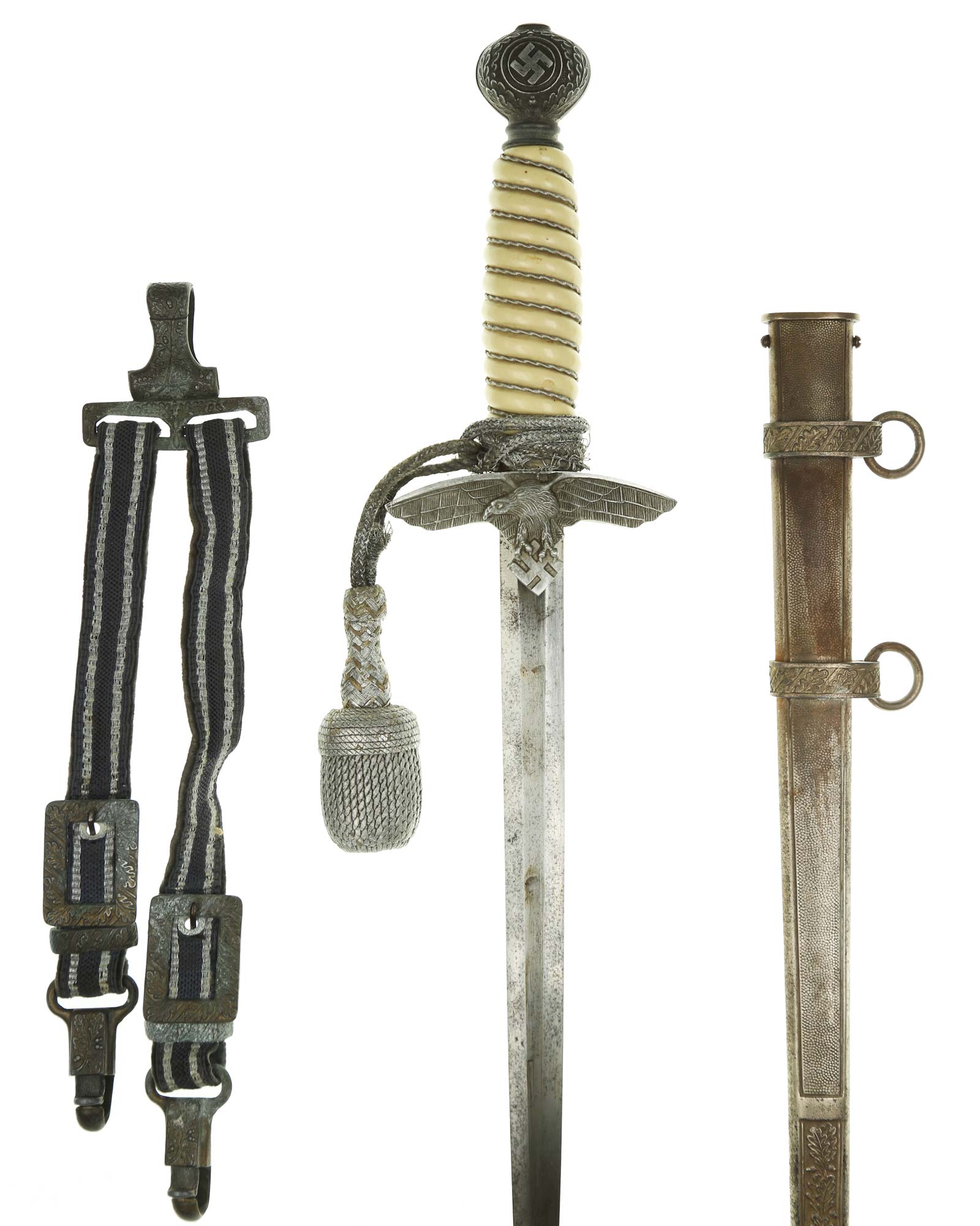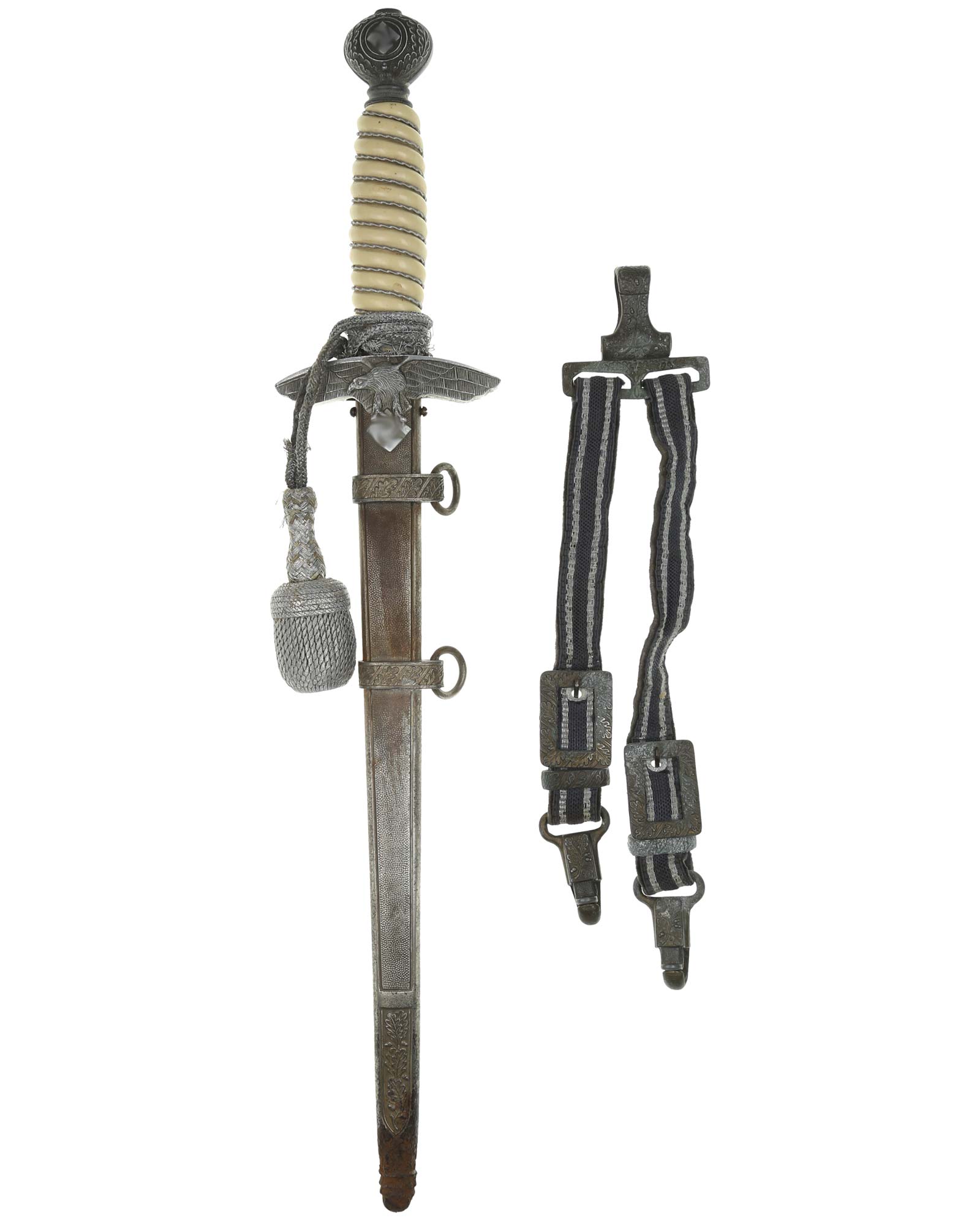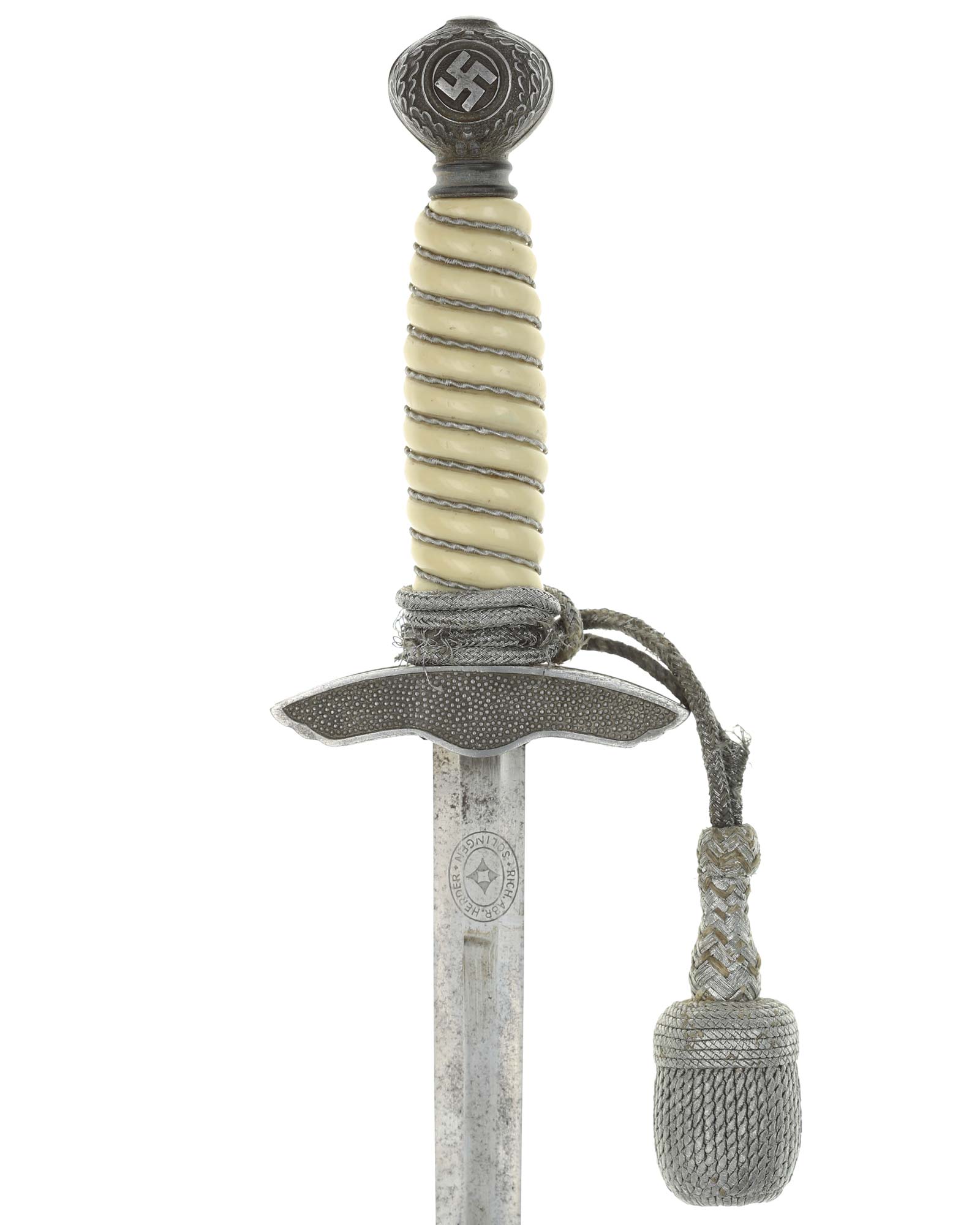 Кортик офицера ВВС Люфтваффе (нем. Luftwaffen-Offizierdolch) обр. 1937 года. Клинок с клеймом фирмы Rich. Abr. Herder Solingen (Рихард А. Хердер Золинген). Длина в ножнах 43,7 см.