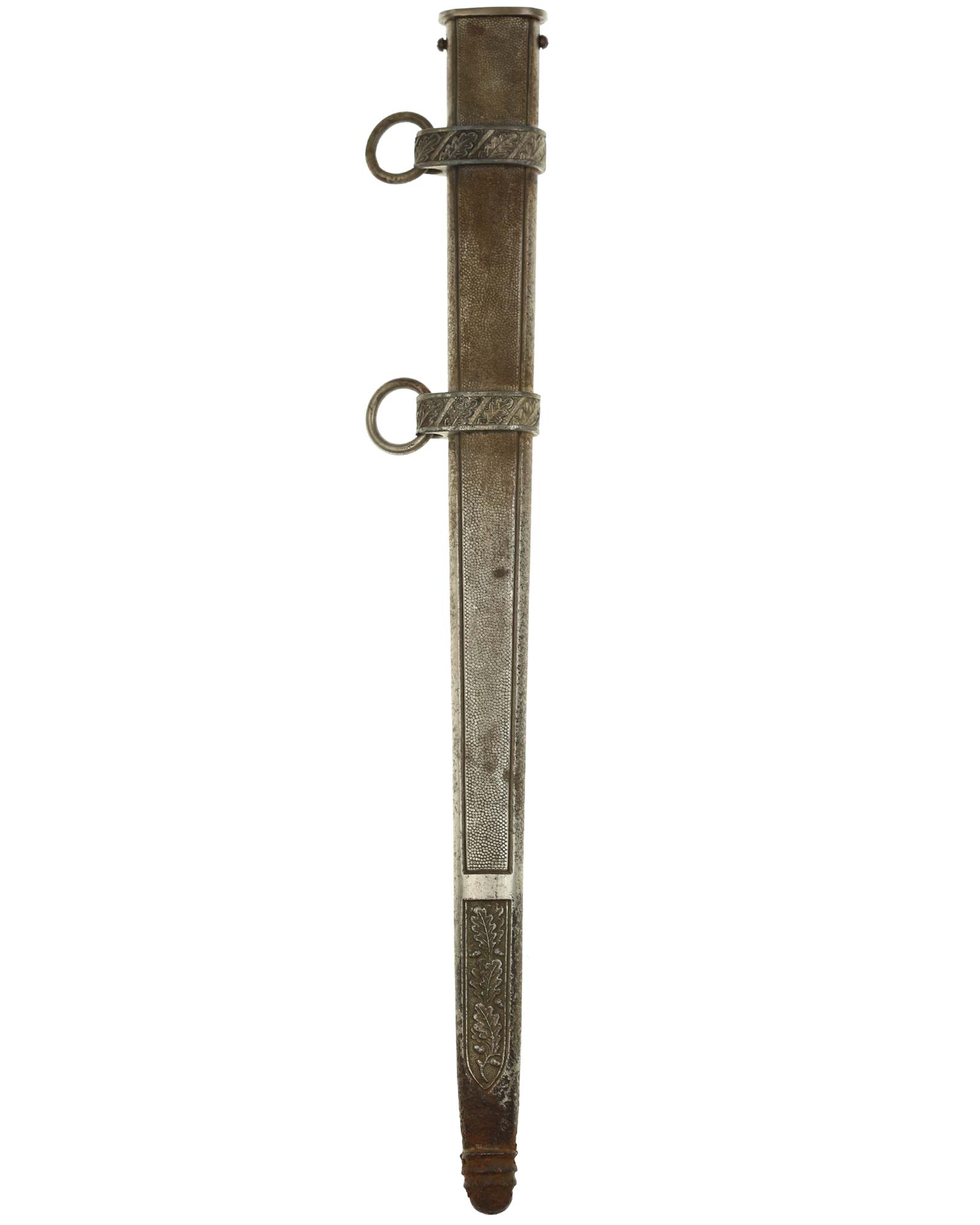 Ножны: Ножны металлические, цельные, поверхность покрыта мелкими точками. Конец ножен округлый, с тремя рельефными поясками, украшен орнаментом из дубовых листьев. Ножны имеют два обоймицы с кольцами для портупеи.