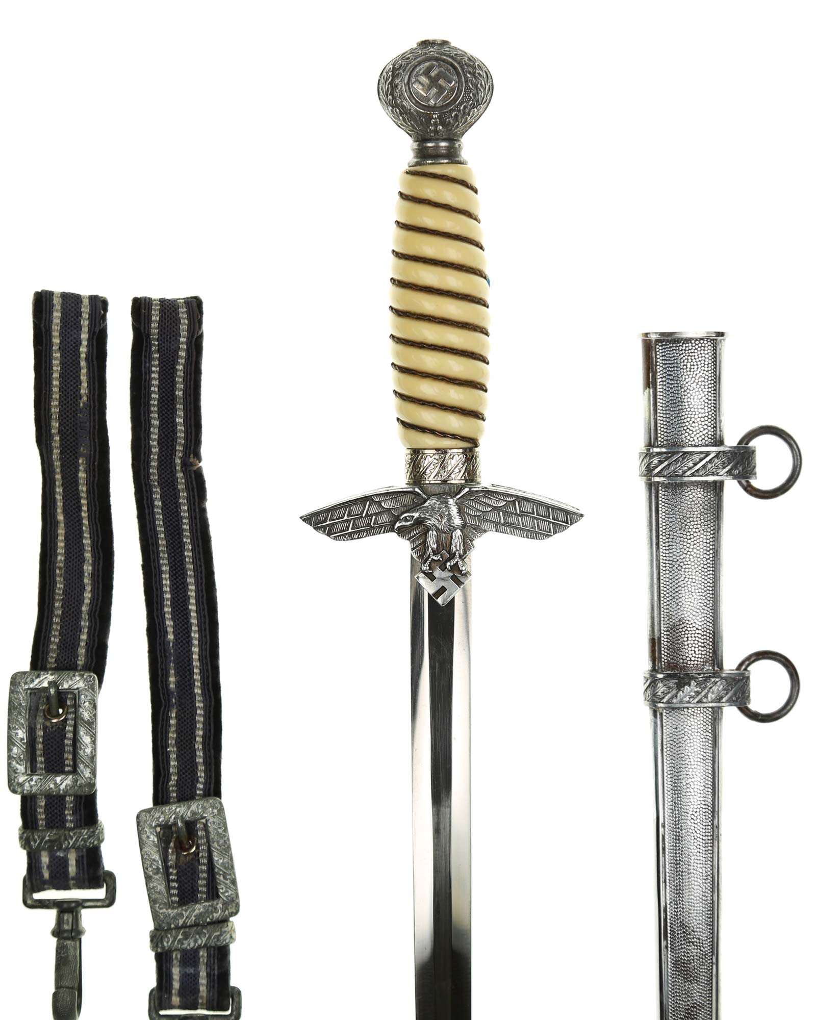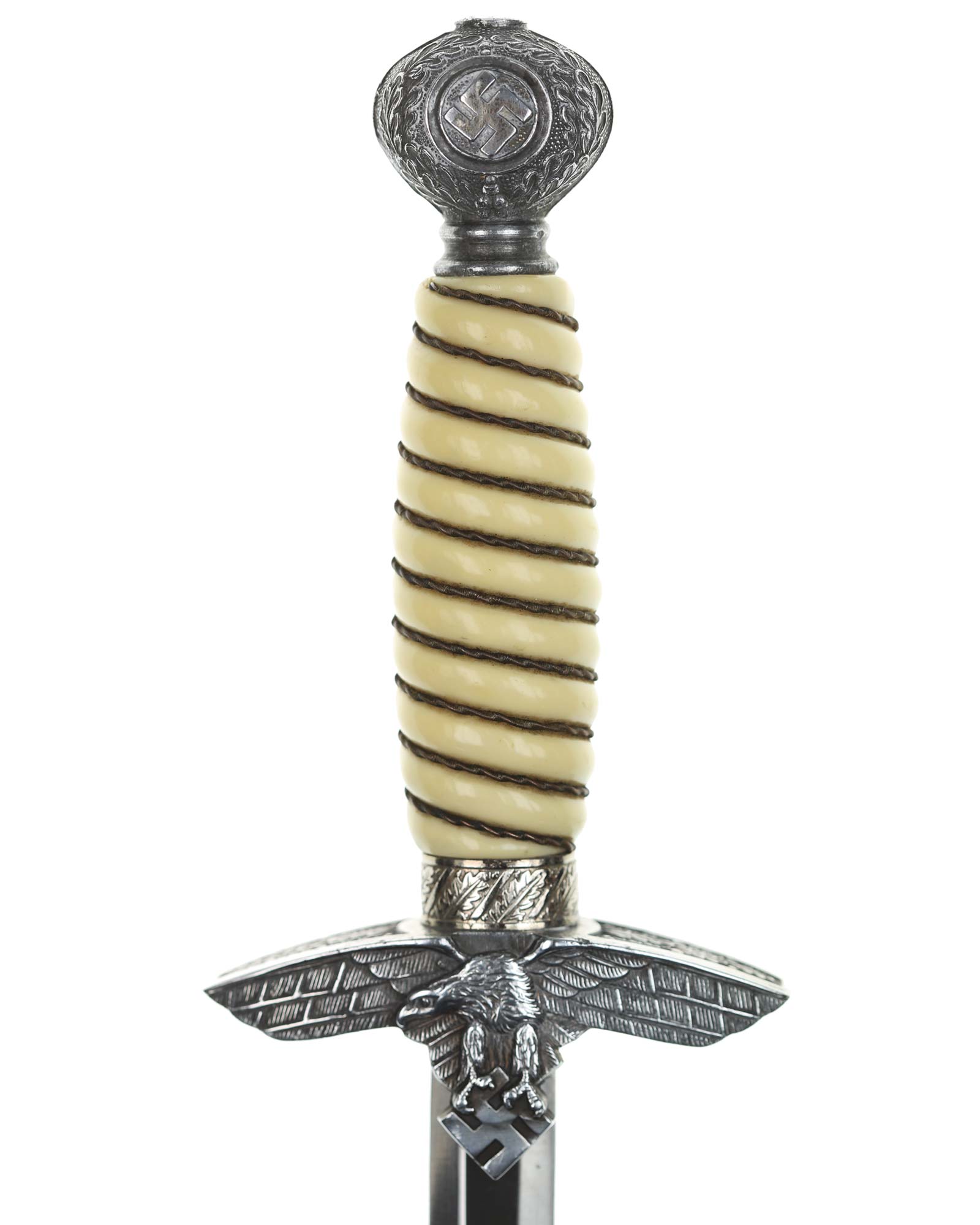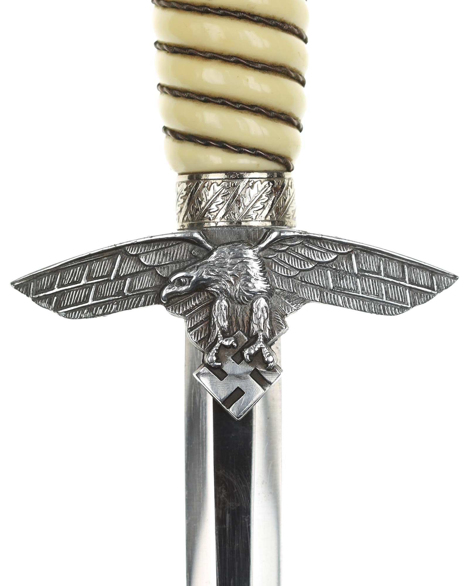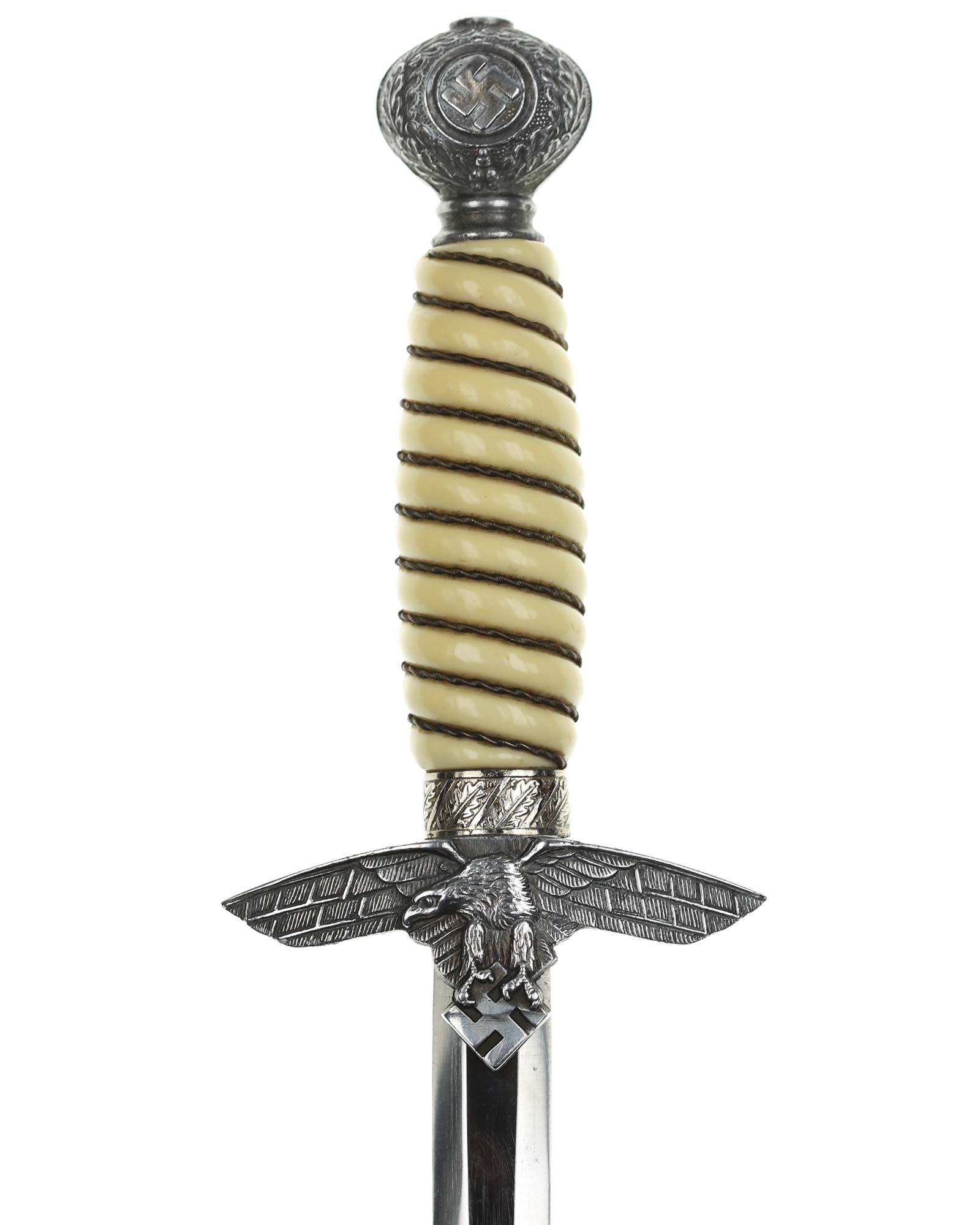Кортик офицера ВВС Люфтваффе (нем. Luftwaffen-Offizierdolch) обр. 1937 года. Крестовина с обратной стороны имеет точечный фон. Кортик с клеймом Tiger Solingen (ТИГЕР Золинген).
