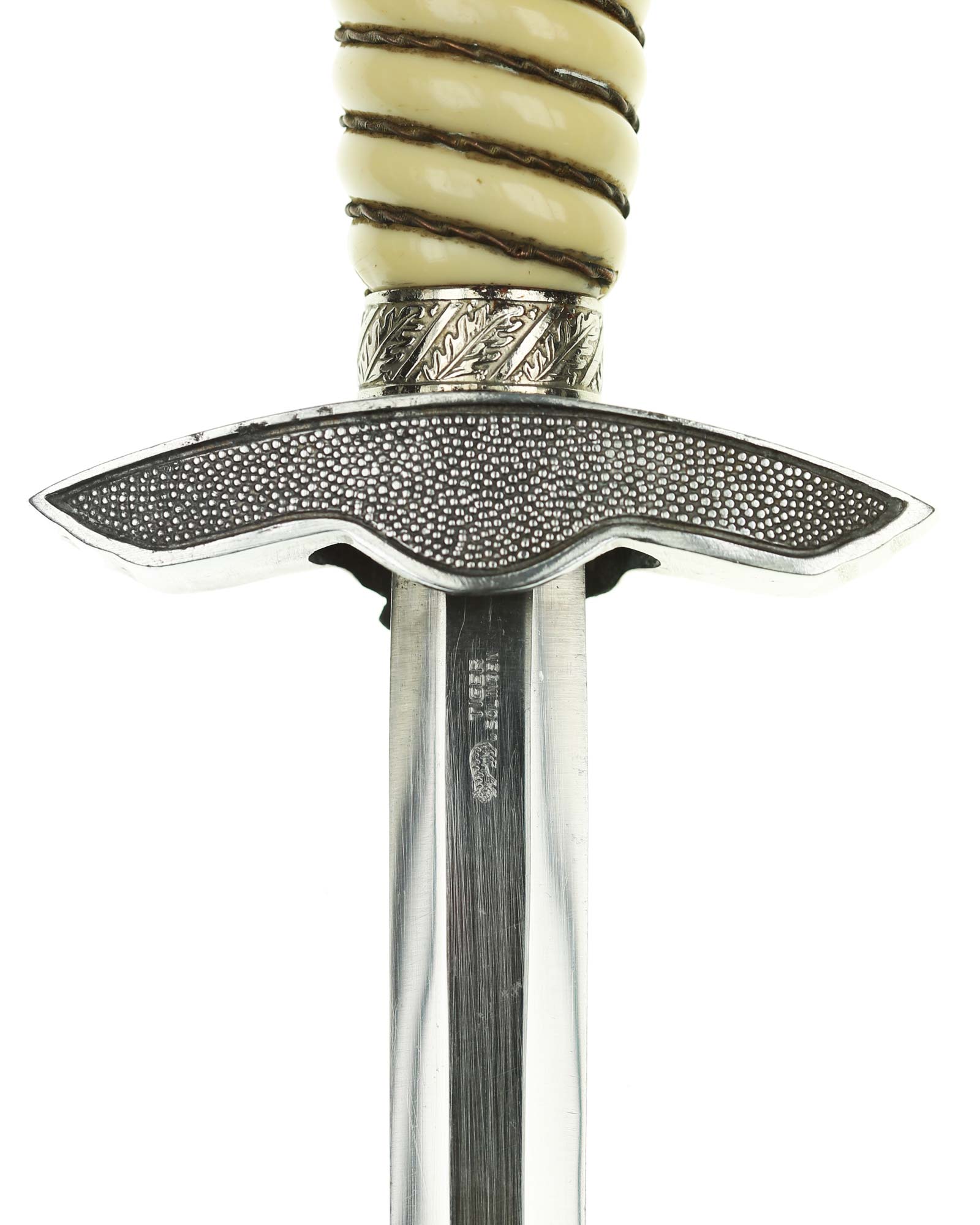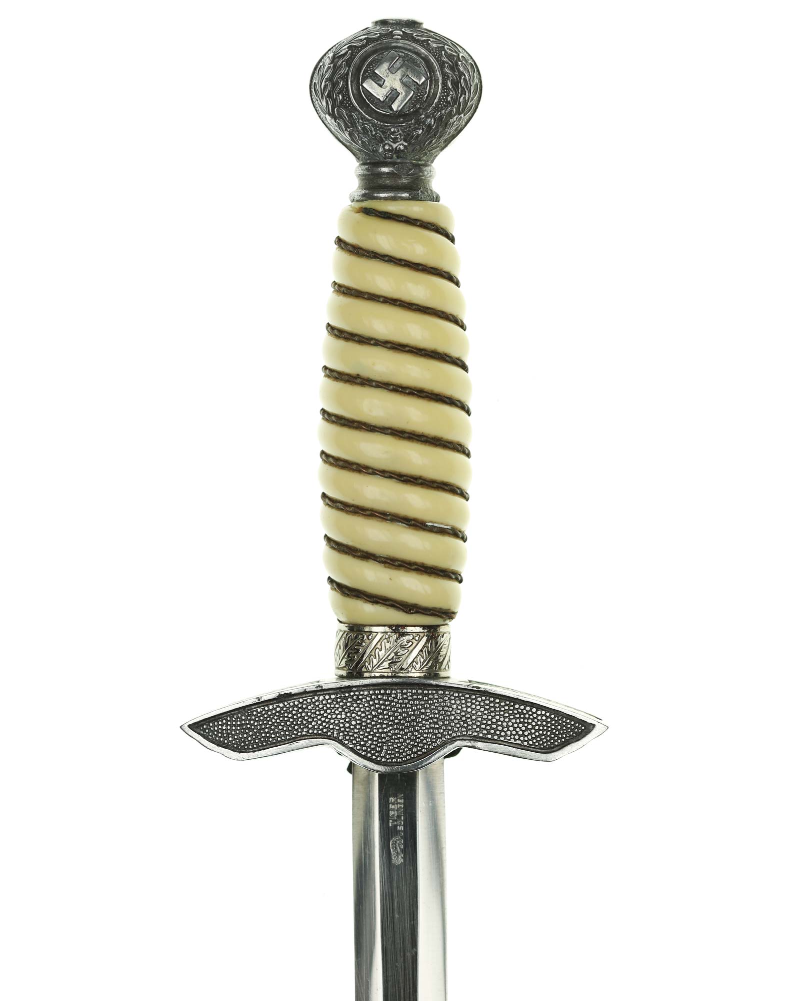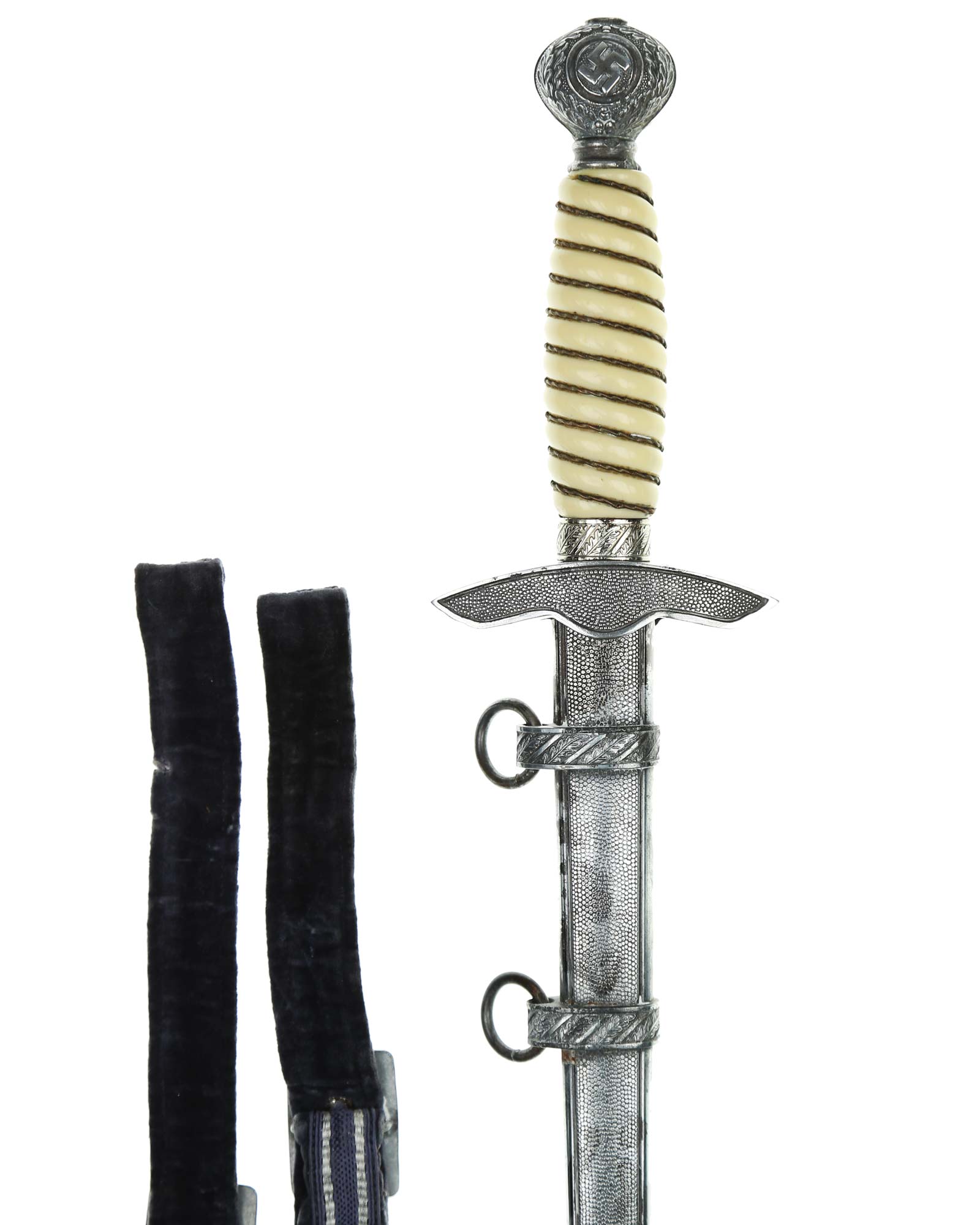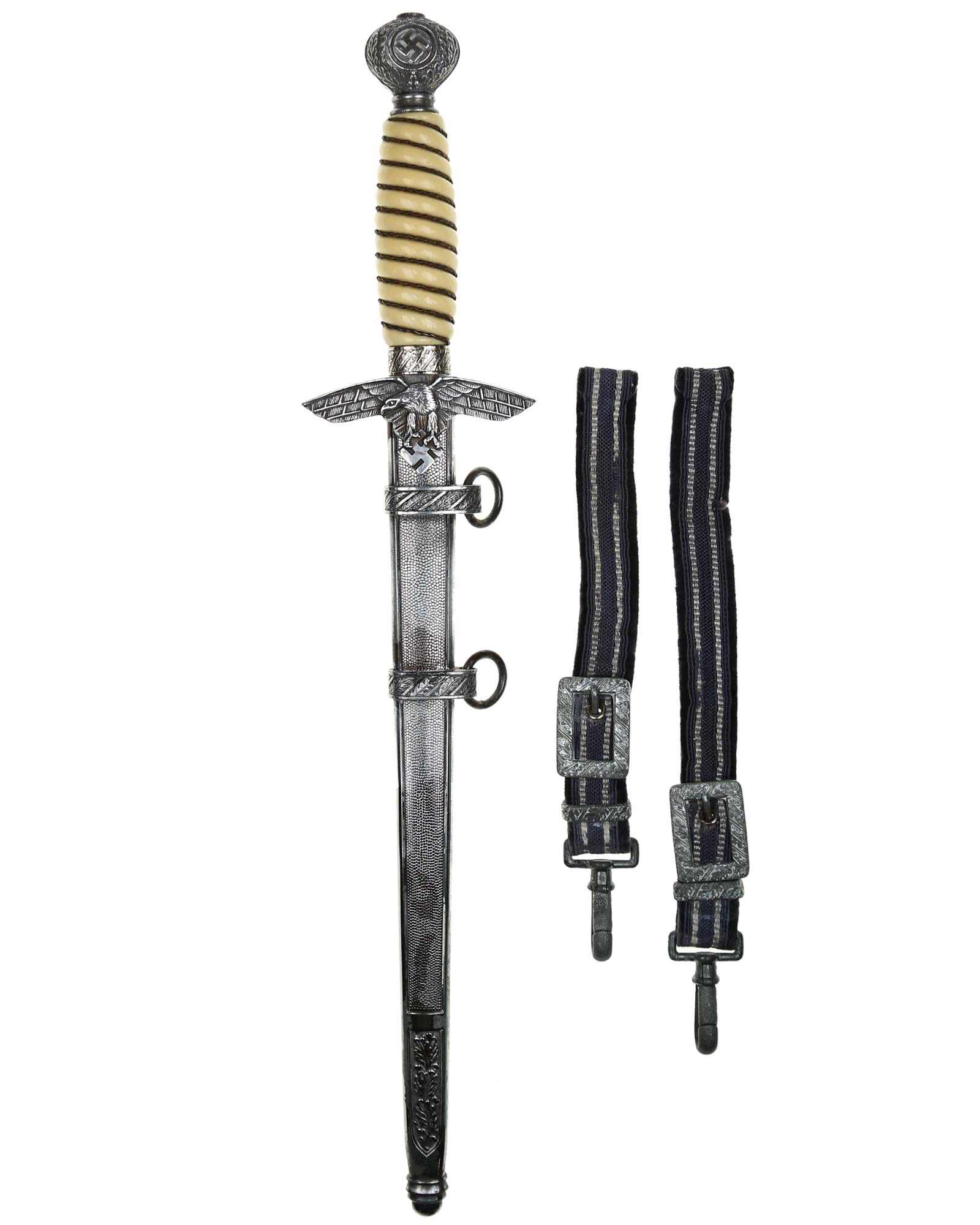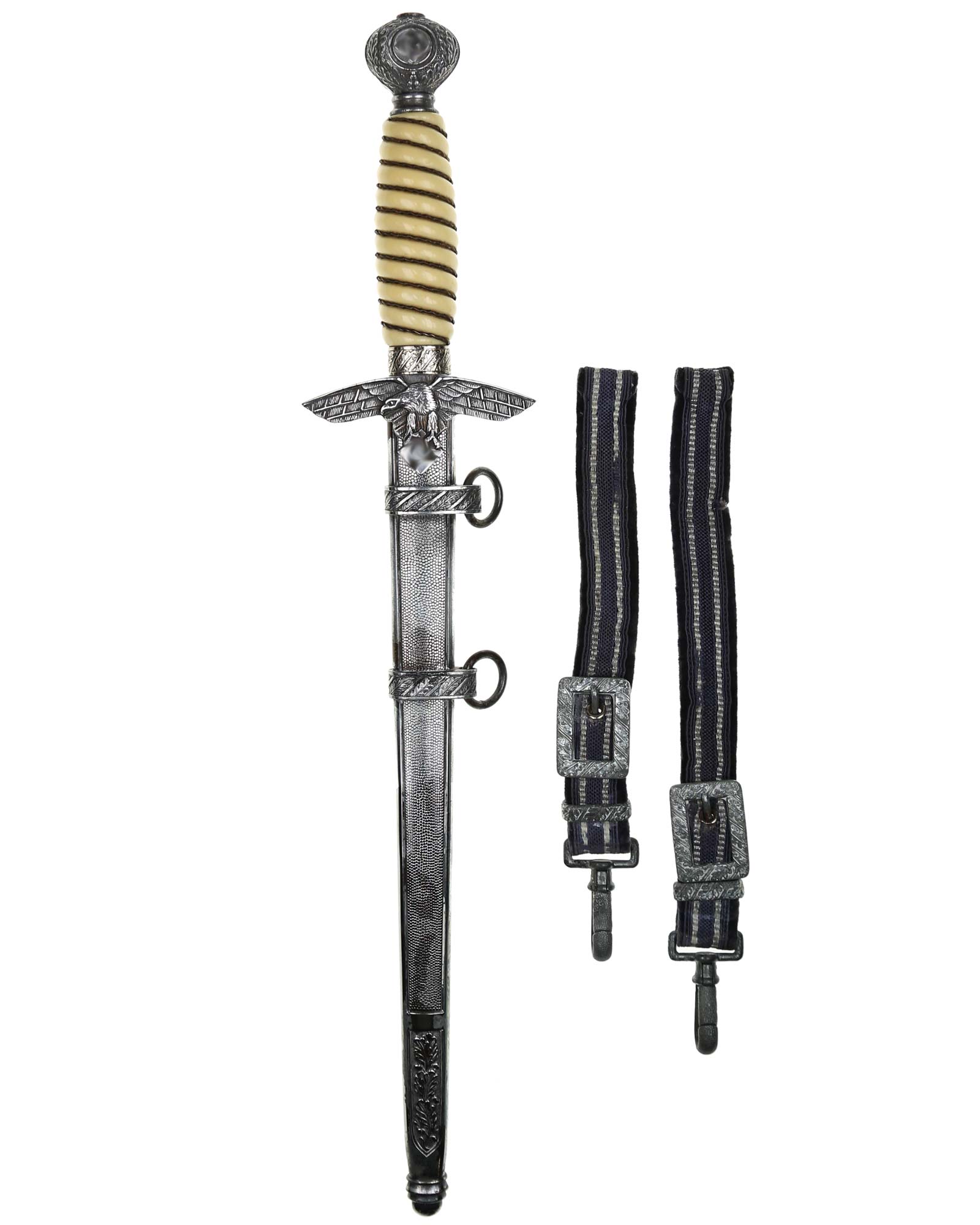 Кортик офицера ВВС Люфтваффе (нем. Luftwaffen-Offizierdolch) обр. 1937 года. Крестовина с обратной стороны имеет точечный фон. Кортик с клеймом Tiger Solingen (ТИГЕР Золинген).