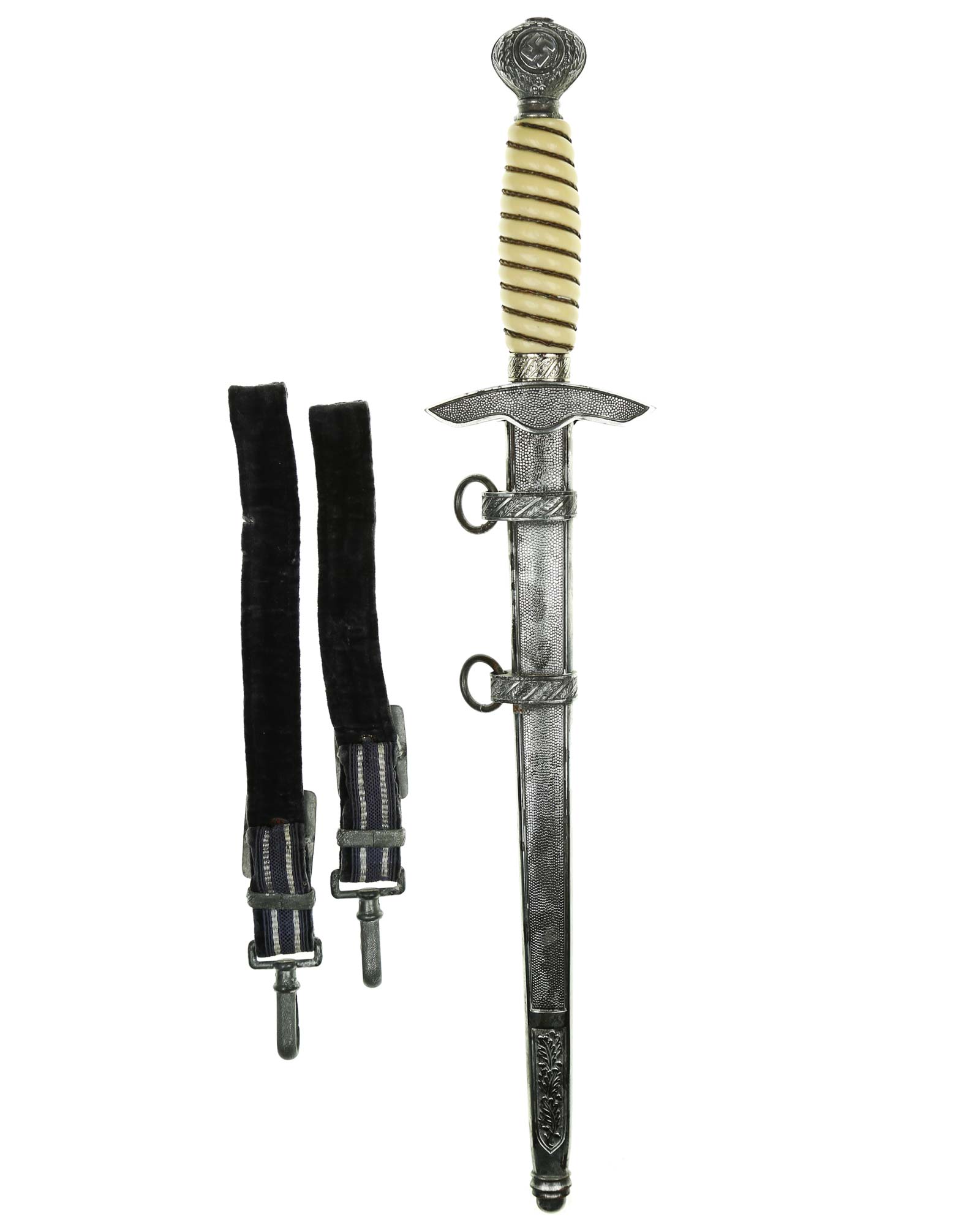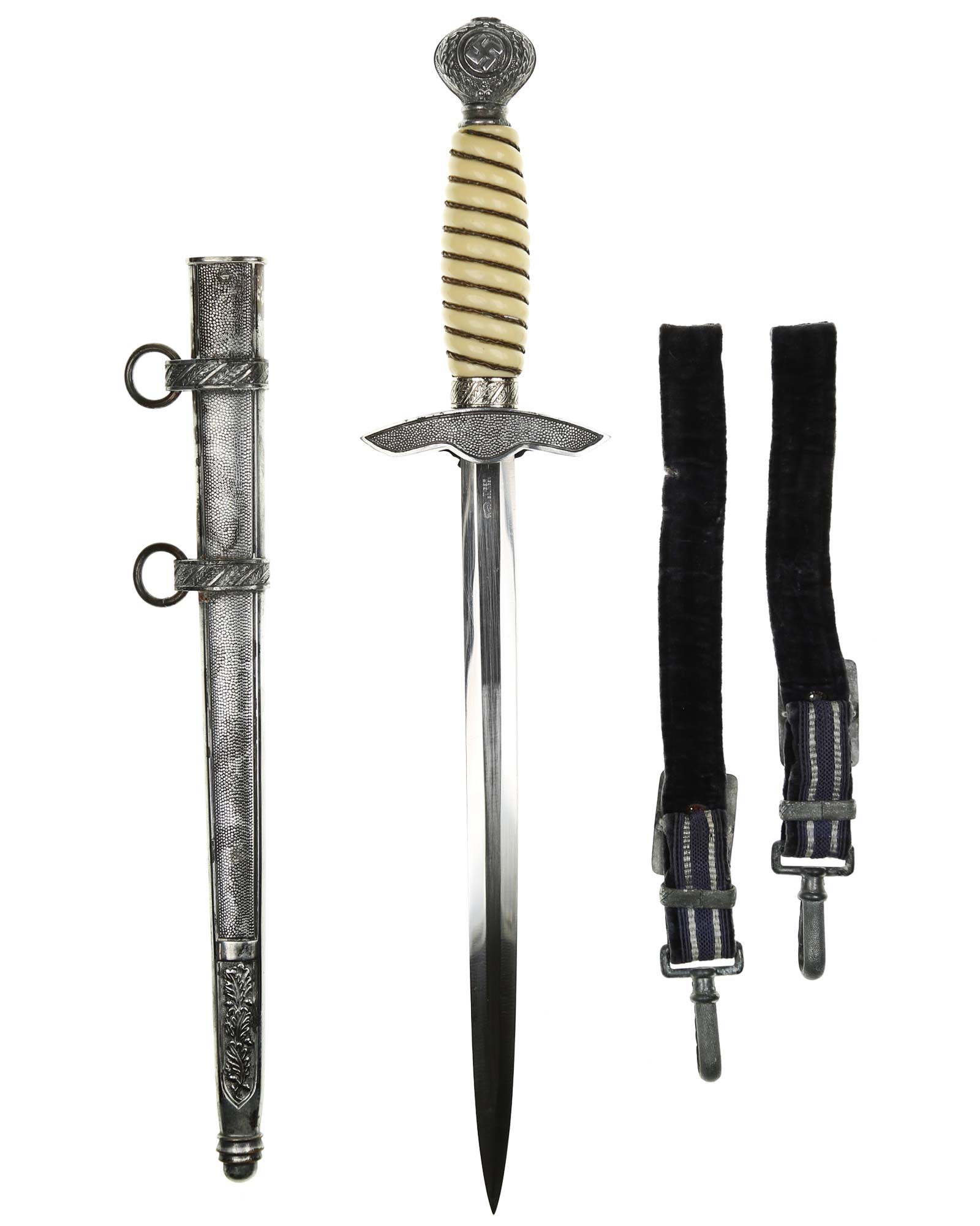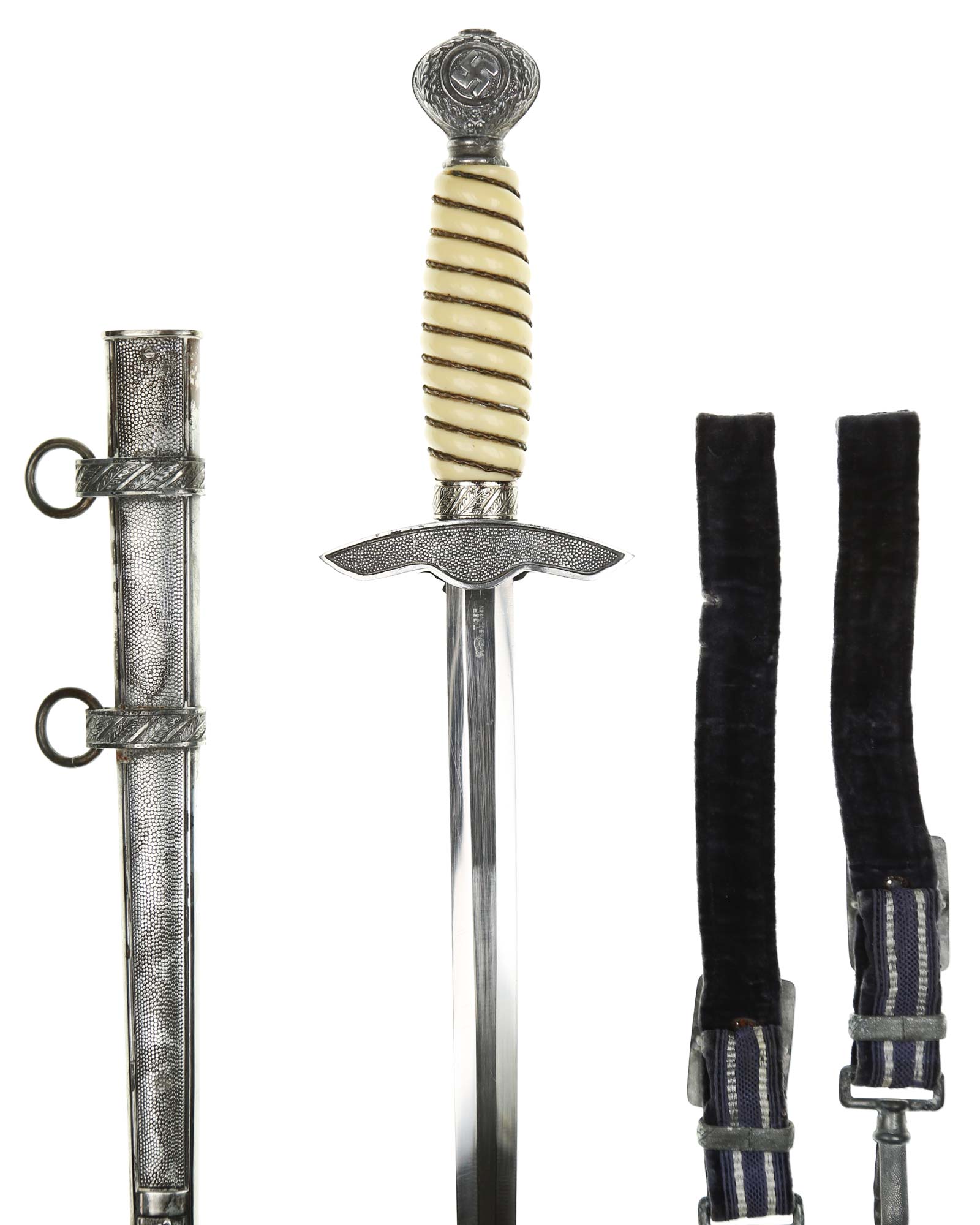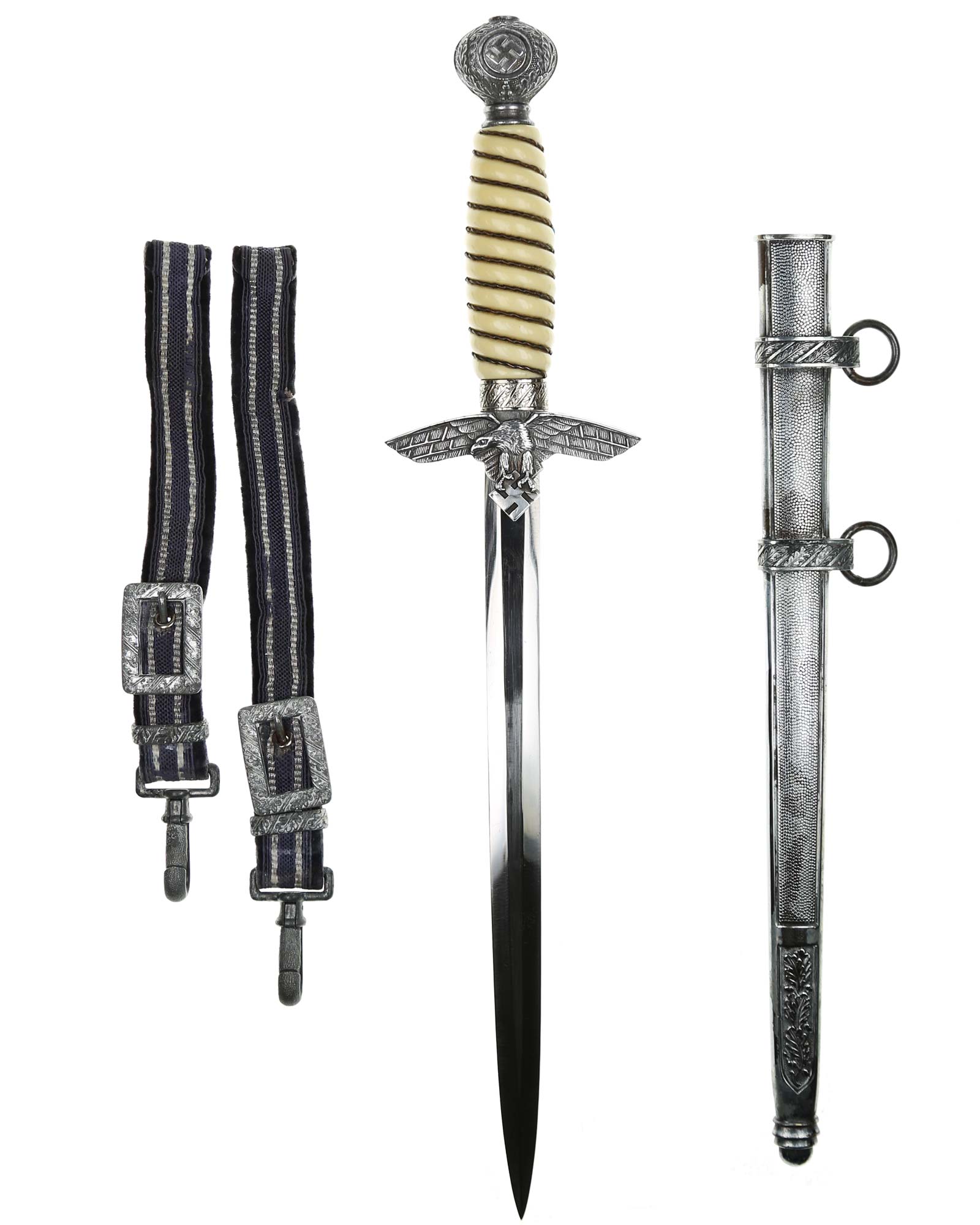 Кортик офицера ВВС Люфтваффе (нем. Luftwaffen-Offizierdolch) обр. 1937 года. Крестовина с обратной стороны имеет точечный фон. Кортик с клеймом Tiger Solingen (ТИГЕР Золинген).