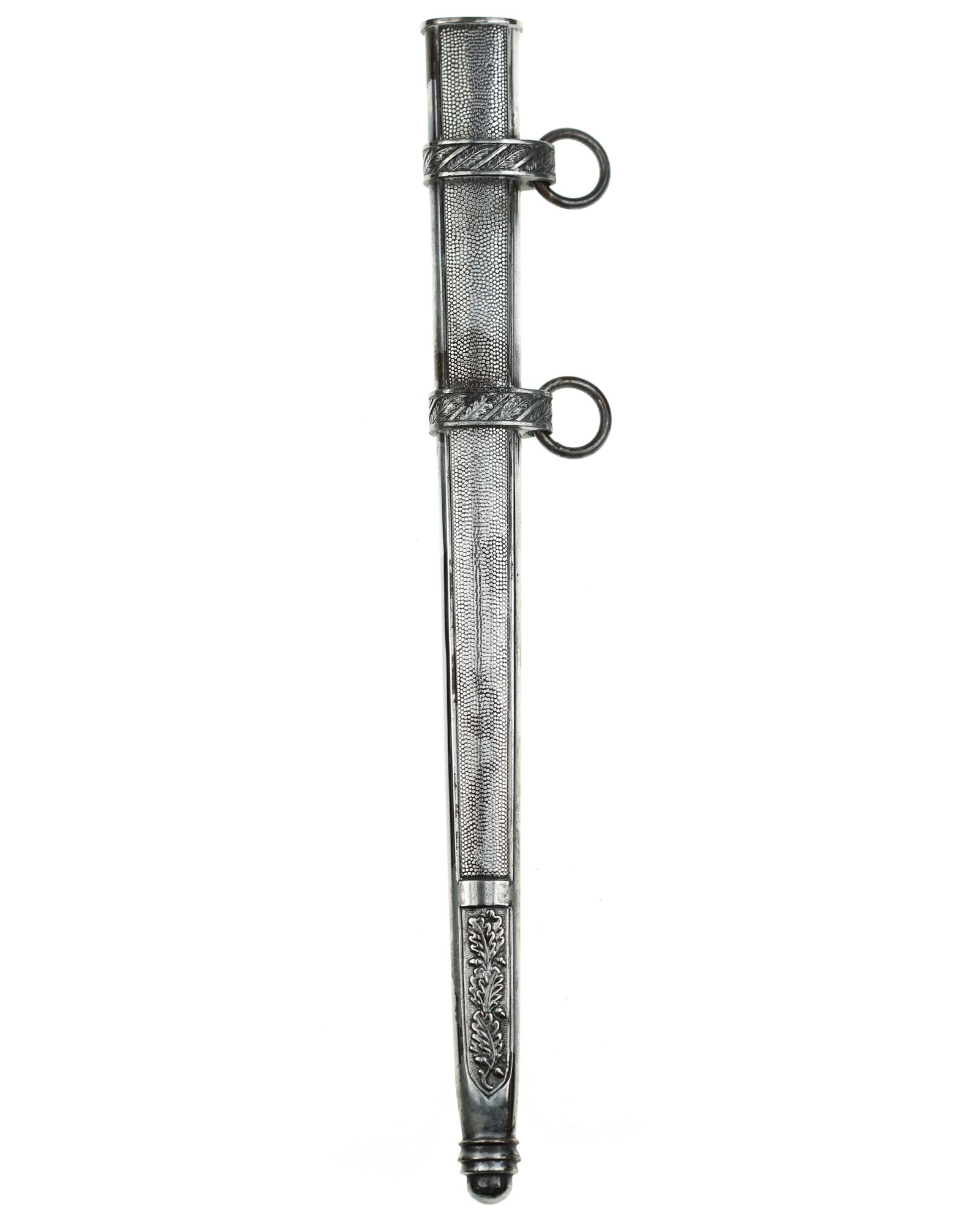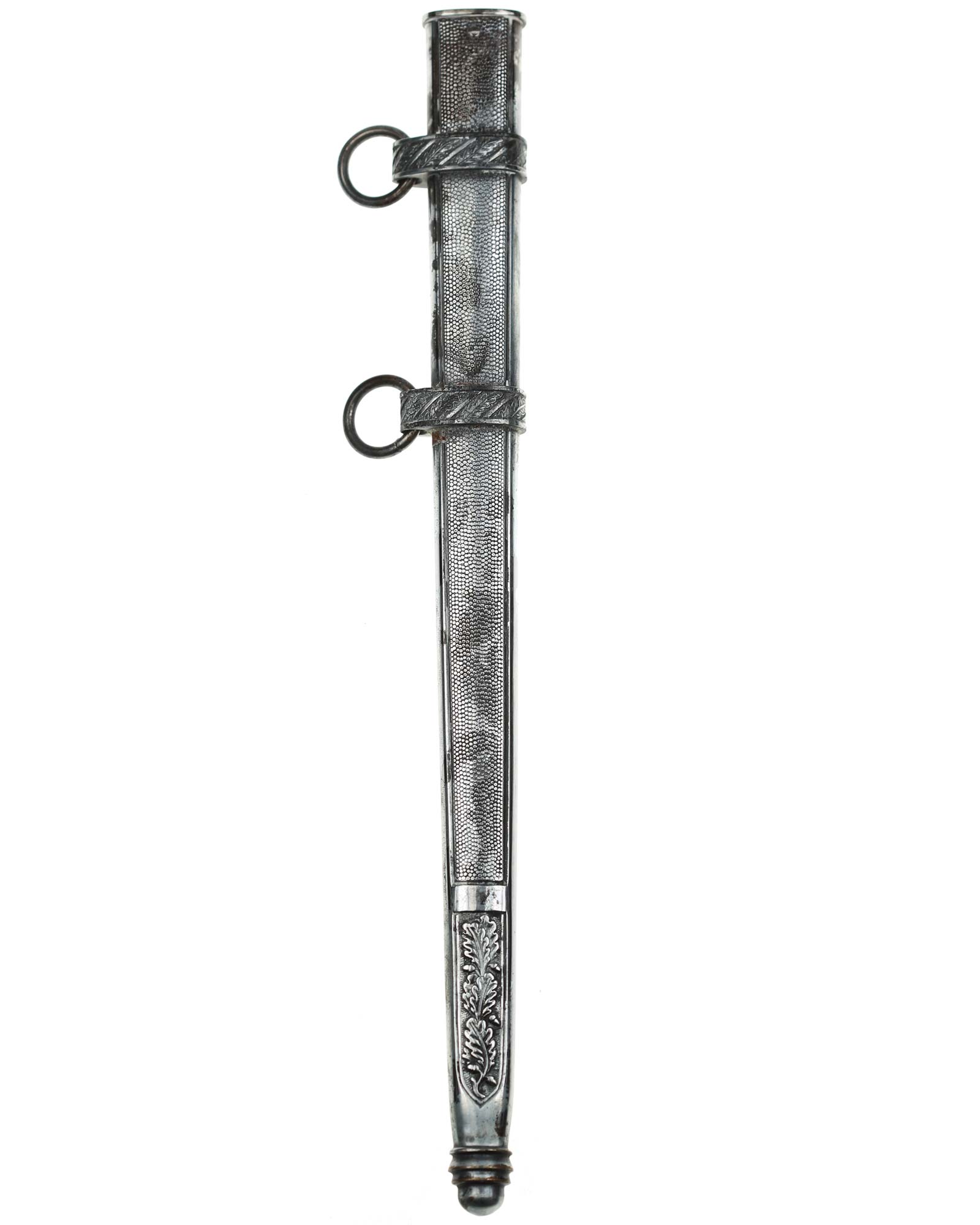 Ножны: Ножны металлические, цельные, поверхность покрыта мелкими точками. Конец ножен округлый, с тремя рельефными поясками, украшен орнаментом из дубовых листьев. Ножны имеют два обоймицы с кольцами для портупеи.