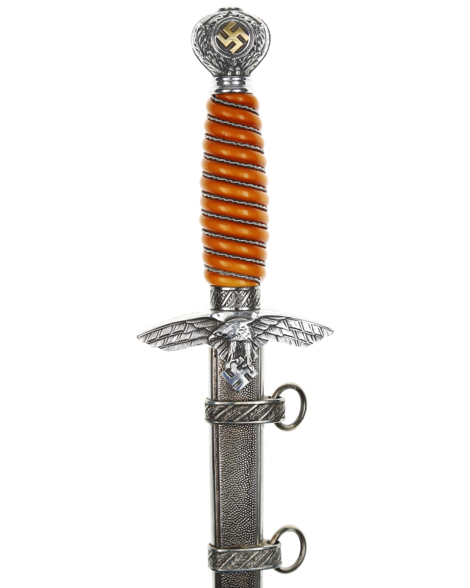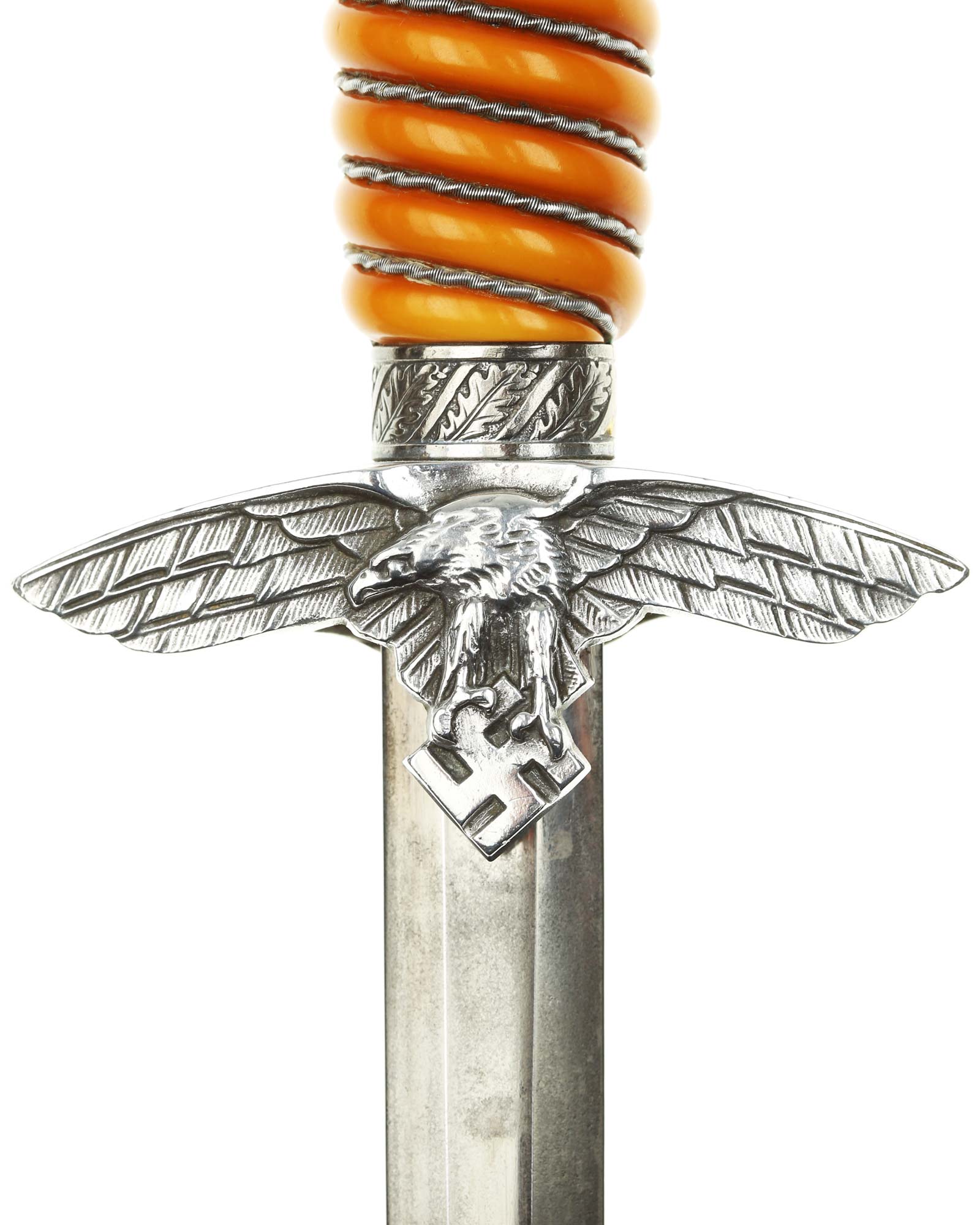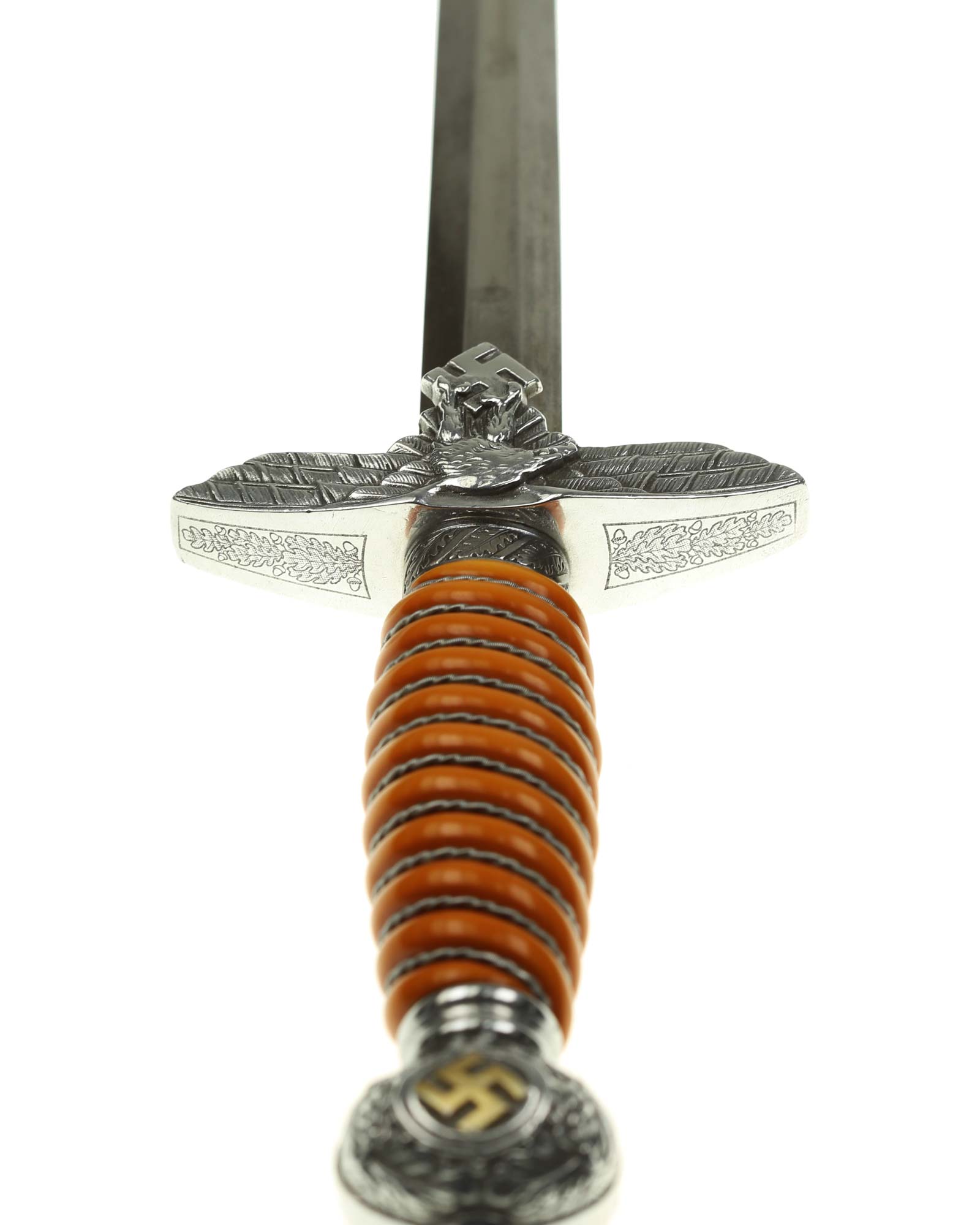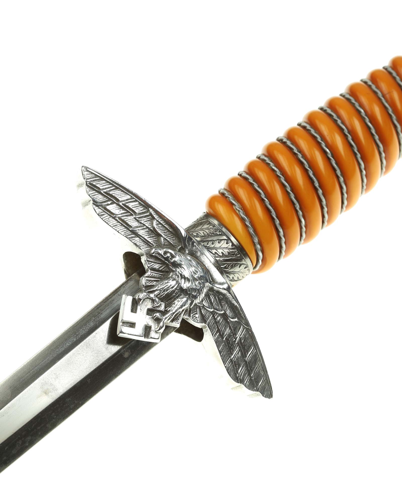 Кортик офицера ВВС Люфтваффе (нем. Luftwaffen-Offizierdolch) обр. 1937 года. Крестовина с обратной стороны имеет точечный фон. Кортик с клеймом SMF Золинген.
