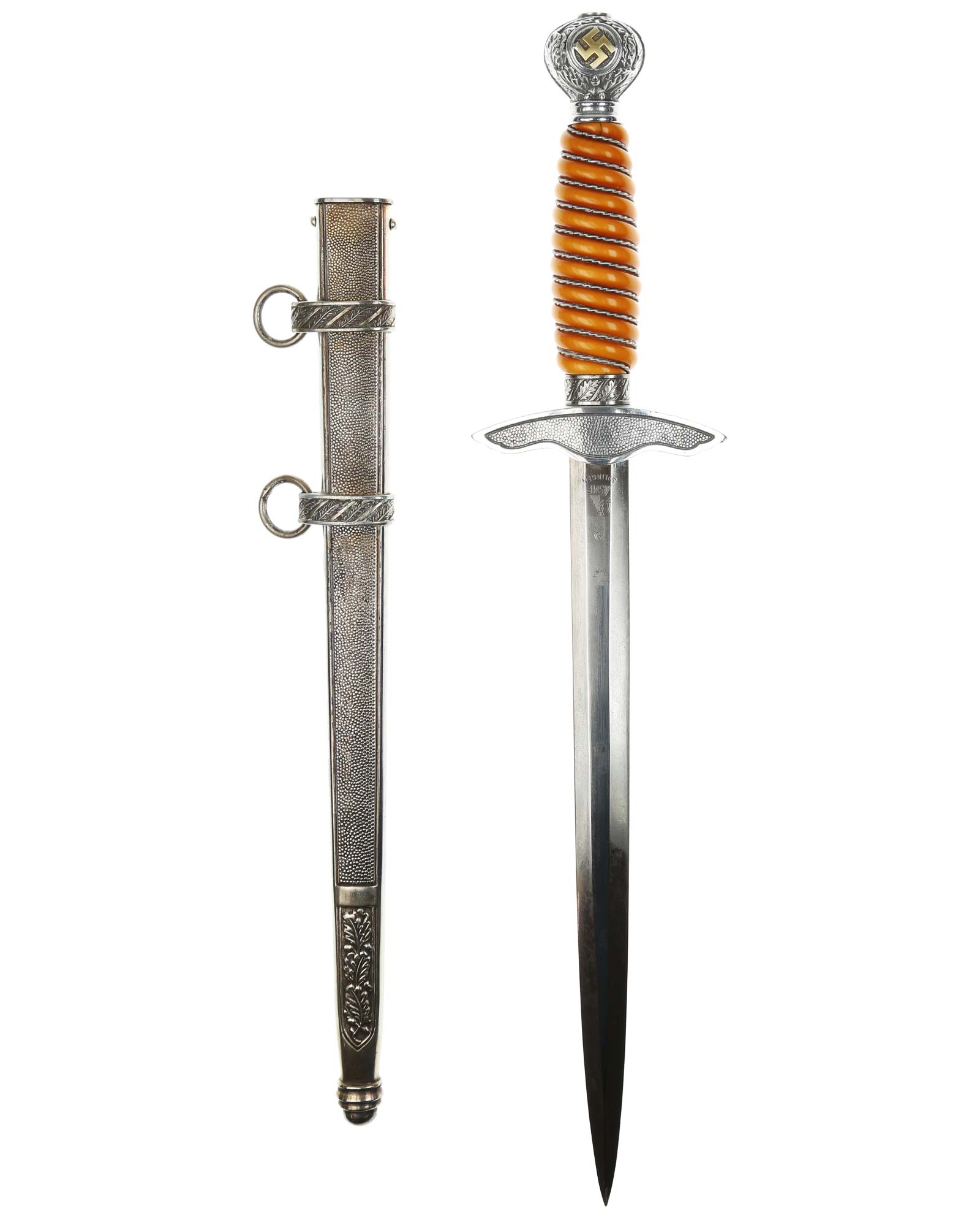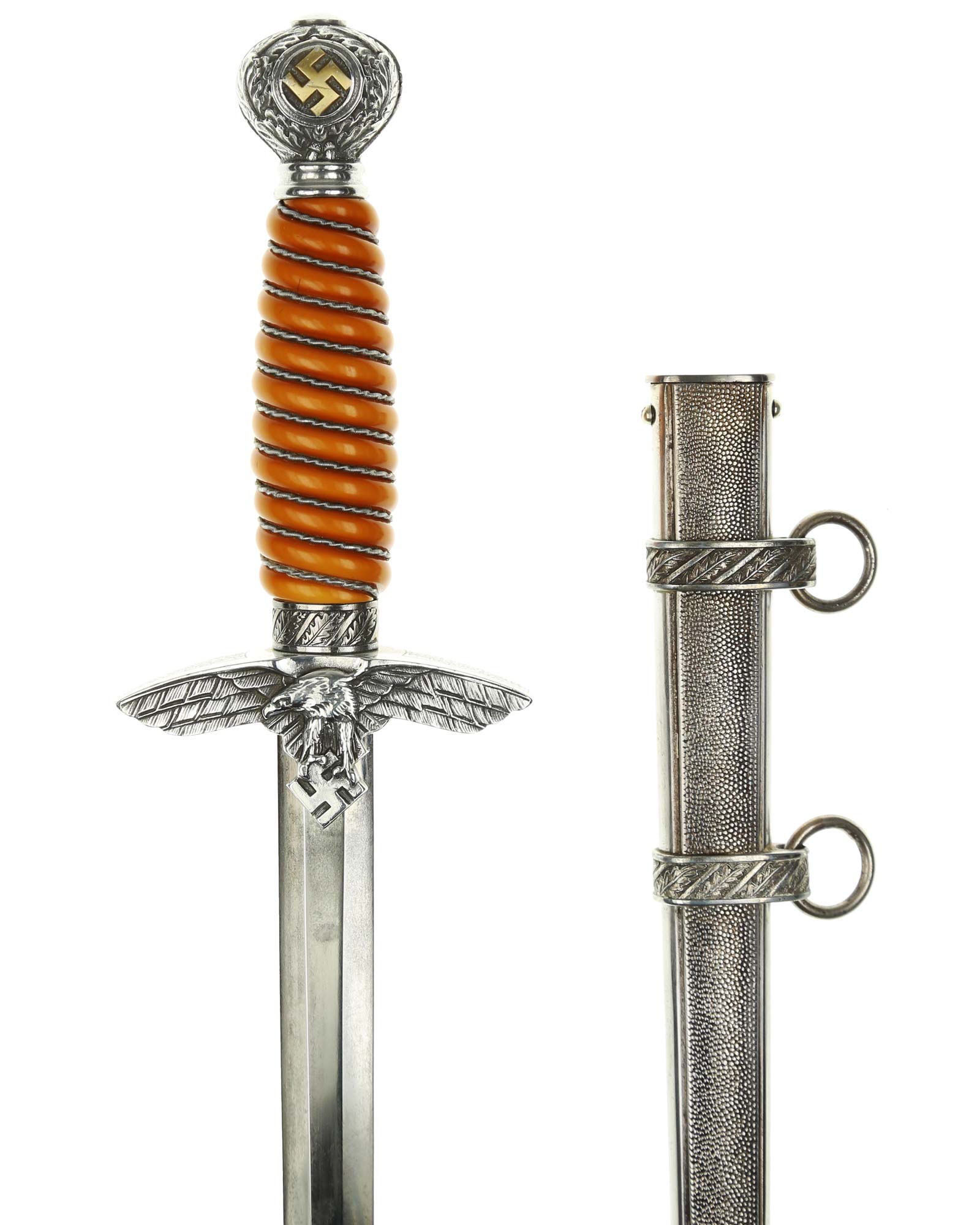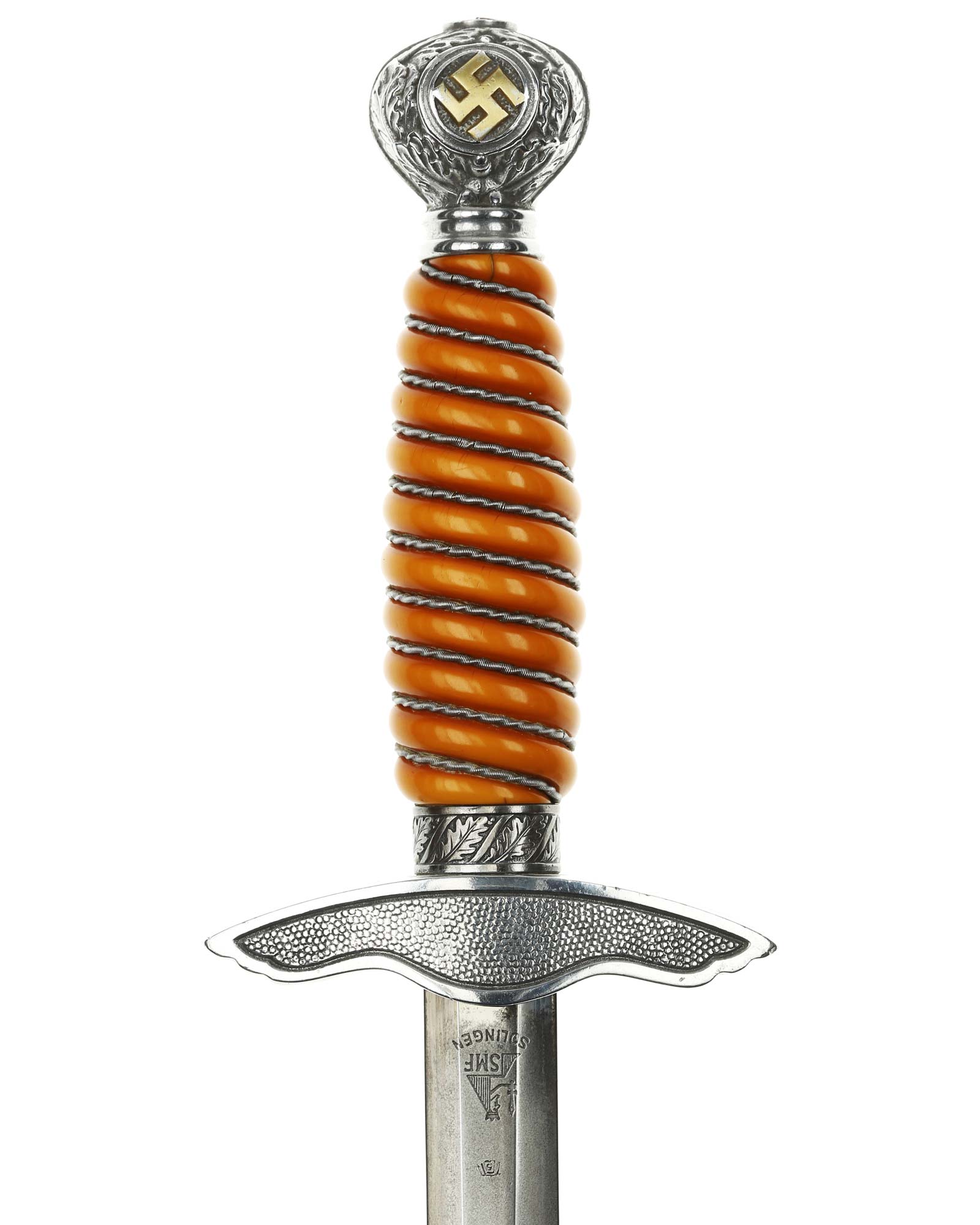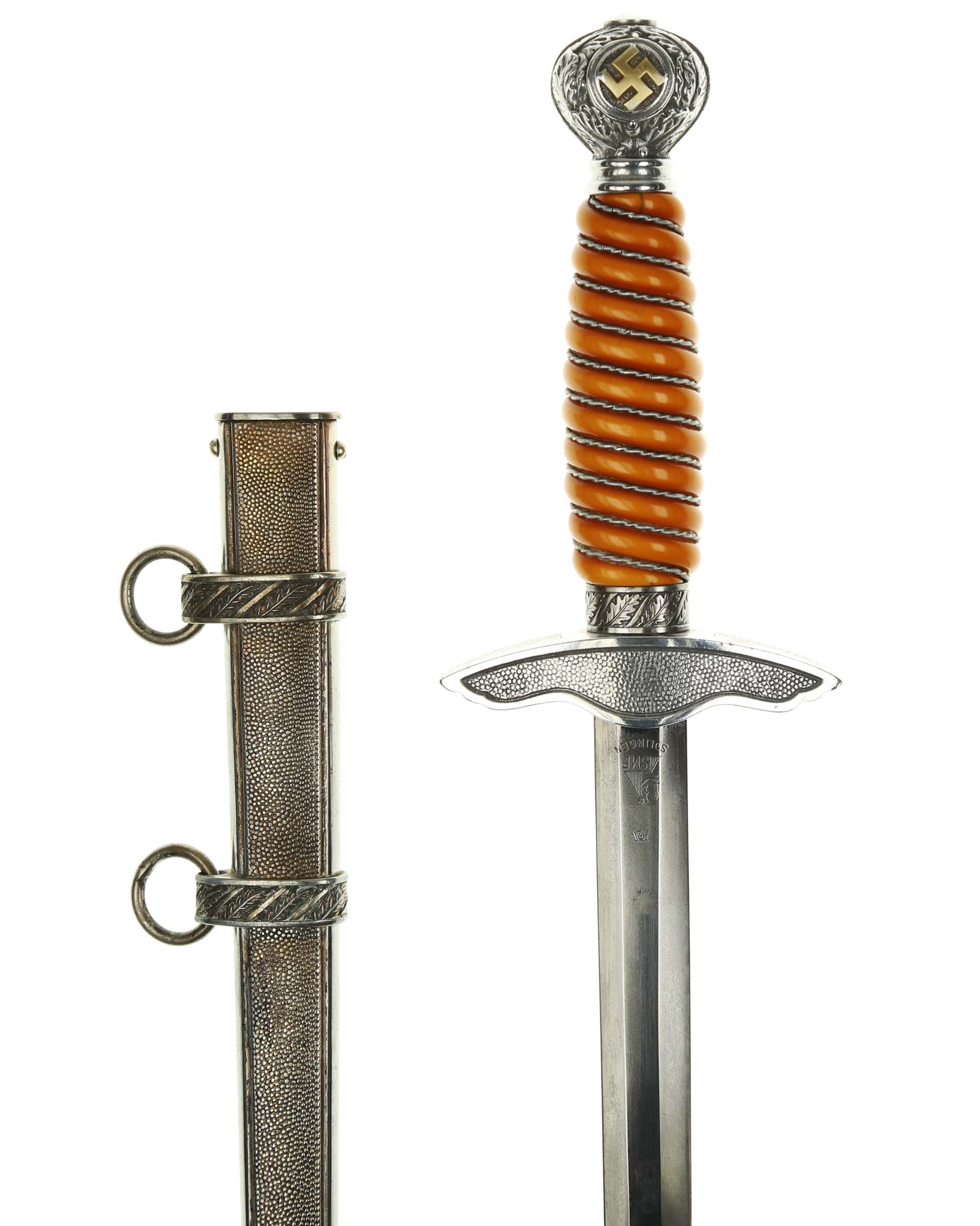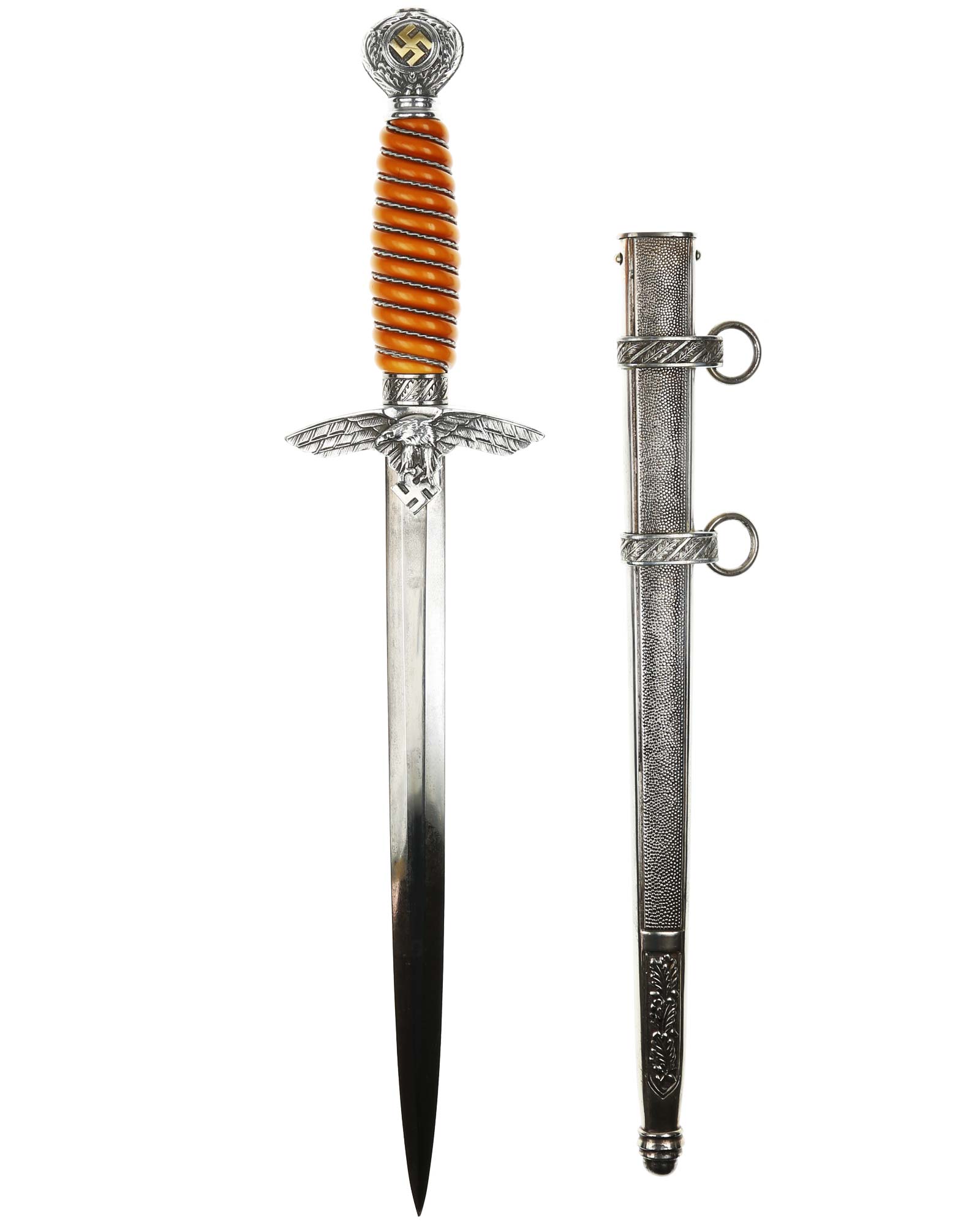 Кортик офицера ВВС Люфтваффе (нем. Luftwaffen-Offizierdolch) обр. 1937 года. Крестовина с обратной стороны имеет точечный фон. Кортик с клеймом SMF Золинген.