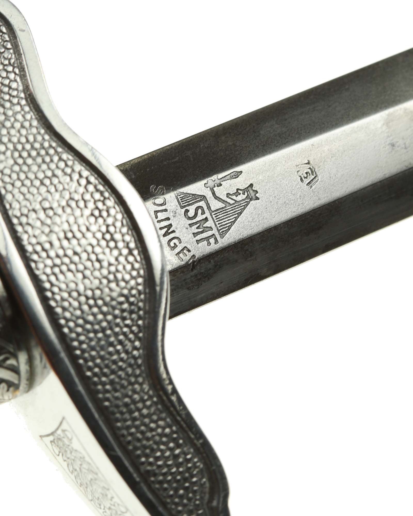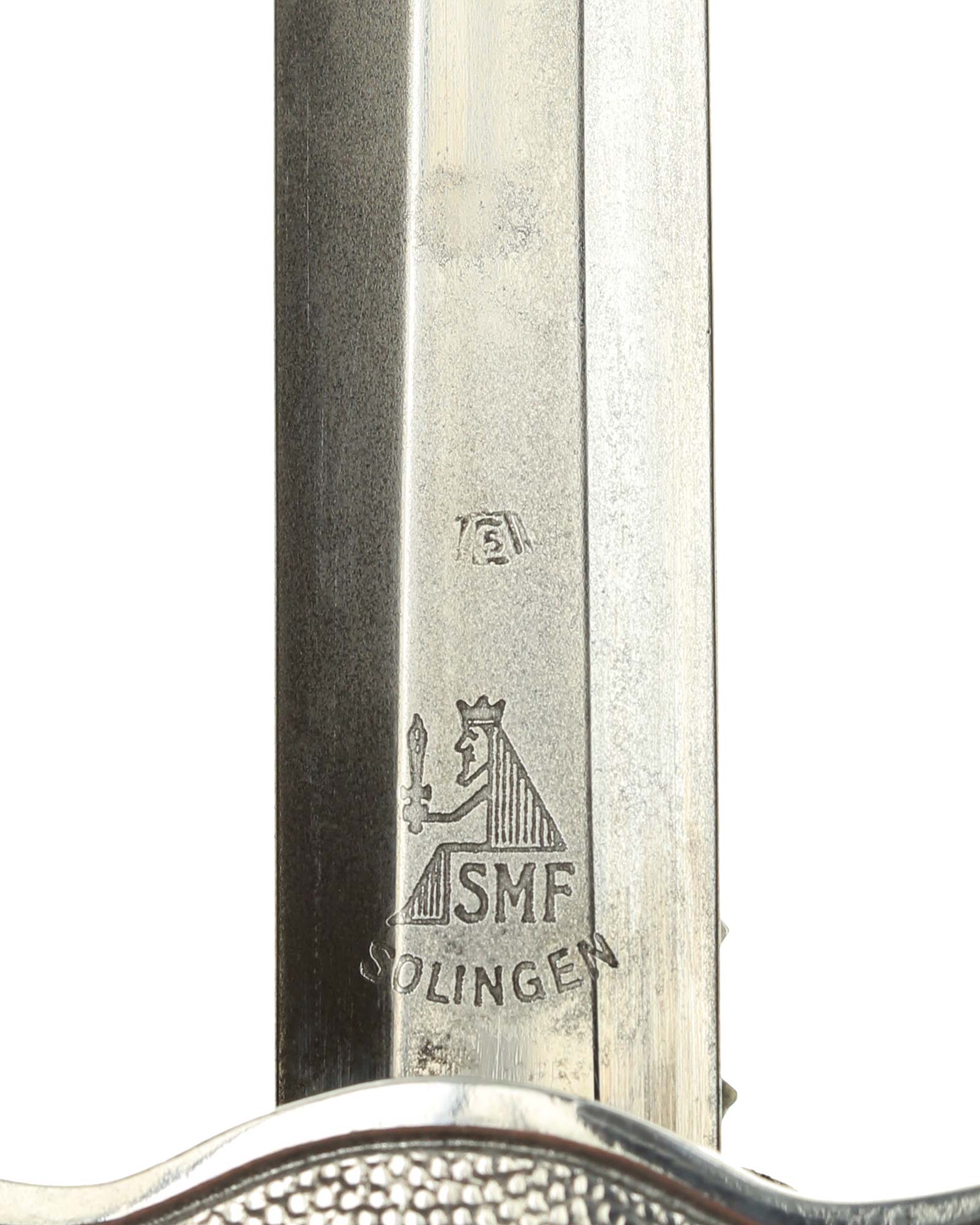 Клинок: Клинок прямой, двулезвийный, в сечении – шестигранный; боевой конец – ромбического сечения. На пяте клинка нанесено клеймо немецкой фирмы производителя «Штеккер & Кo. (SMF), Золинген» (Stöcker & Co. SMF, Solingen).