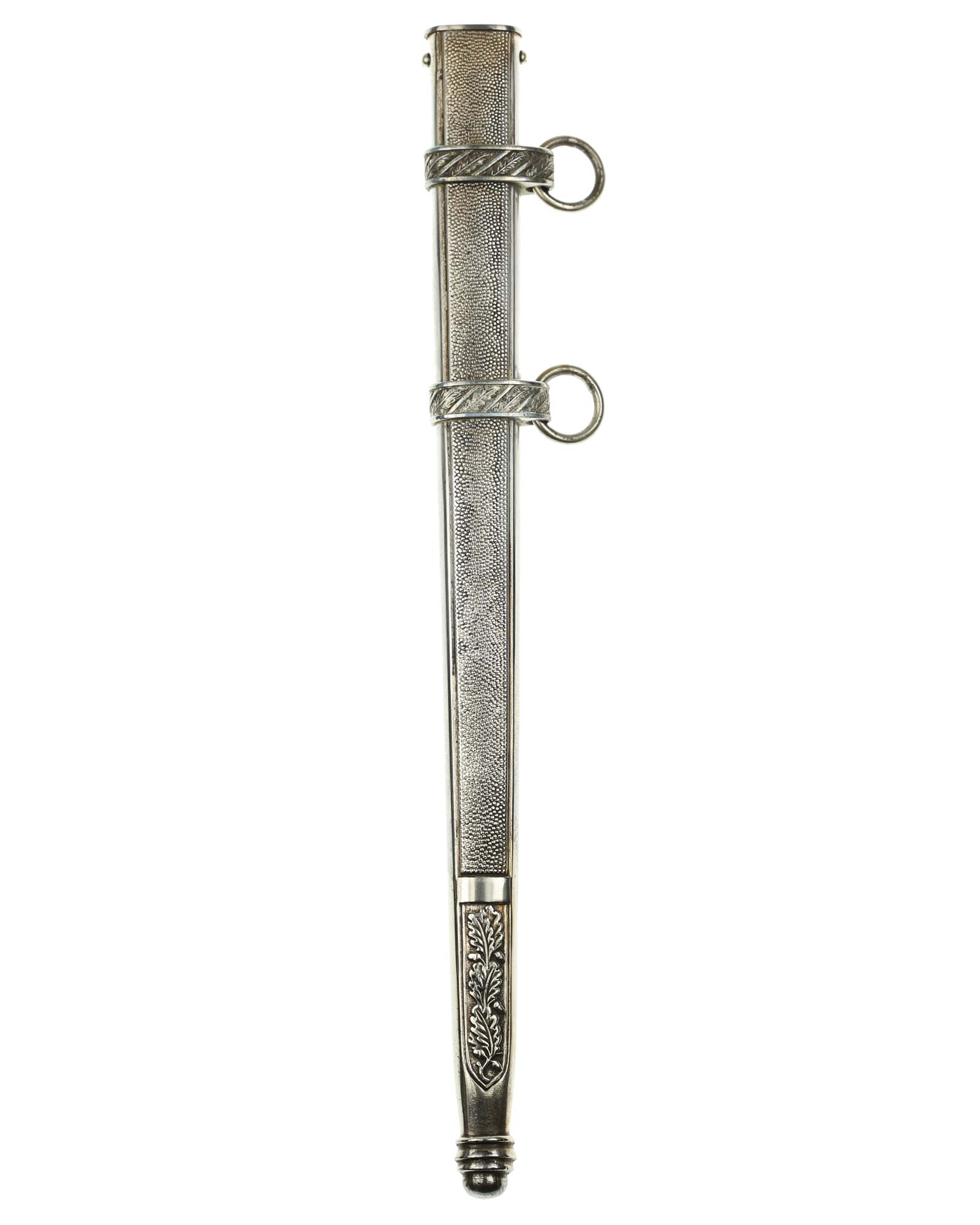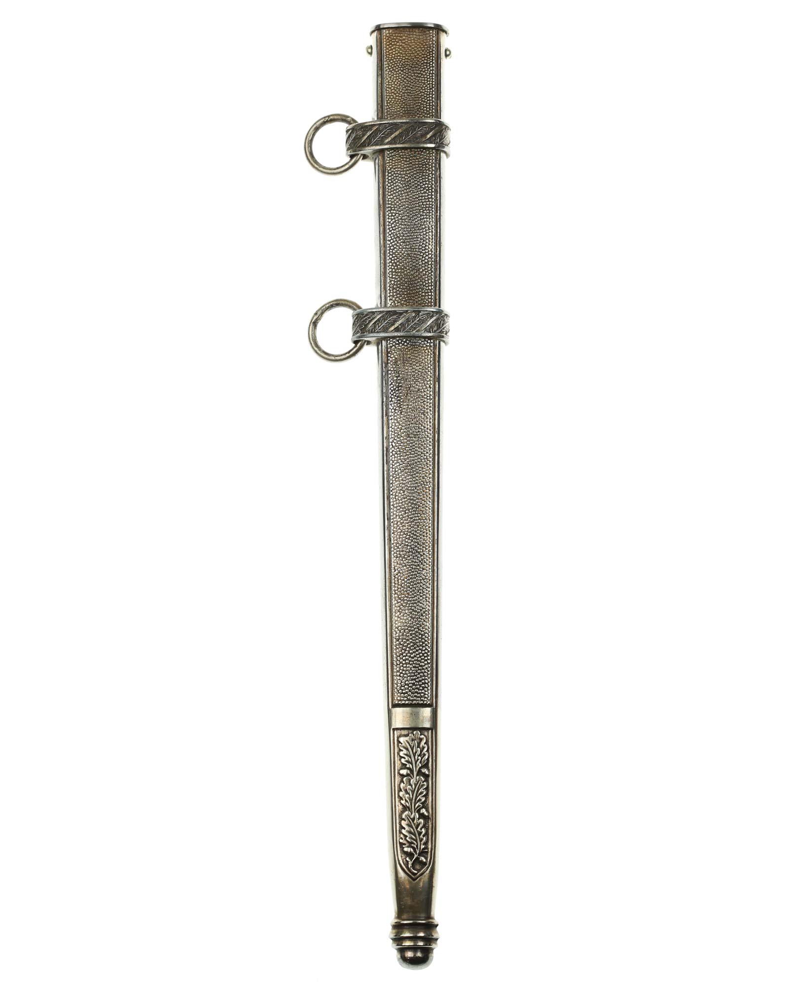 Ножны: Ножны металлические, цельные, поверхность покрыта мелкими точками. Конец ножен округлый, с тремя рельефными поясками, украшен орнаментом из дубовых листьев. Ножны имеют два обоймицы с кольцами для портупеи.
