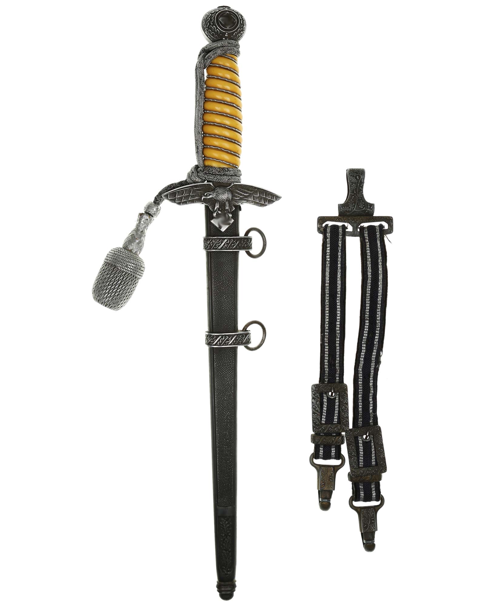 Кортик офицера ВВС Люфтваффе (нем. Luftwaffen-Offizierdolch) обр. 1937 года. Крестовина с обратной стороны имеет точечный фон. Кортик с клеймом WKC Solingen (Вайерсберг Киршбаум Золинген).