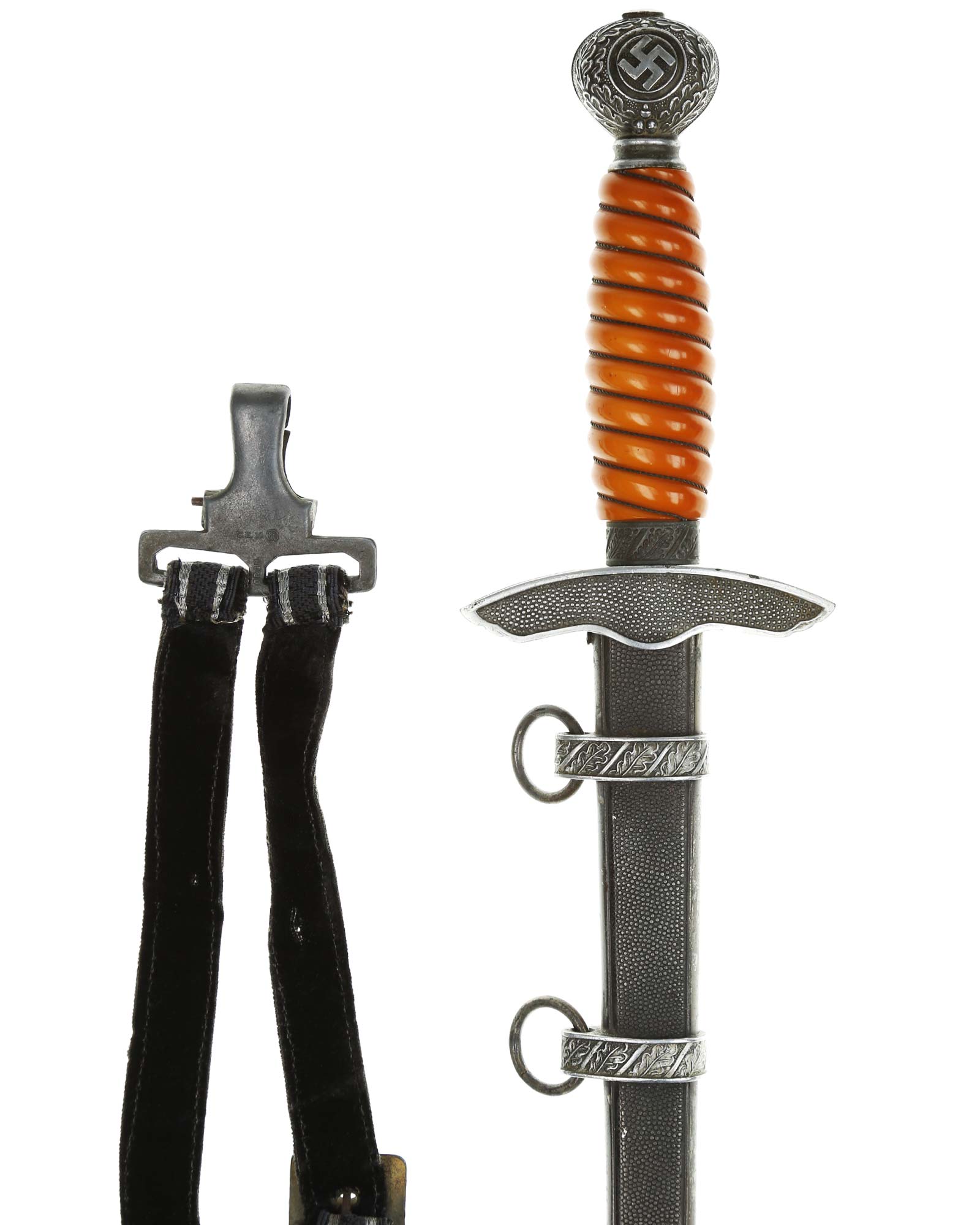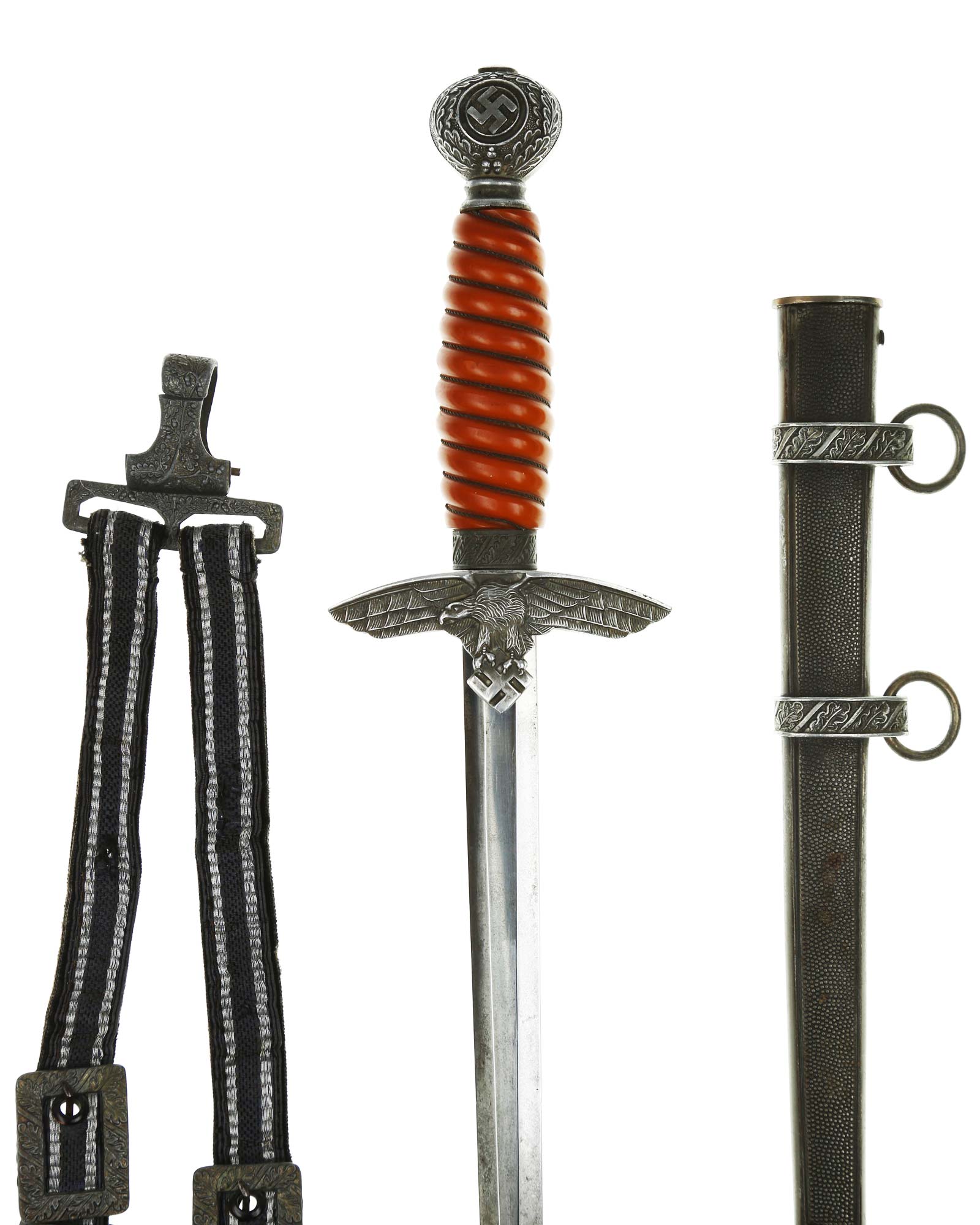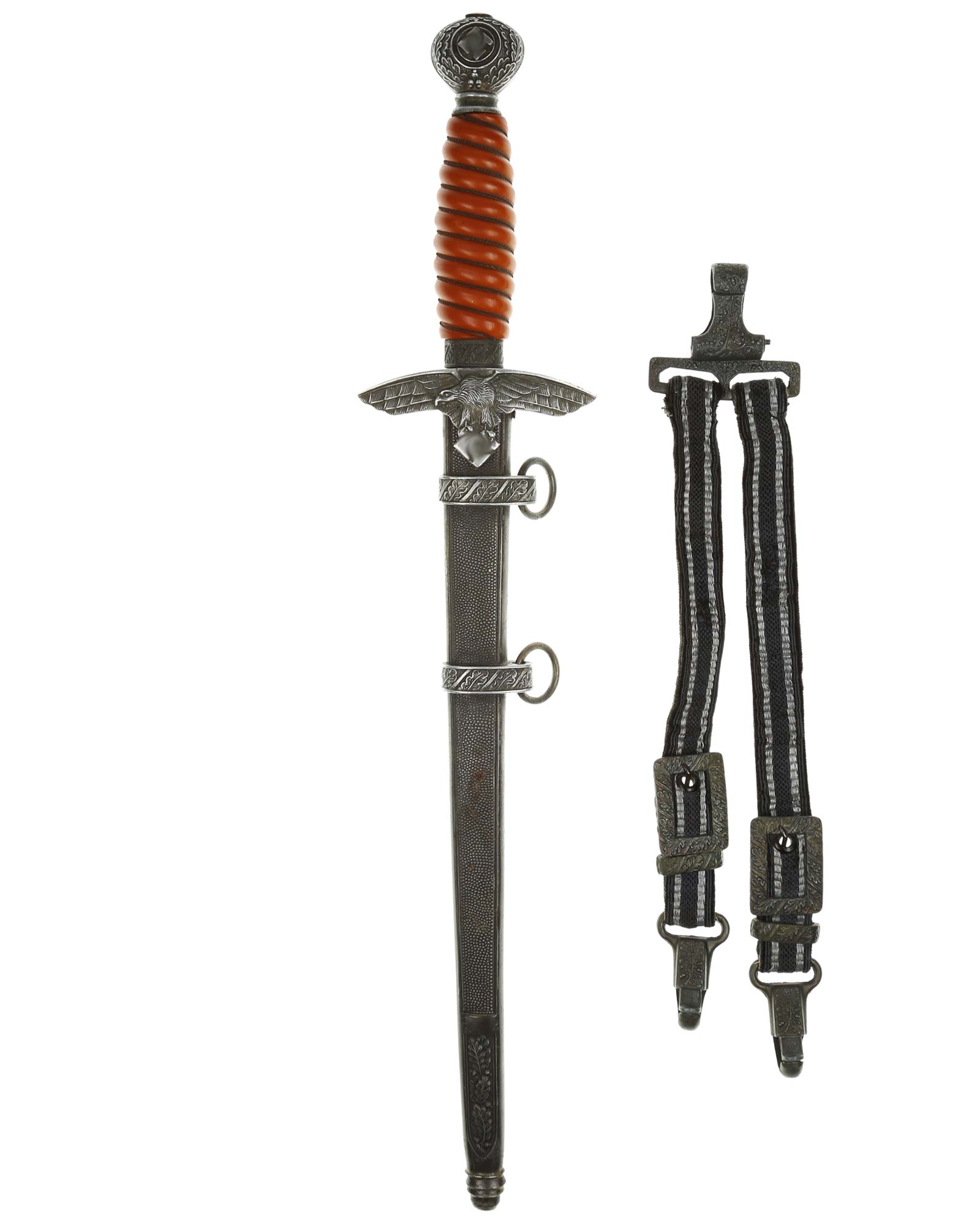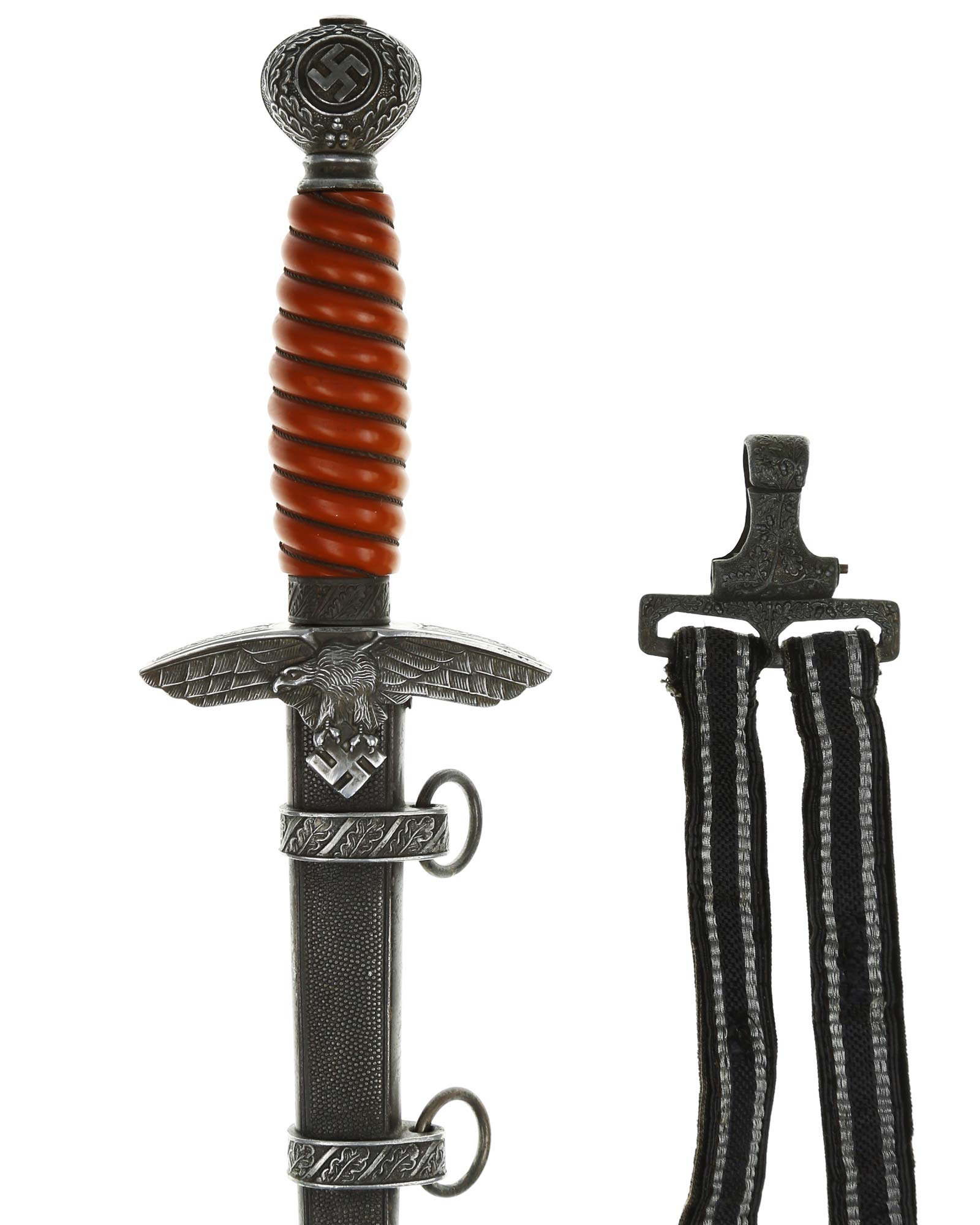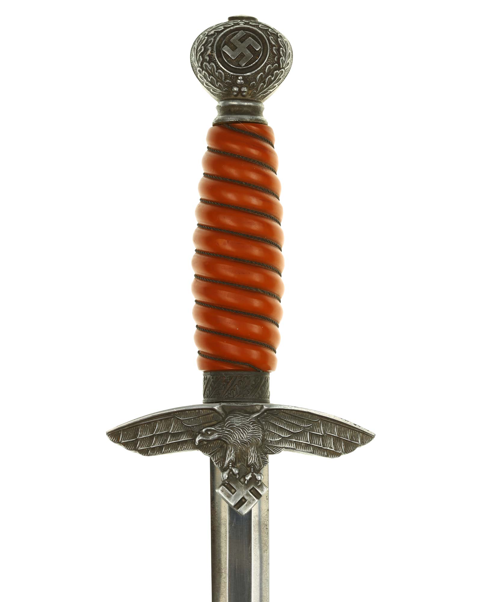 Кортик офицера ВВС Люфтваффе (нем. Luftwaffen-Offizierdolch) обр. 1937 года. Крестовина с обратной стороны имеет точечный фон. Кортик с клеймом WKC Solingen (Вайерсберг Киршбаум Золинген).