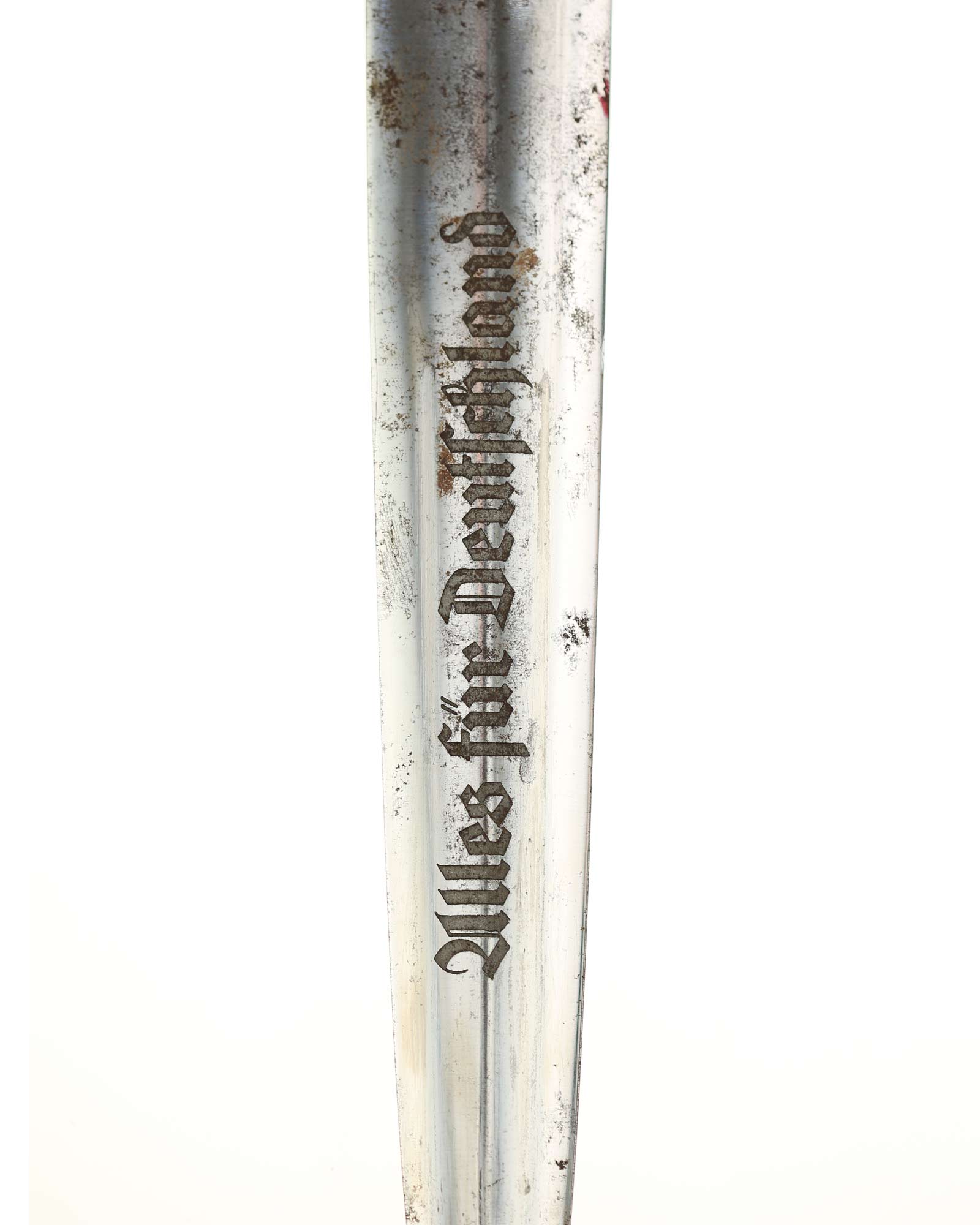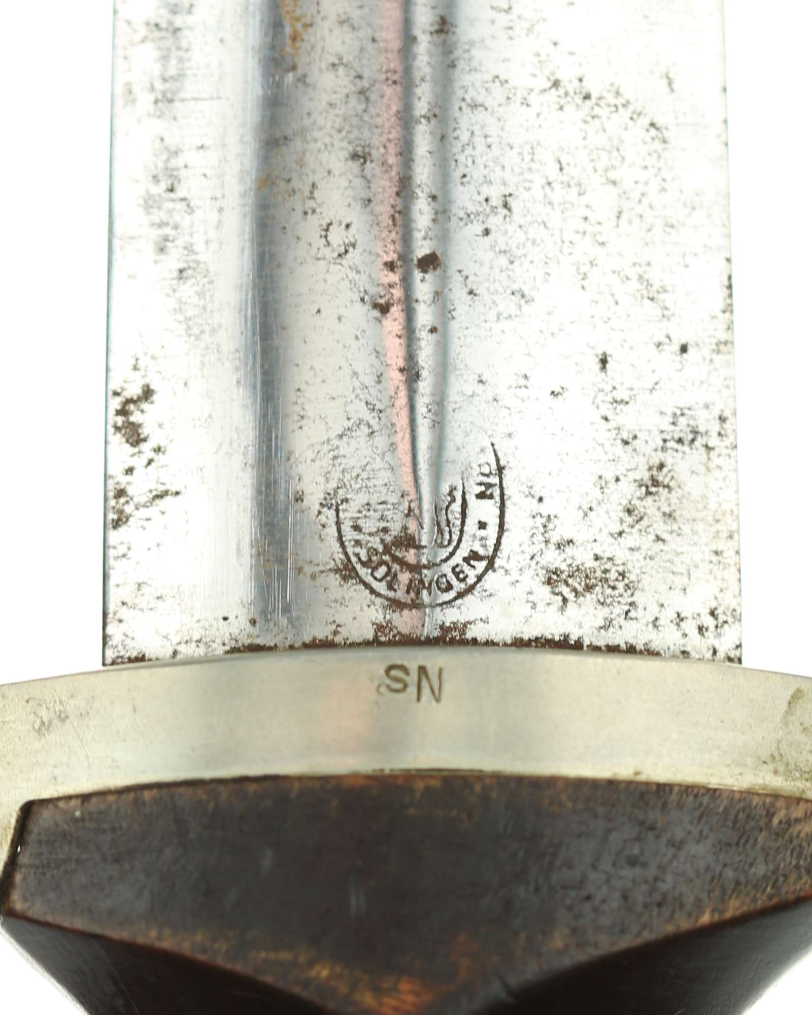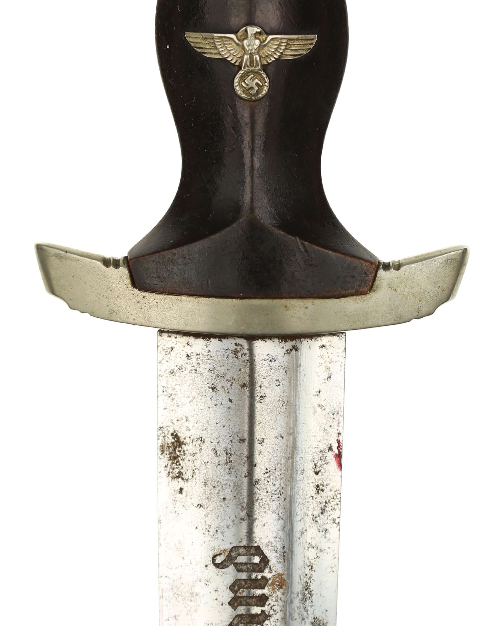 Клинок: Клинок кинжала прямой, стальной, двулезвийный, кинжального типа, с выраженным центральным ребром. На одной стороне клинка методом травления нанесен девиз СА «Всё для Германии» (Alles für Deutchland). Клинок на оборотной стороне у основания стоит клеймо производителя Carl Eickhorn Solingen.