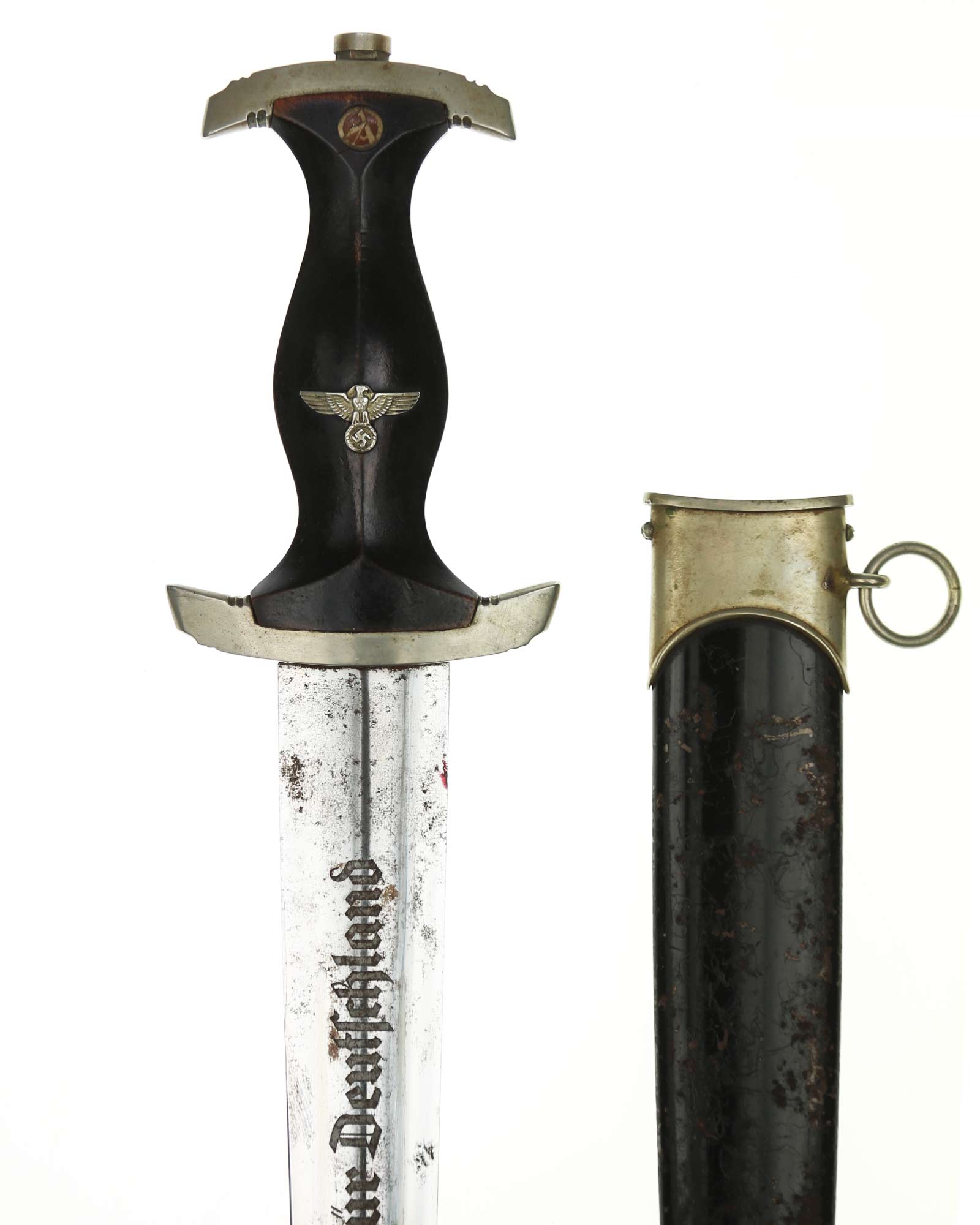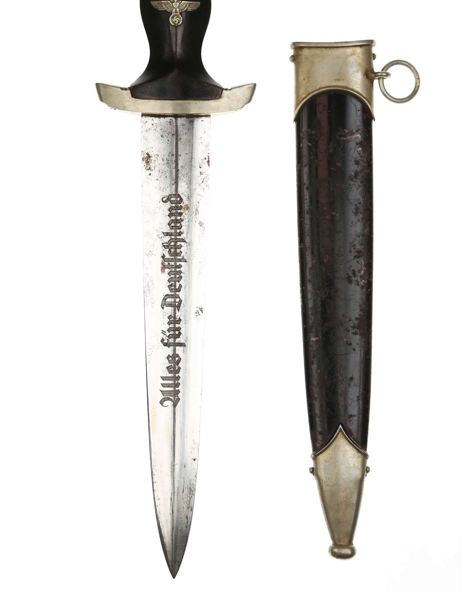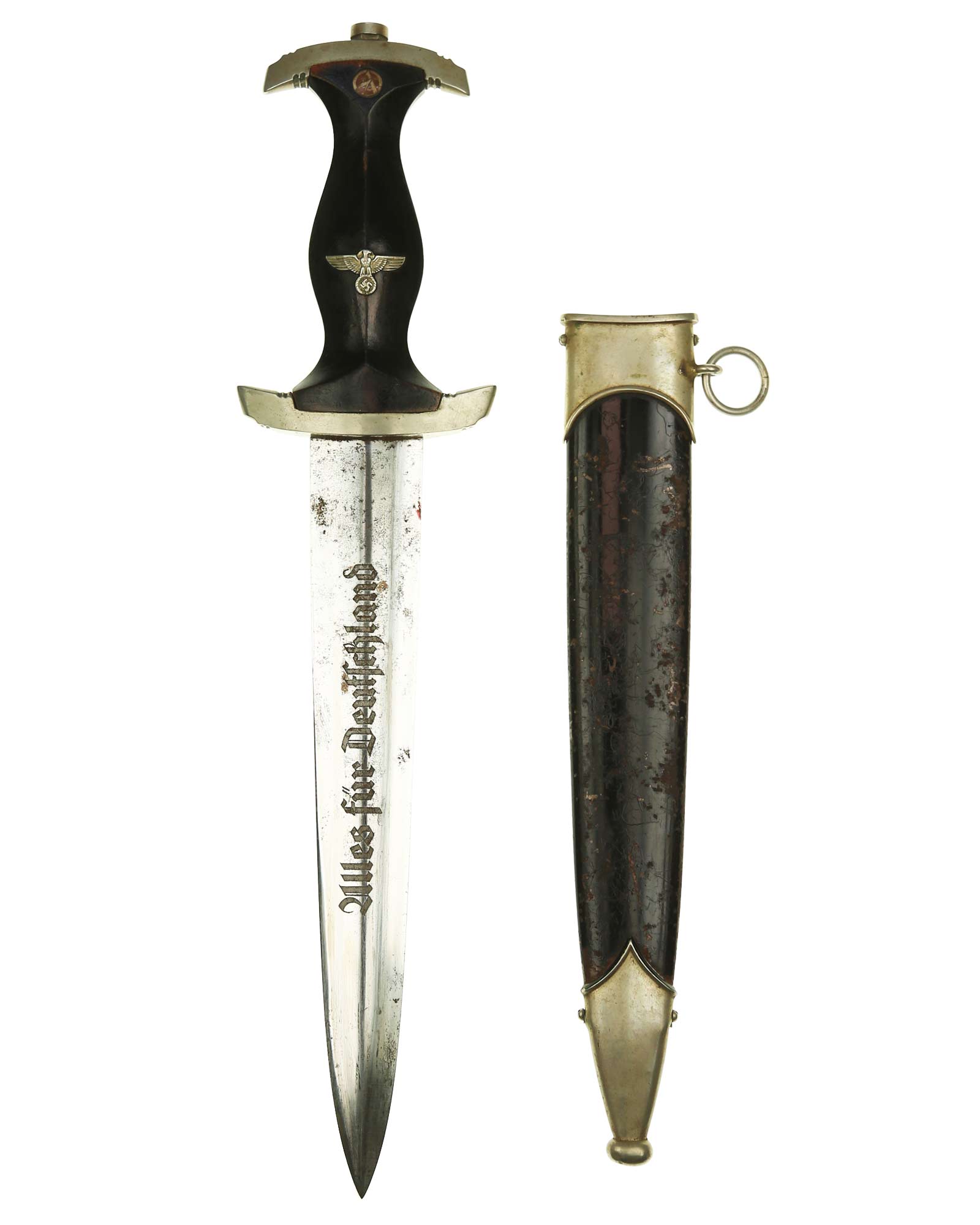 Клинок: Клинок кинжала прямой, стальной, двулезвийный, кинжального типа, с выраженным центральным ребром. На одной стороне клинка методом травления нанесен девиз СА «Всё для Германии» (Alles für Deutchland). Клинок на оборотной стороне у основания стоит клеймо производителя Carl Eickhorn Solingen.
