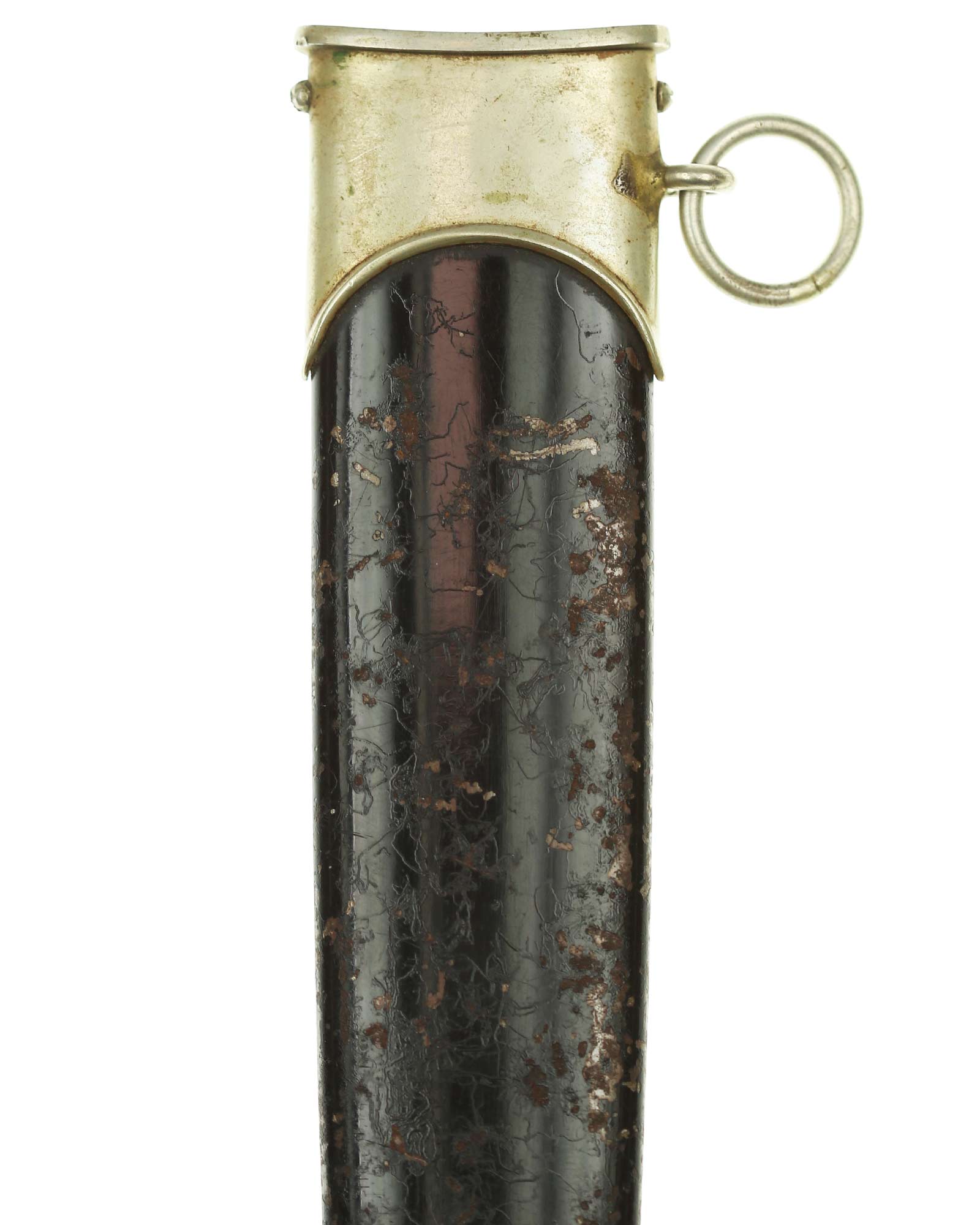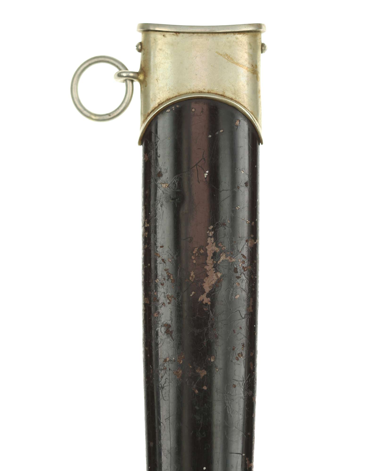 Ножны: Ножны стальные с накладными наконечником и устьем. Наконечник и устье ножен крепятся при помощи двух винтов. Прибор ножен изготовлен из белого металла и состоит из устья с гайкой.