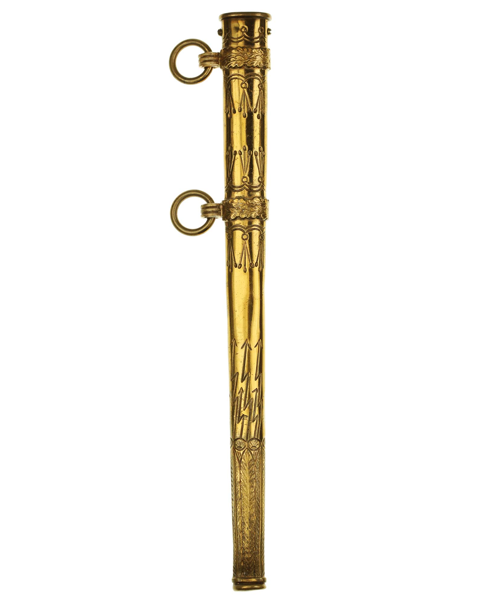 Ножны: Ножны латунные, с двумя кольцами, двумя обоймицами и устьем.