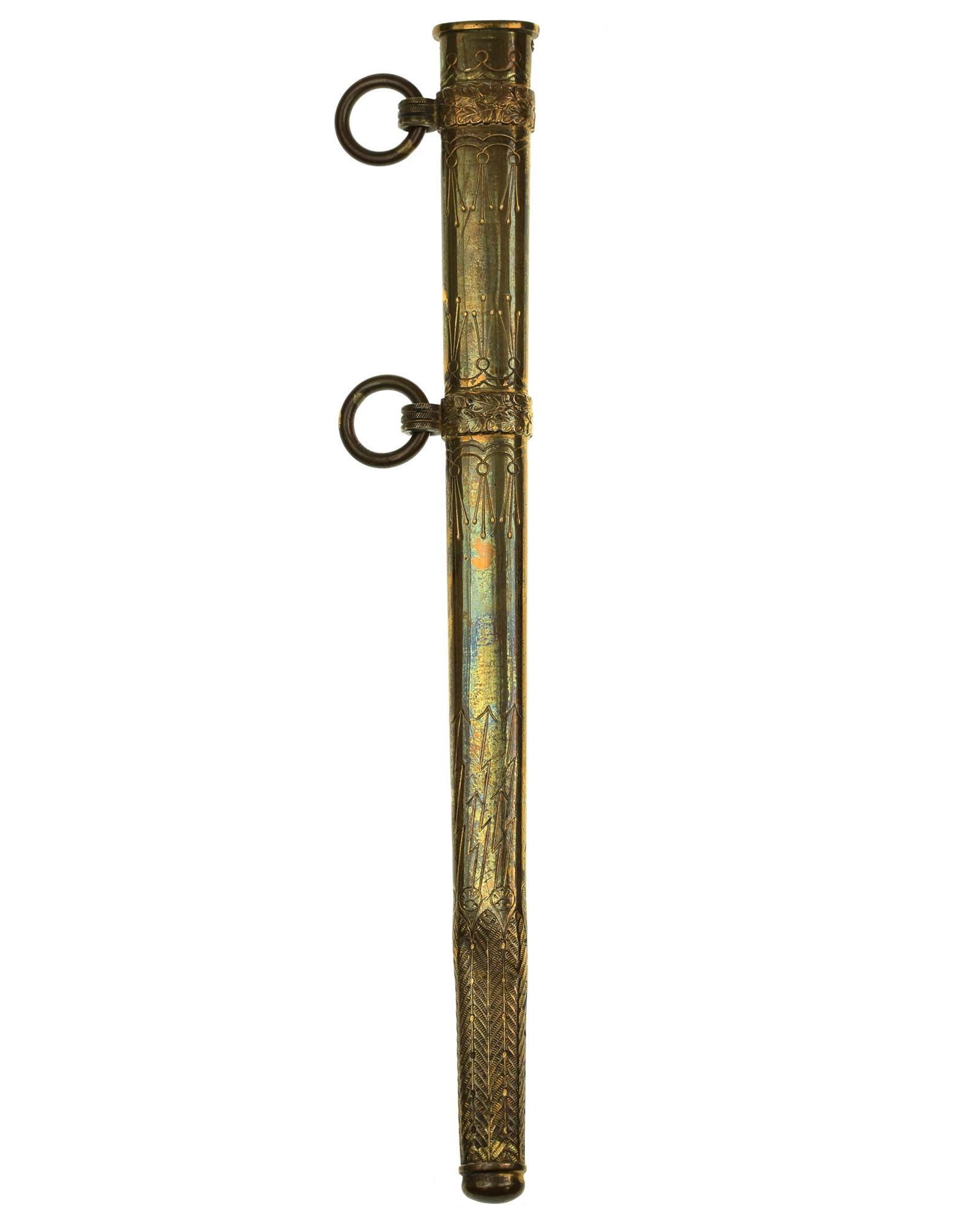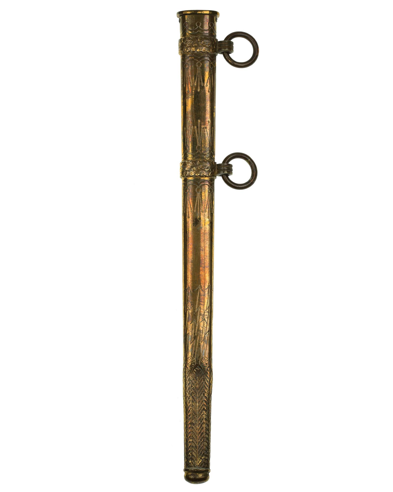 Ножны: Ножны латунные, с двумя кольцами, двумя обоймицами и устьем.
