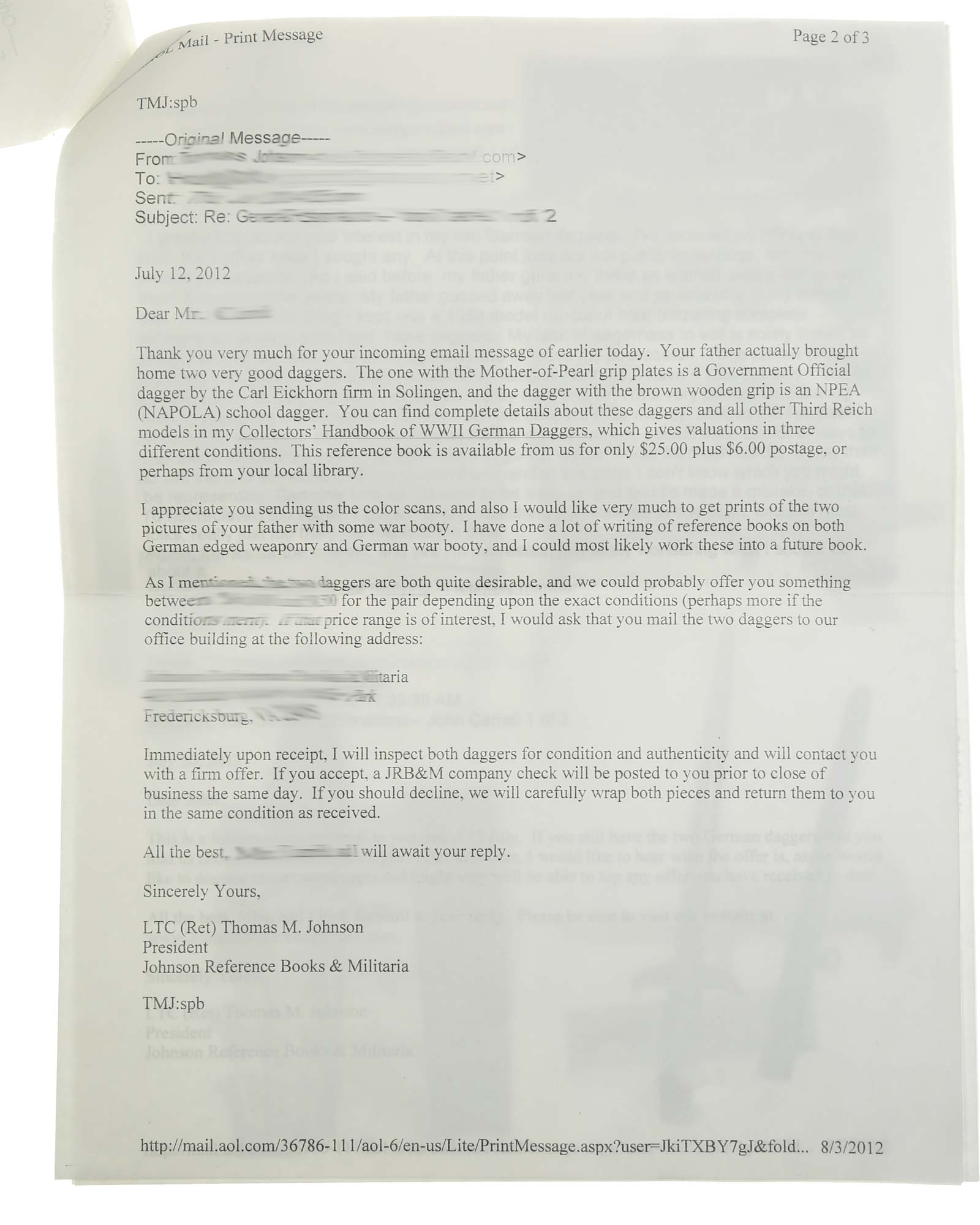 Кинжал преподавательского состава Национал-политических учебных заведений (NPEA) обр. 1935 г. - «Карл Бюргсмюллер Берлин».