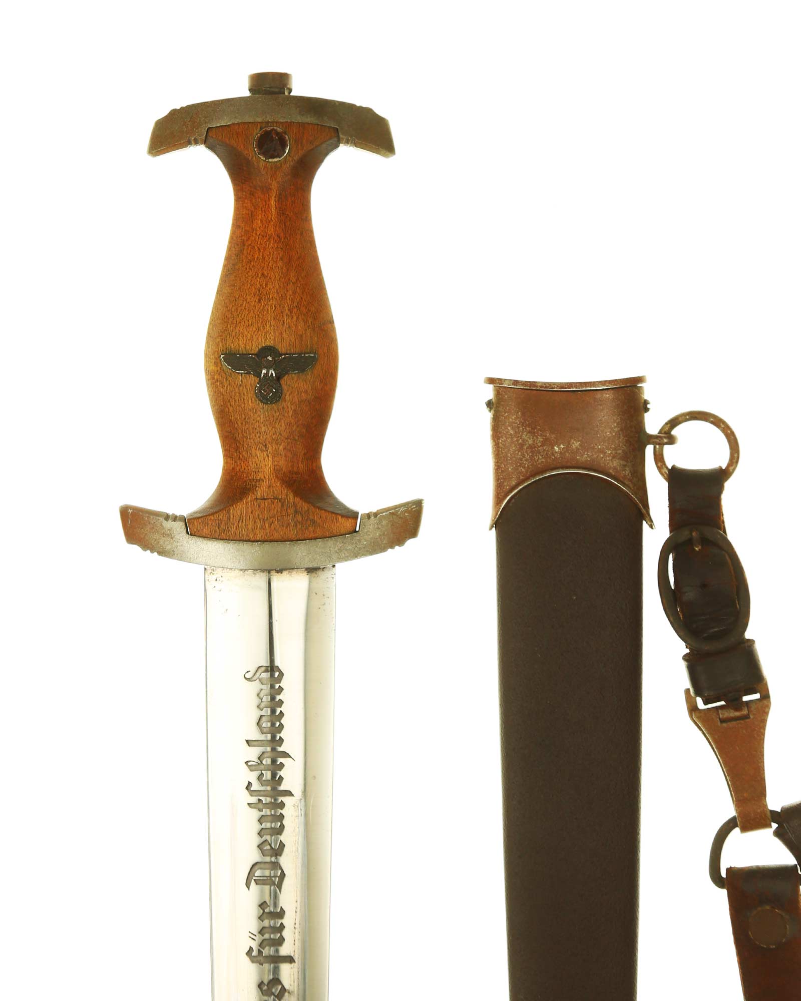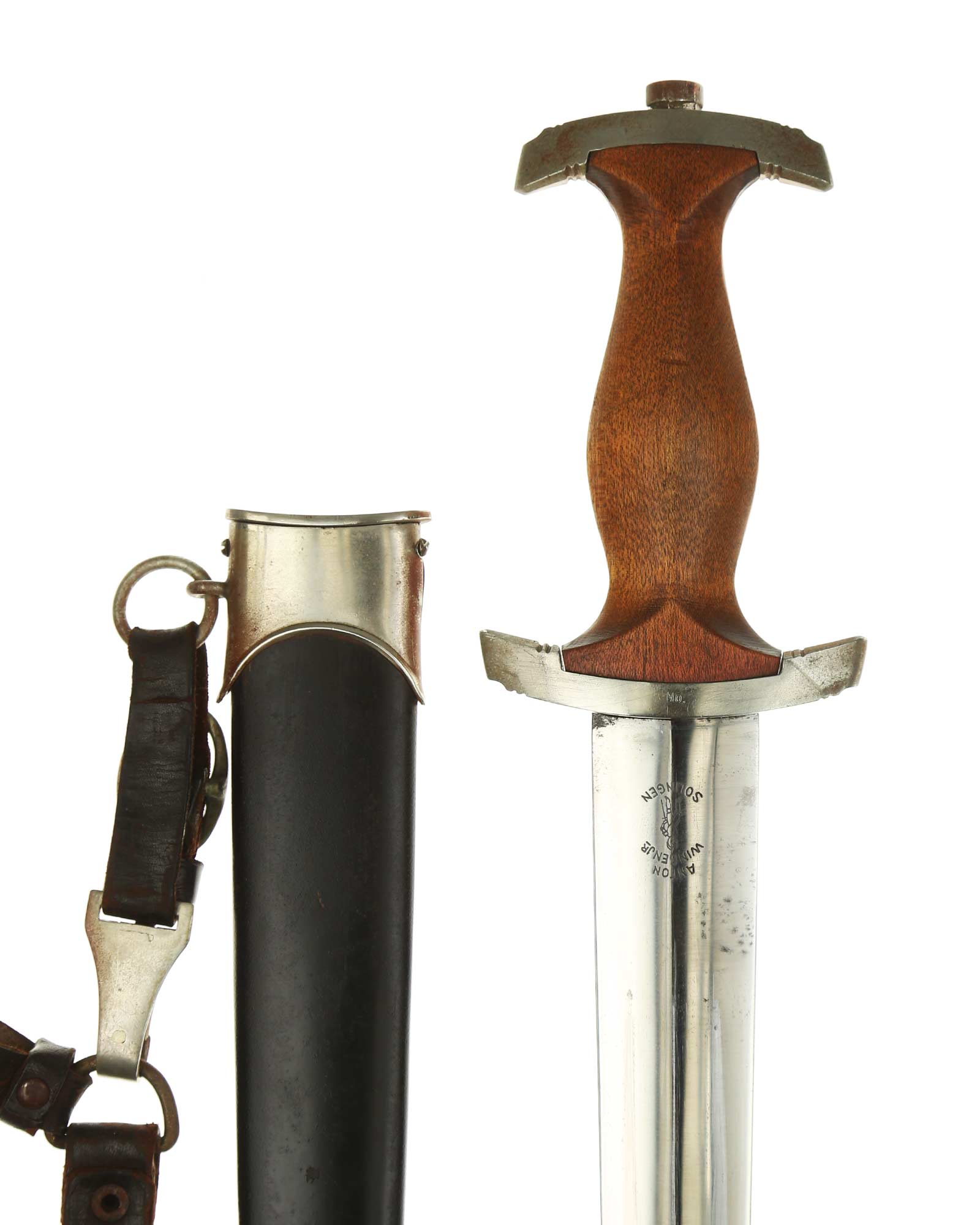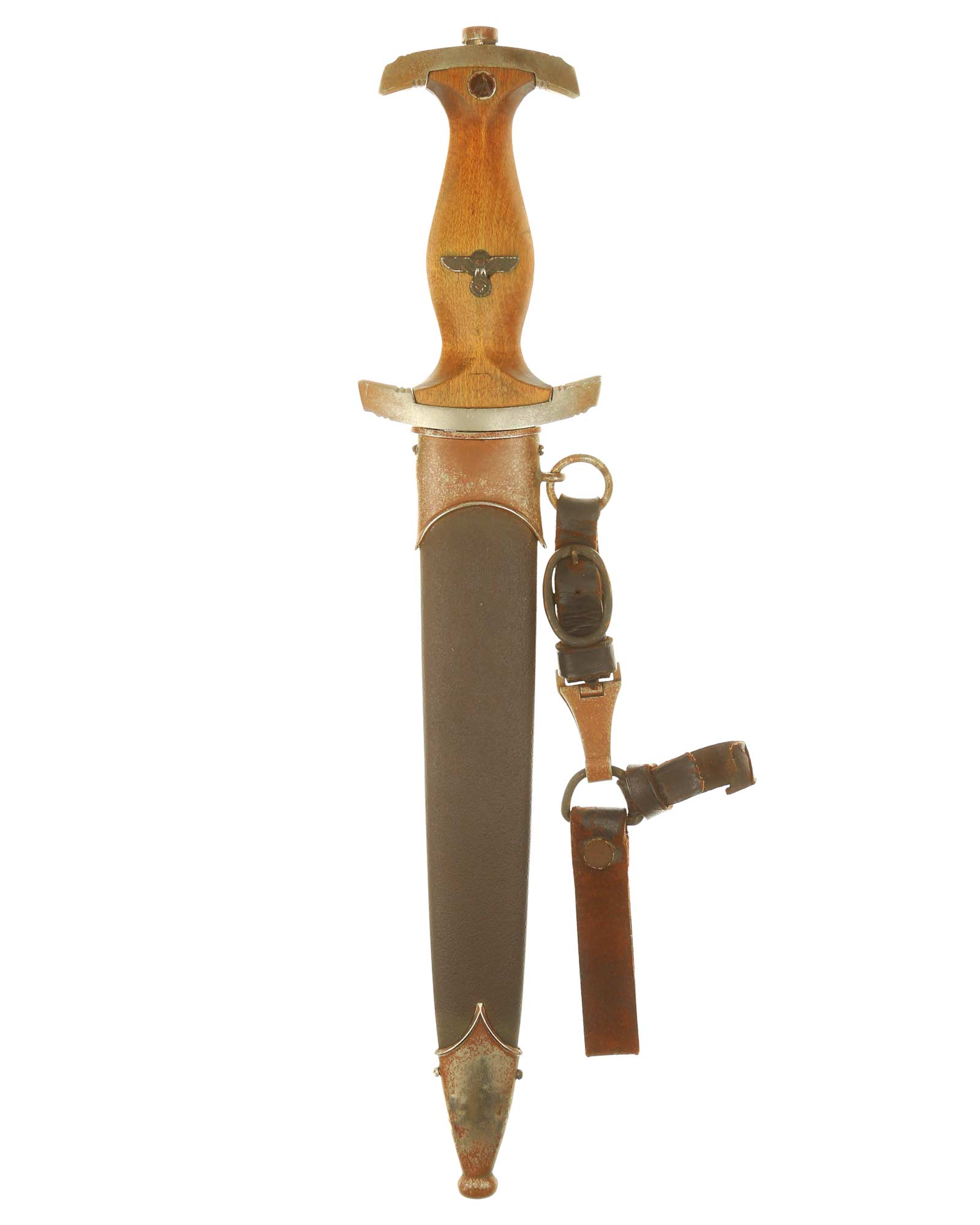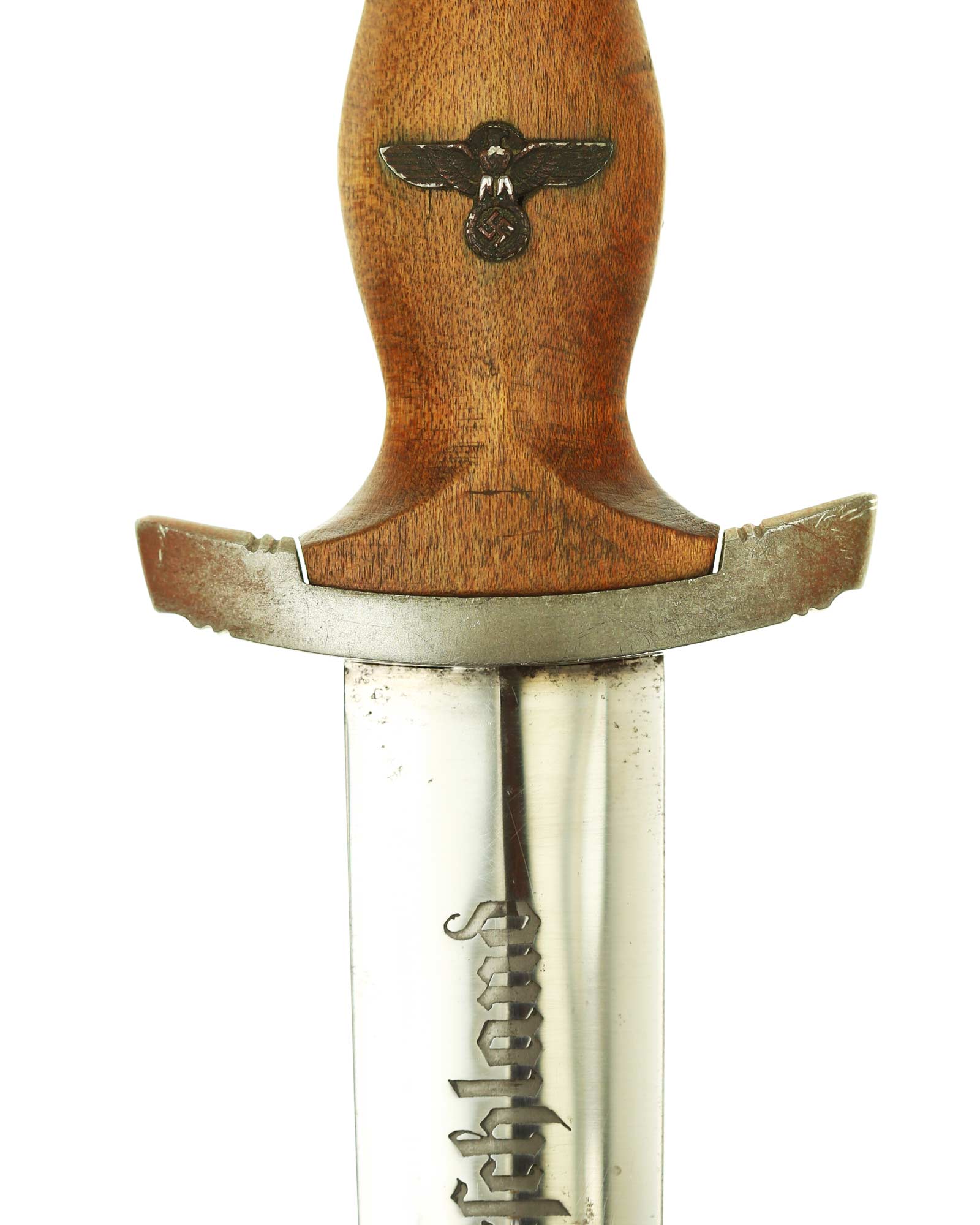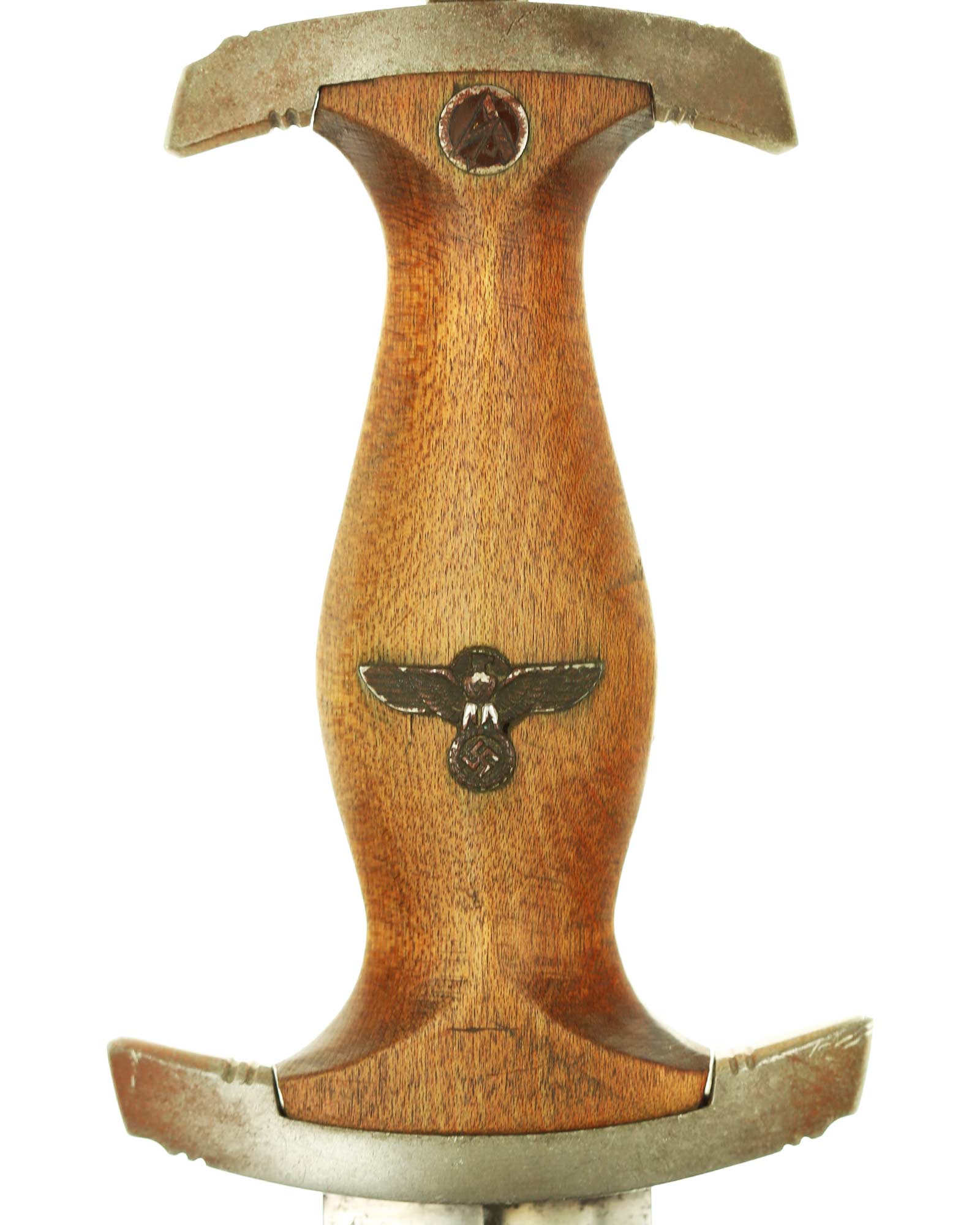 Ранний кинжал штурмовых отрядов НСКК [Национал-социалистический механизированный корпус] образца 1933 года. Производитель фирма Антон Винген Золинген (Anton Wingen Jr. Solingen). Длина в ножнах 37,4 см.