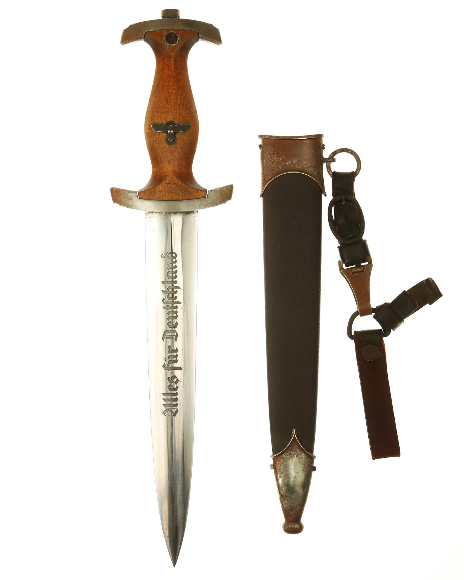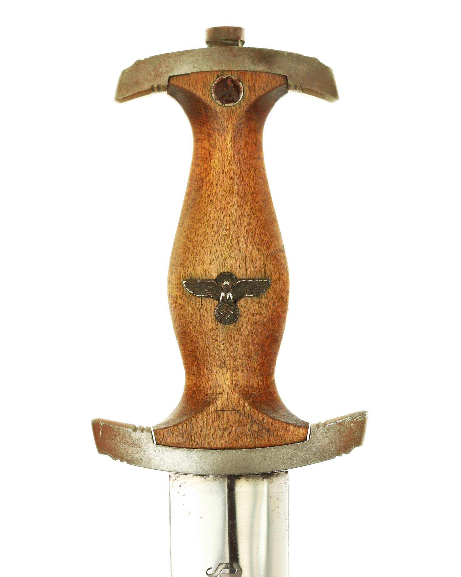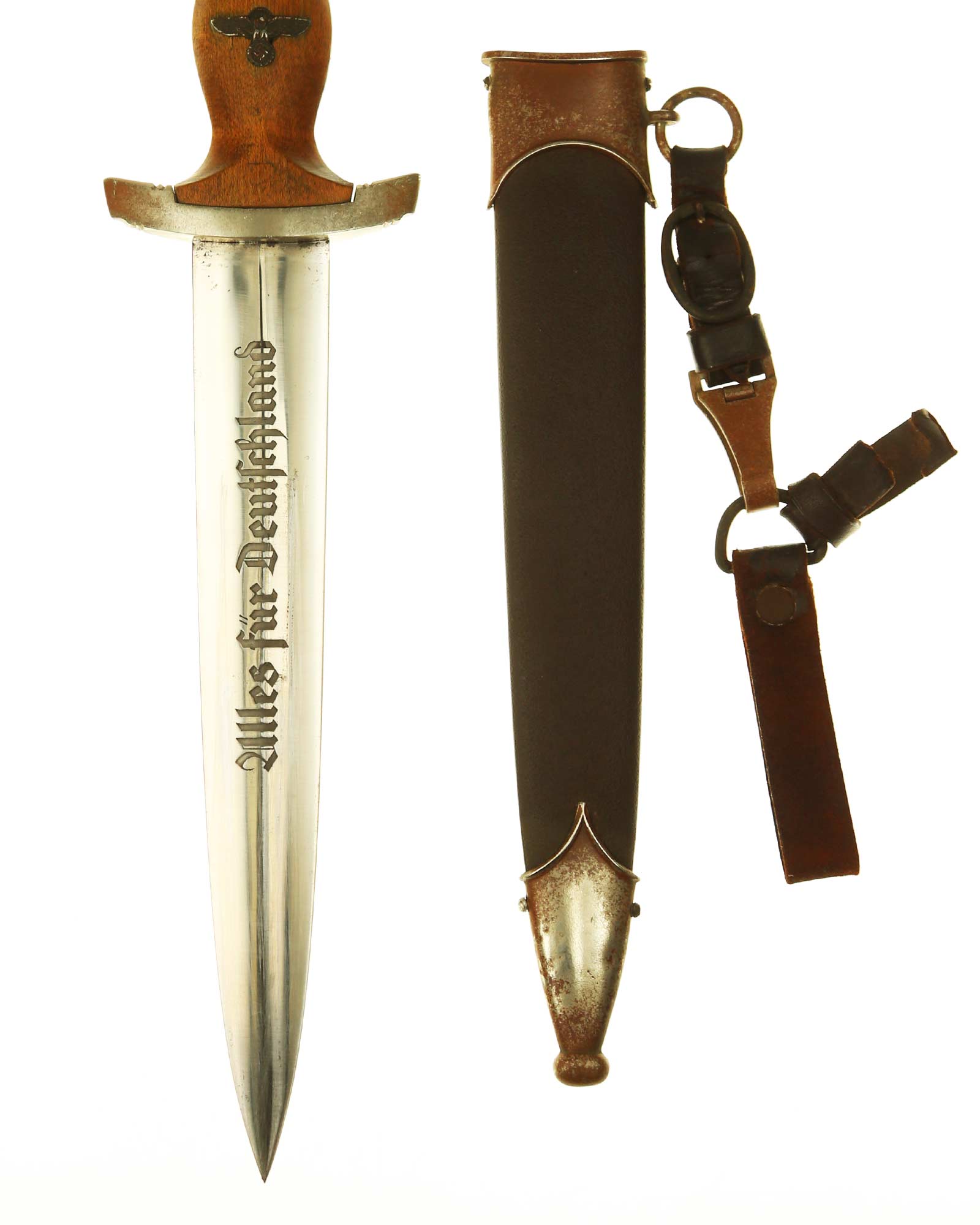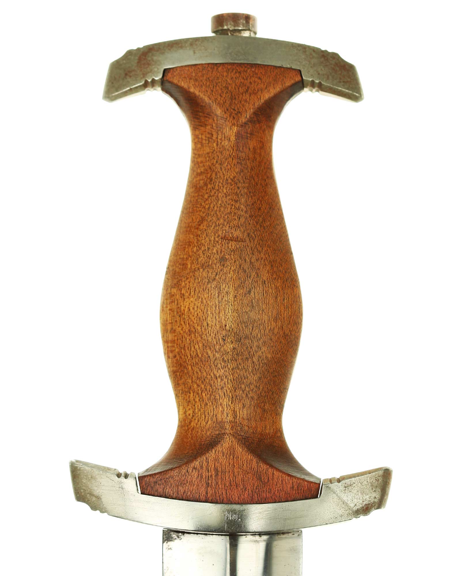 Клинок: Клинок кинжала прямой, стальной, двулезвийный, кинжального типа, с выраженным центральным ребром. На одной стороне клинка методом травления нанесен девиз СА «Всё для Германии» (Alles für Deutchland). Клинок на оборотной стороне у основания стоит клеймо производителя Антон Винген Золинген (Anton Wingen Jr. Solingen).
