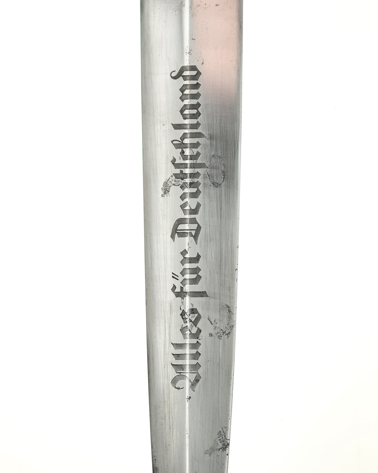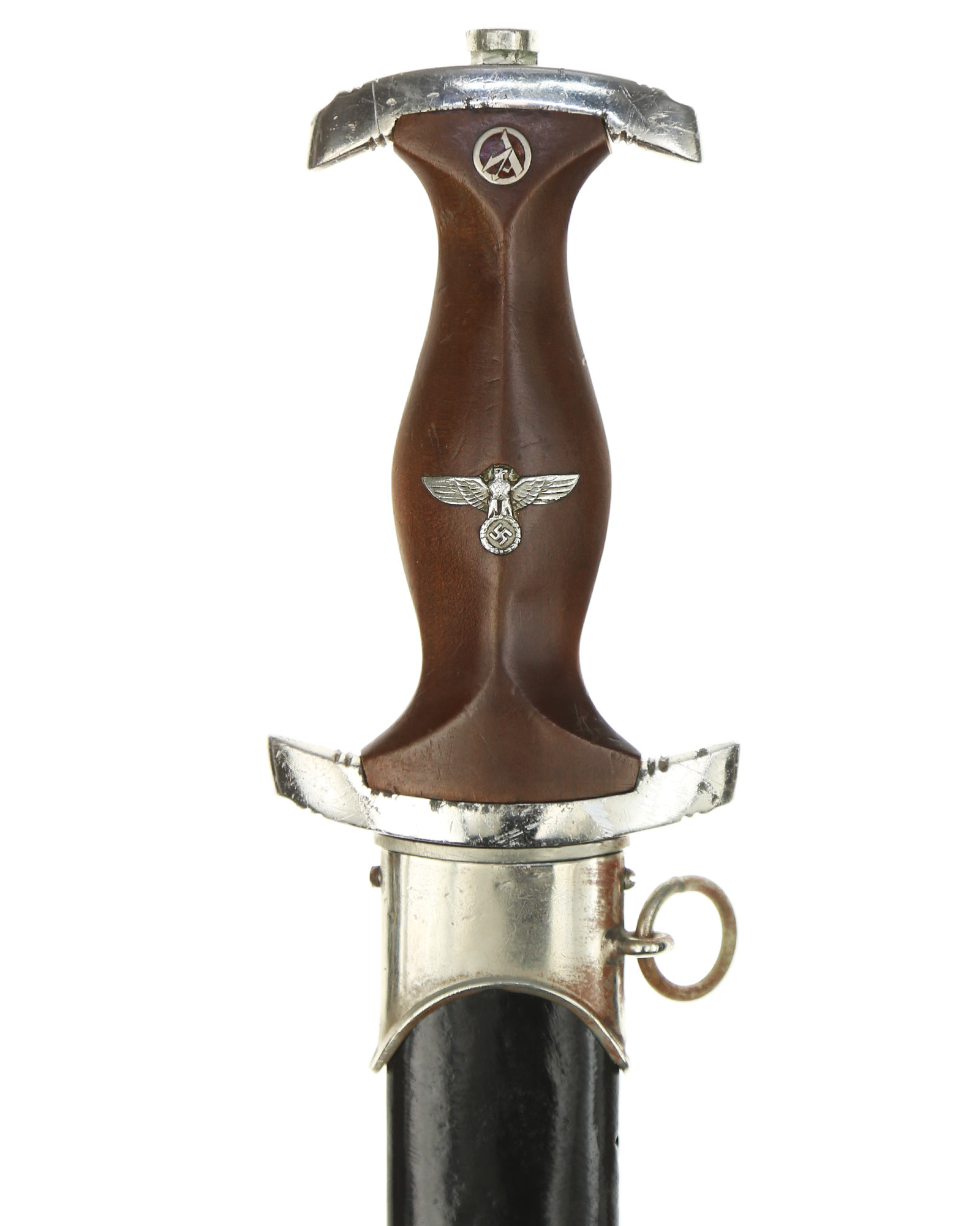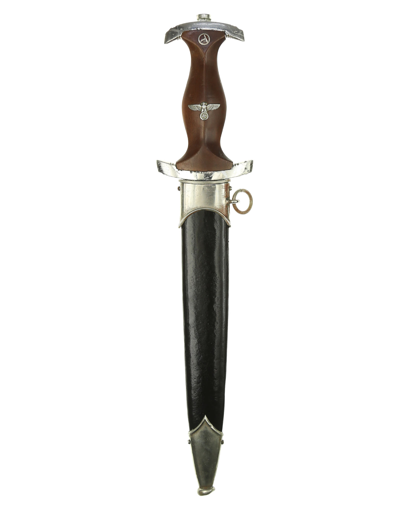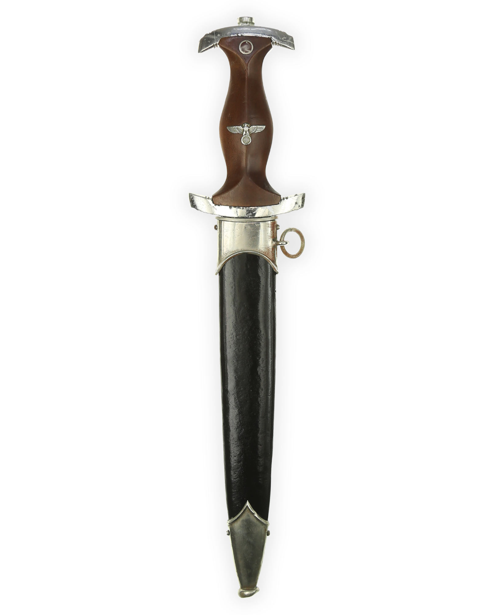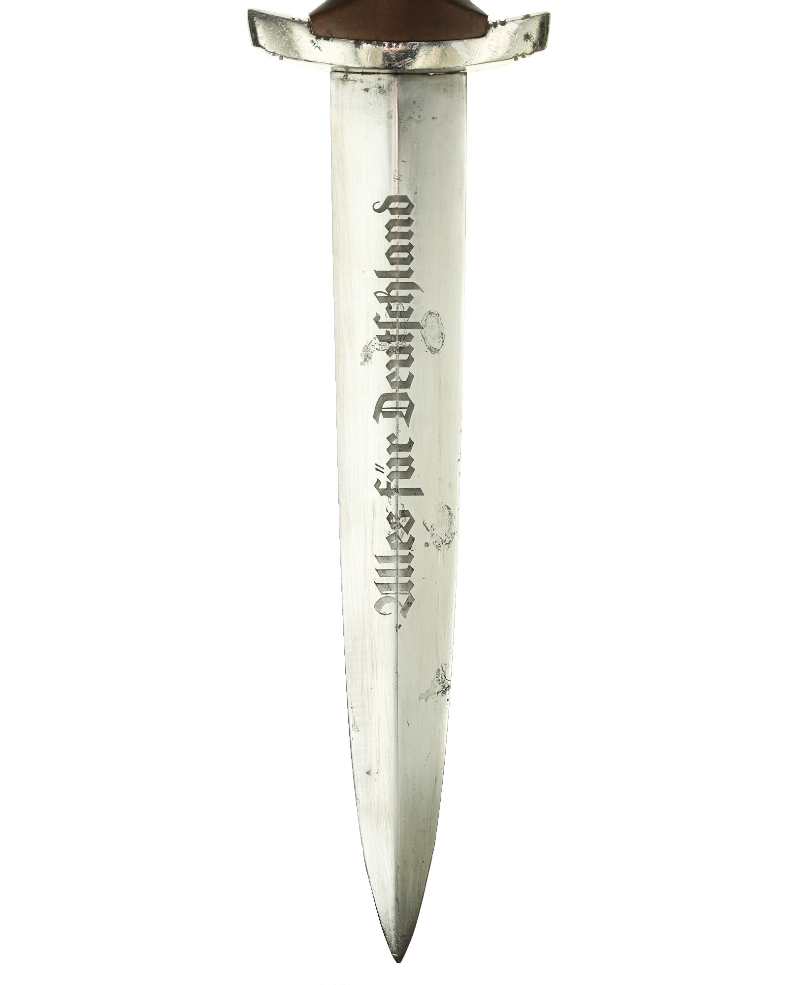 Клинок: Клинок классический кинжального типа, стальной, прямой, двулезвийный, с выраженным центральным ребром. На лицевой стороне нанесен травлением девиз SА «Alles für Deutschland» «Всё для Германии», на оборотной стороне у основания стоит совмещенное клеймо производителя Carl Eickhorn Solingen с кодом RZM M7/66.