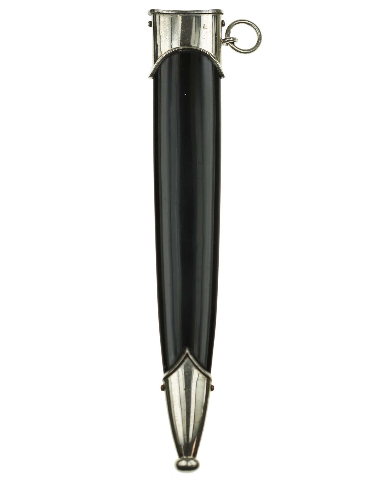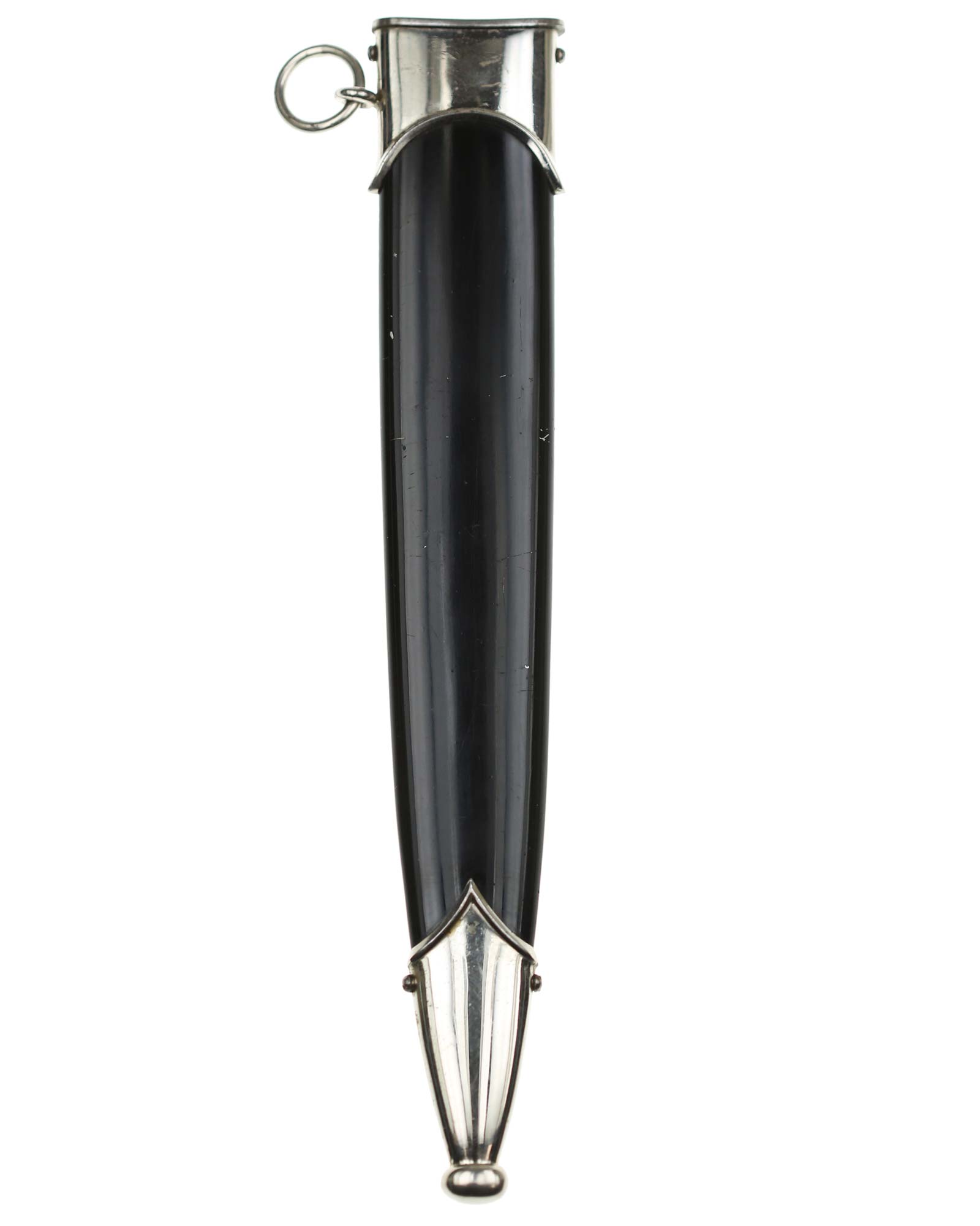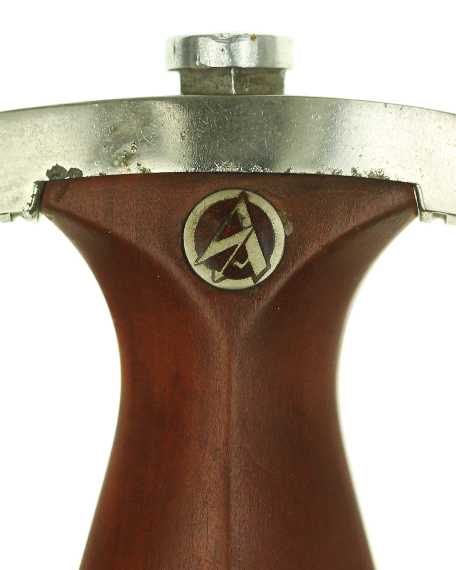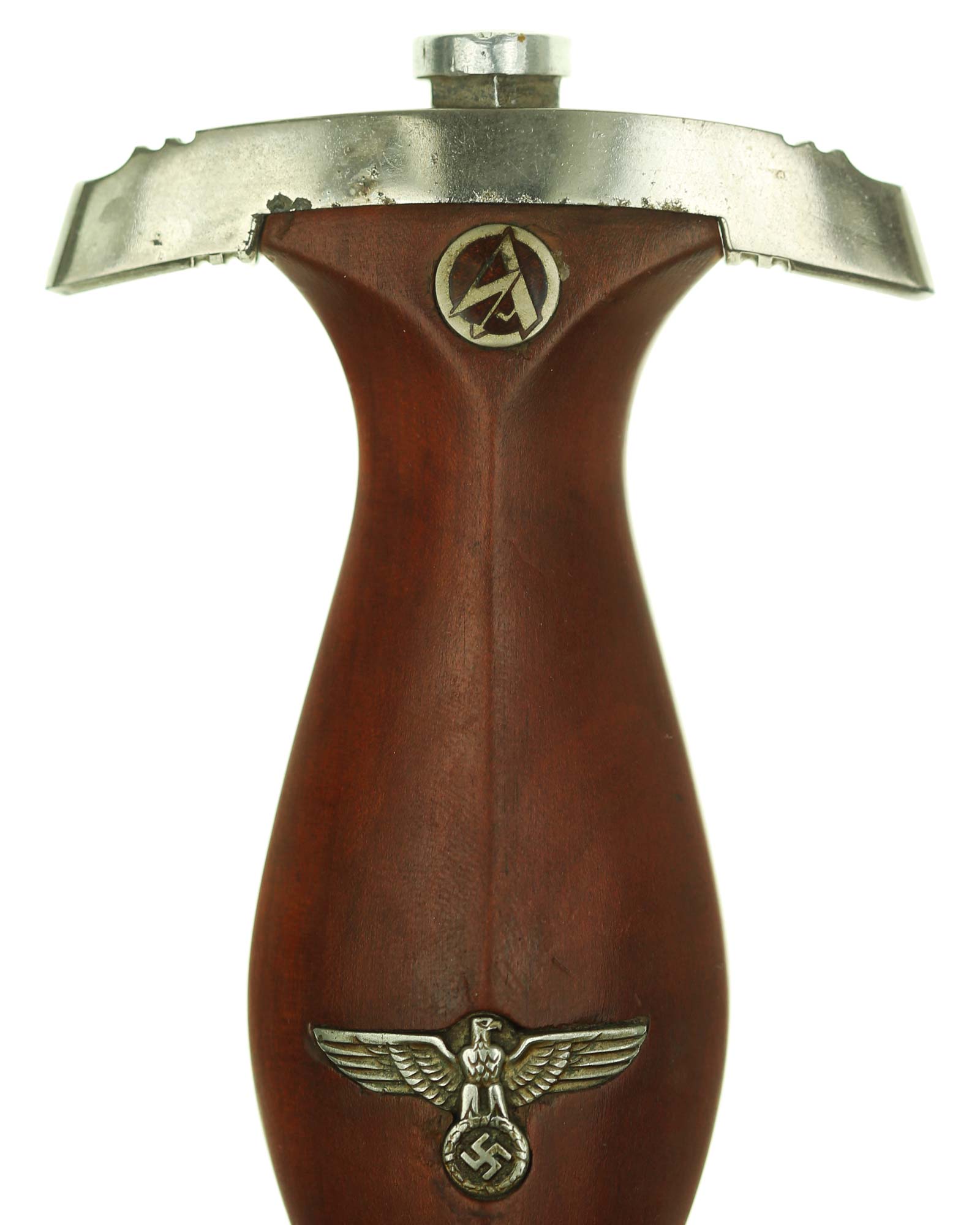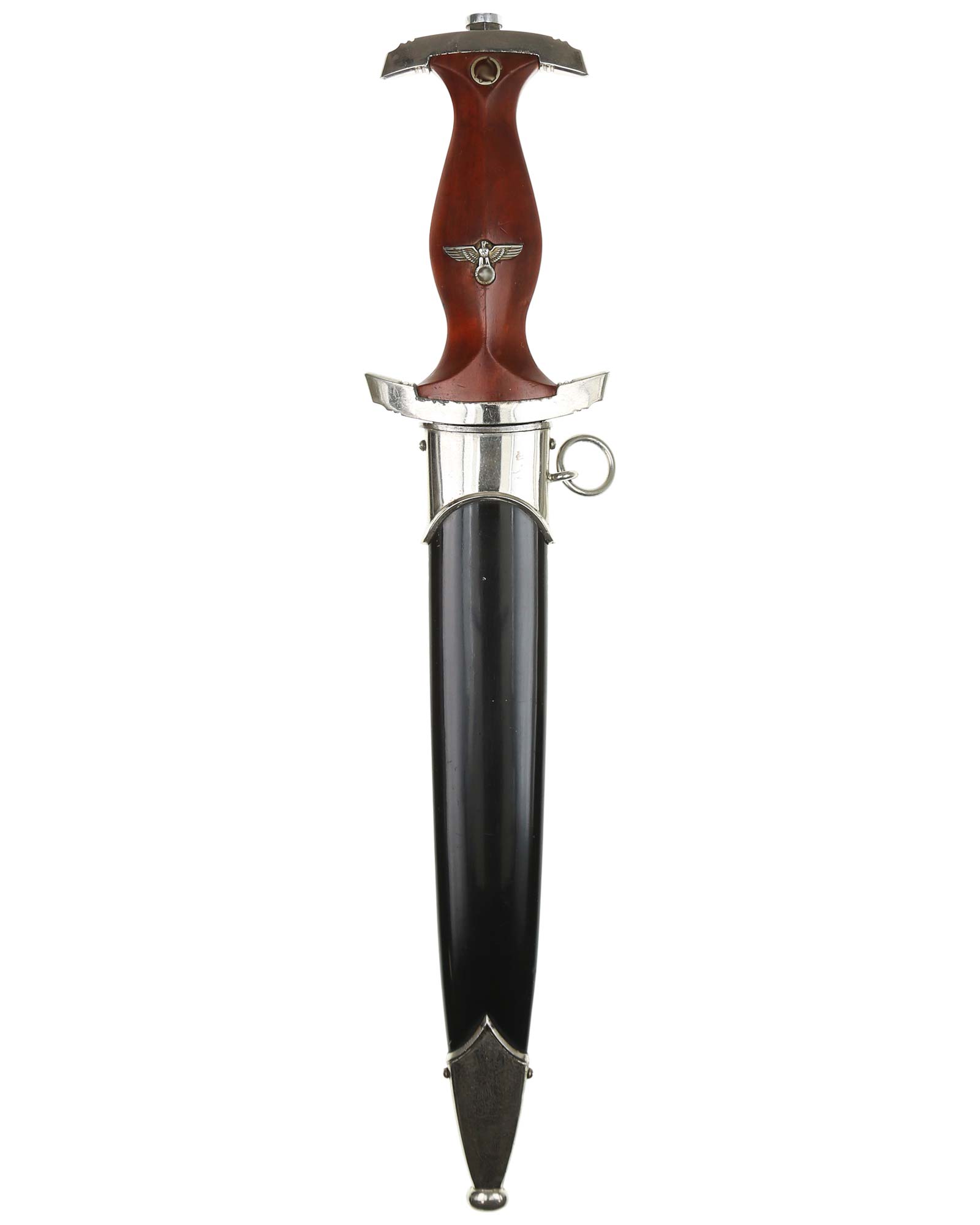 Клинок: Клинок классический кинжального типа, стальной, прямой, двулезвийный, с выраженным центральным ребром. На лицевой стороне нанесен травлением девиз SА «Alles für Deutschland» «Всё для Германии», на оборотной стороне у основания стоит совмещенное клеймо производителя Е.Ф. Хёрстер Золинген с кодом RZM M7/36 (E.&F. Hörster Solingen).