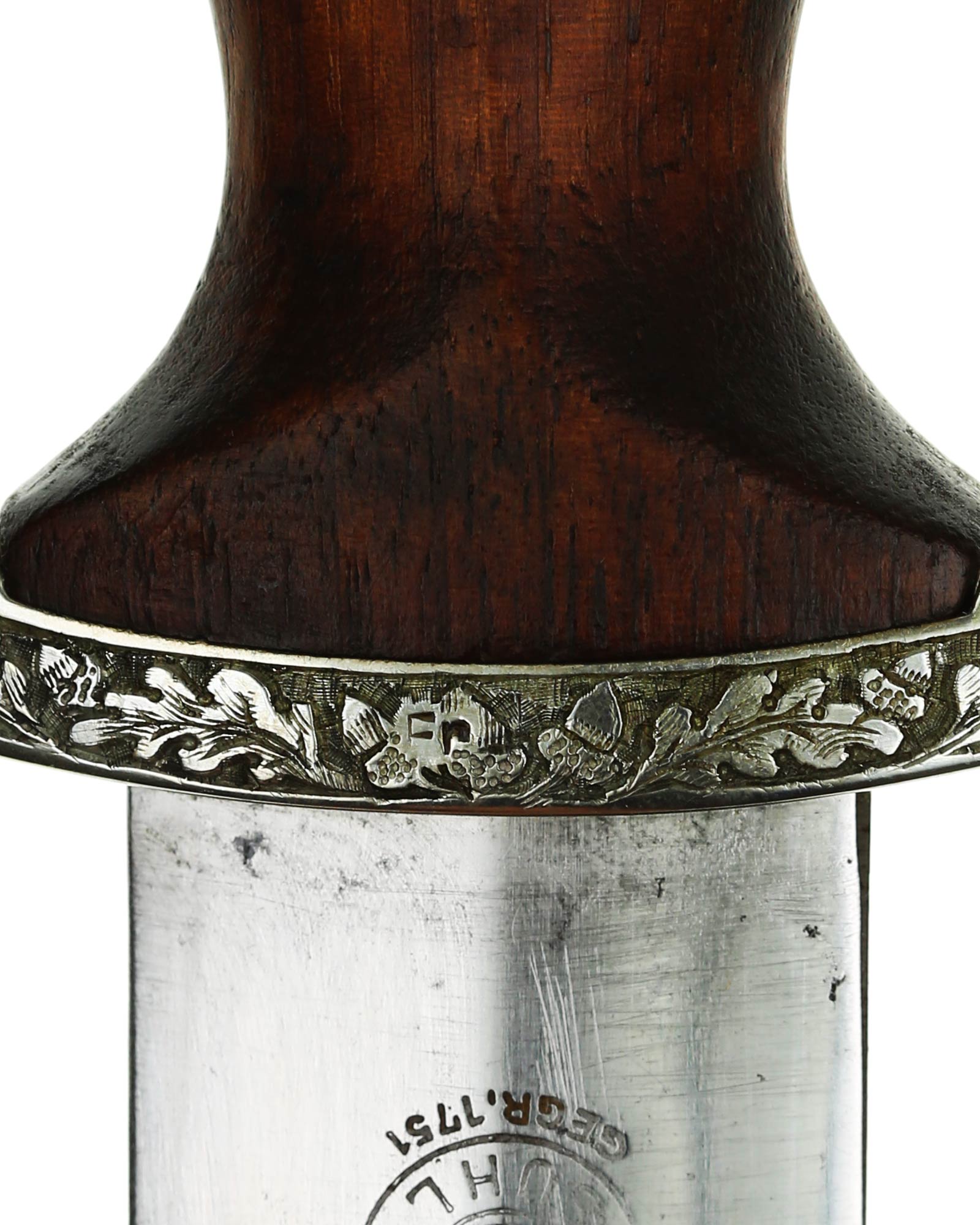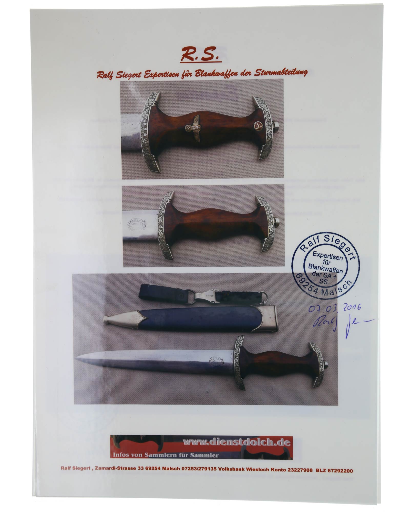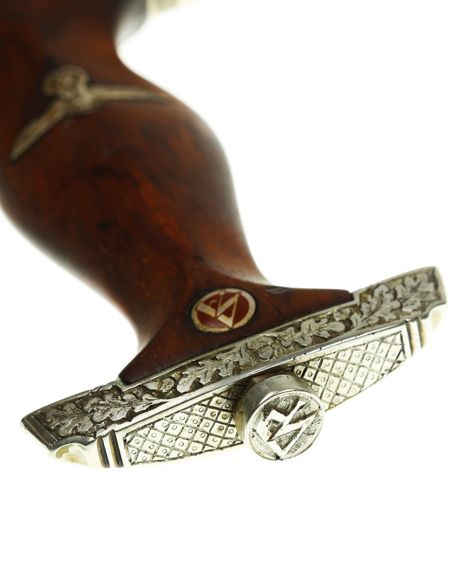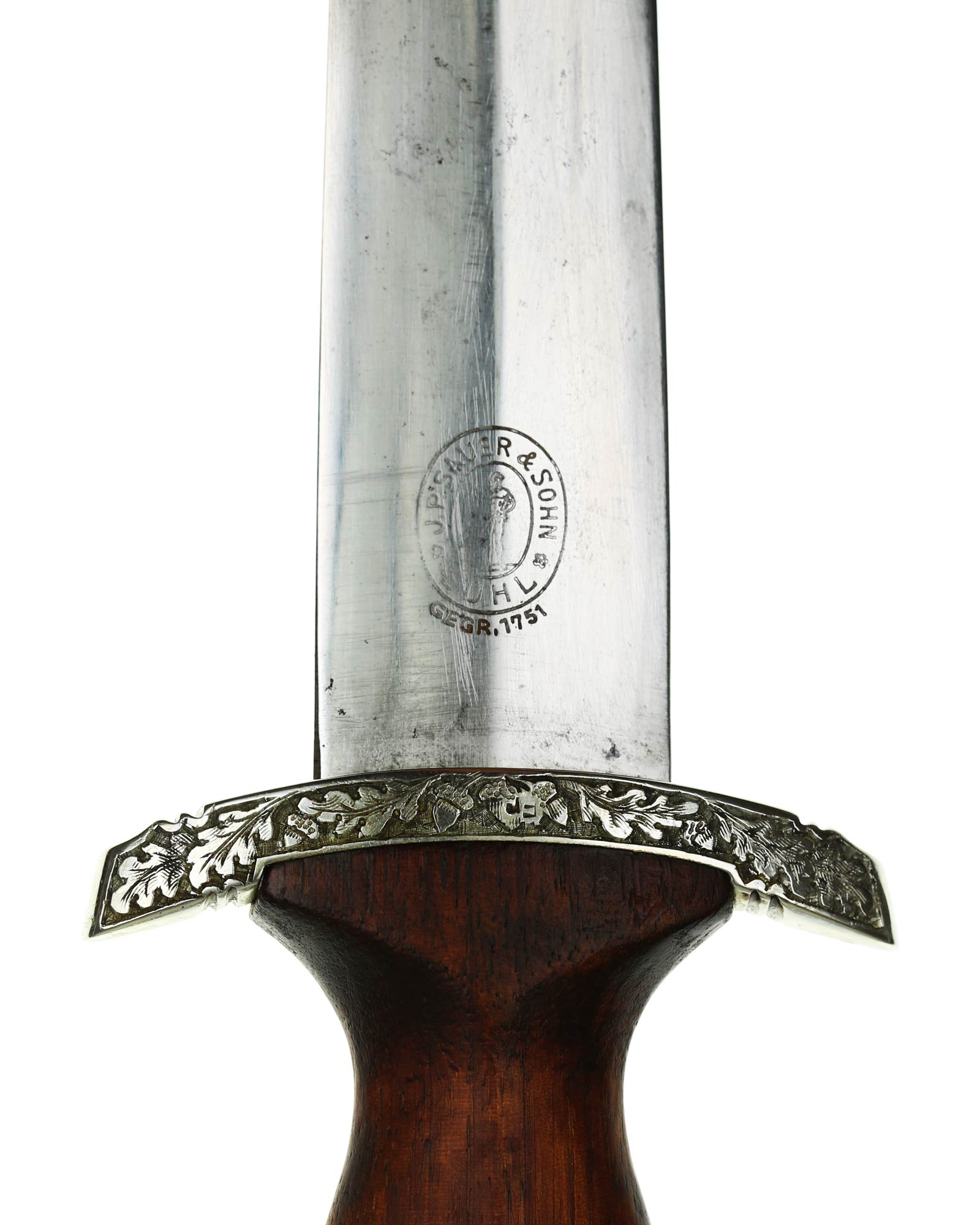 Клинок: Клинок стальной, прямой, двулезвийный, 4-гранный в сечении, без долов. На клинке готическим шрифтом нанесена надпись «Alles für Deutchland» (Всё для Германии). На пяте клинка с обратной стороны имеется клеймо фирмы производителя - Зауэр & сын Зуль (J. P. Sauer & Sohn Suhl).