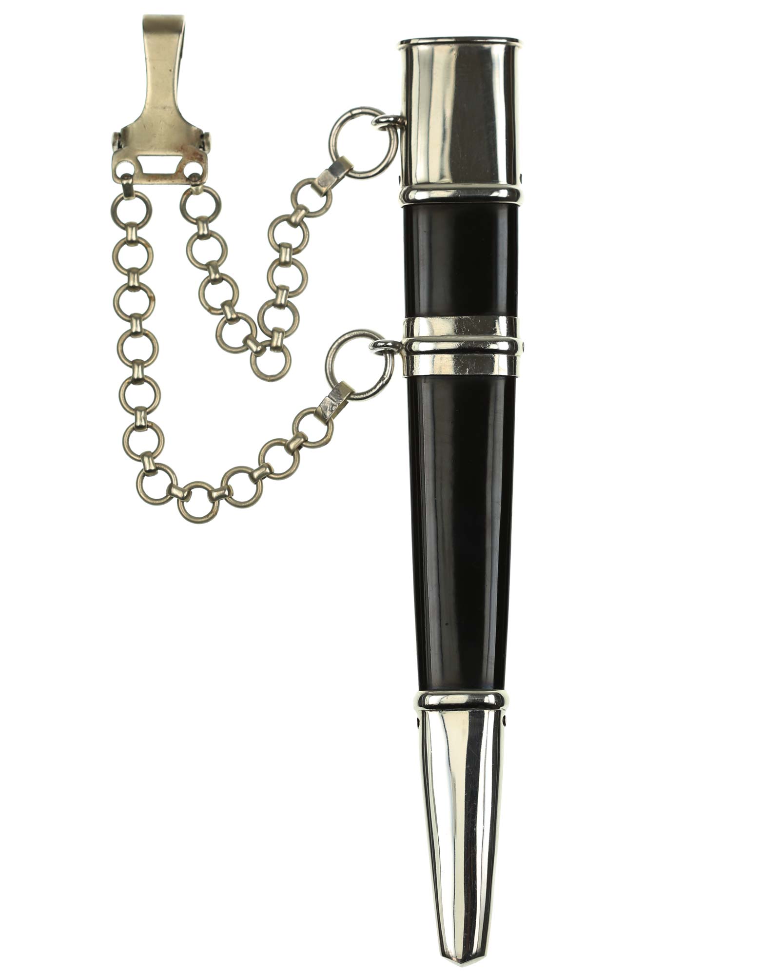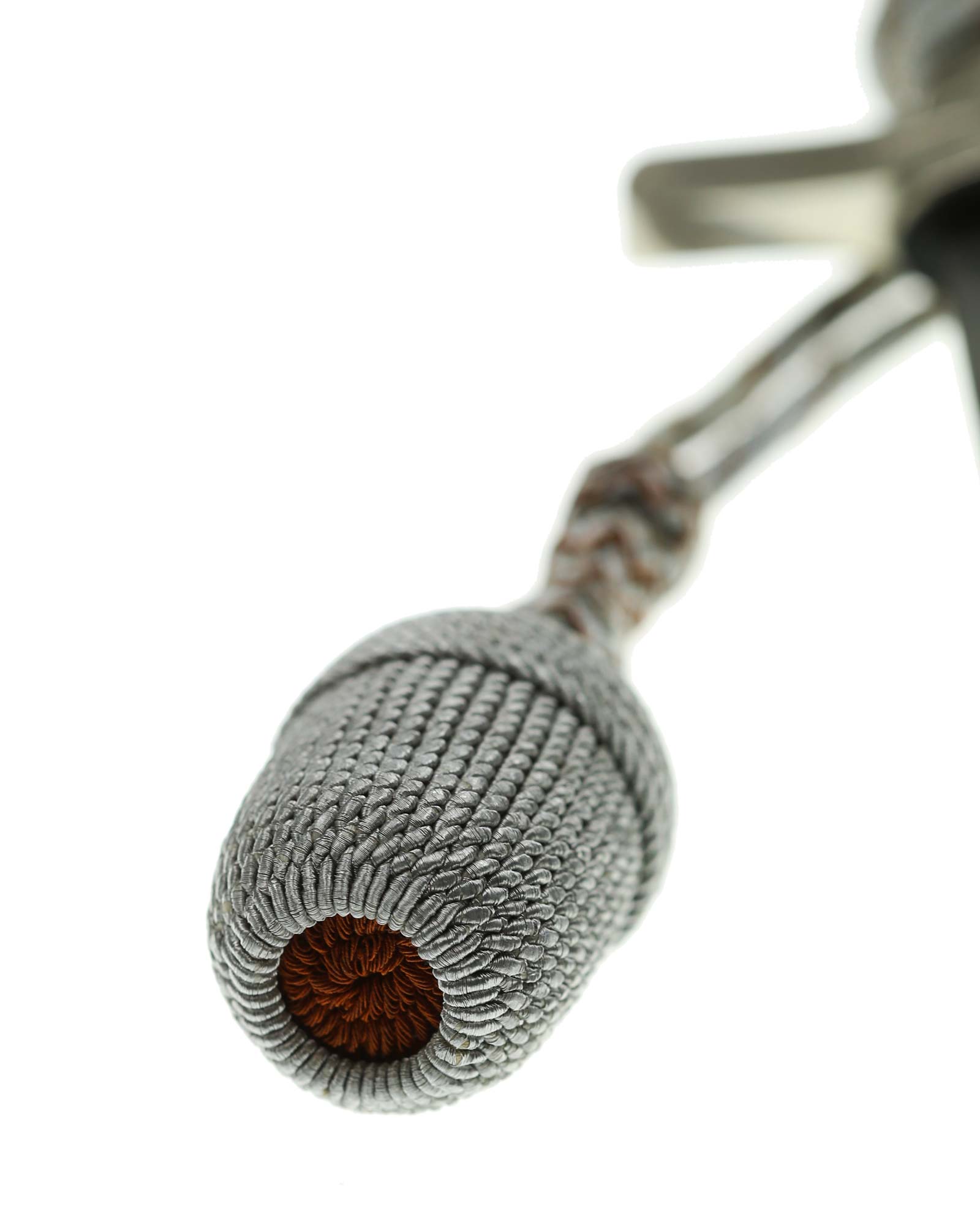 Ножны: Ножны в оригинальном черном красочном покрытии. Обоймицы ножн оснащены кольцами, к которым крепится подвес. Подвес выполнен в виде цепочки, состоящей из двух частей: верхней - из девяти колец и нижней из двенадцати колец. Цепочки крепятся к карабину с клеймом "DRGM" на внутренней стороне.