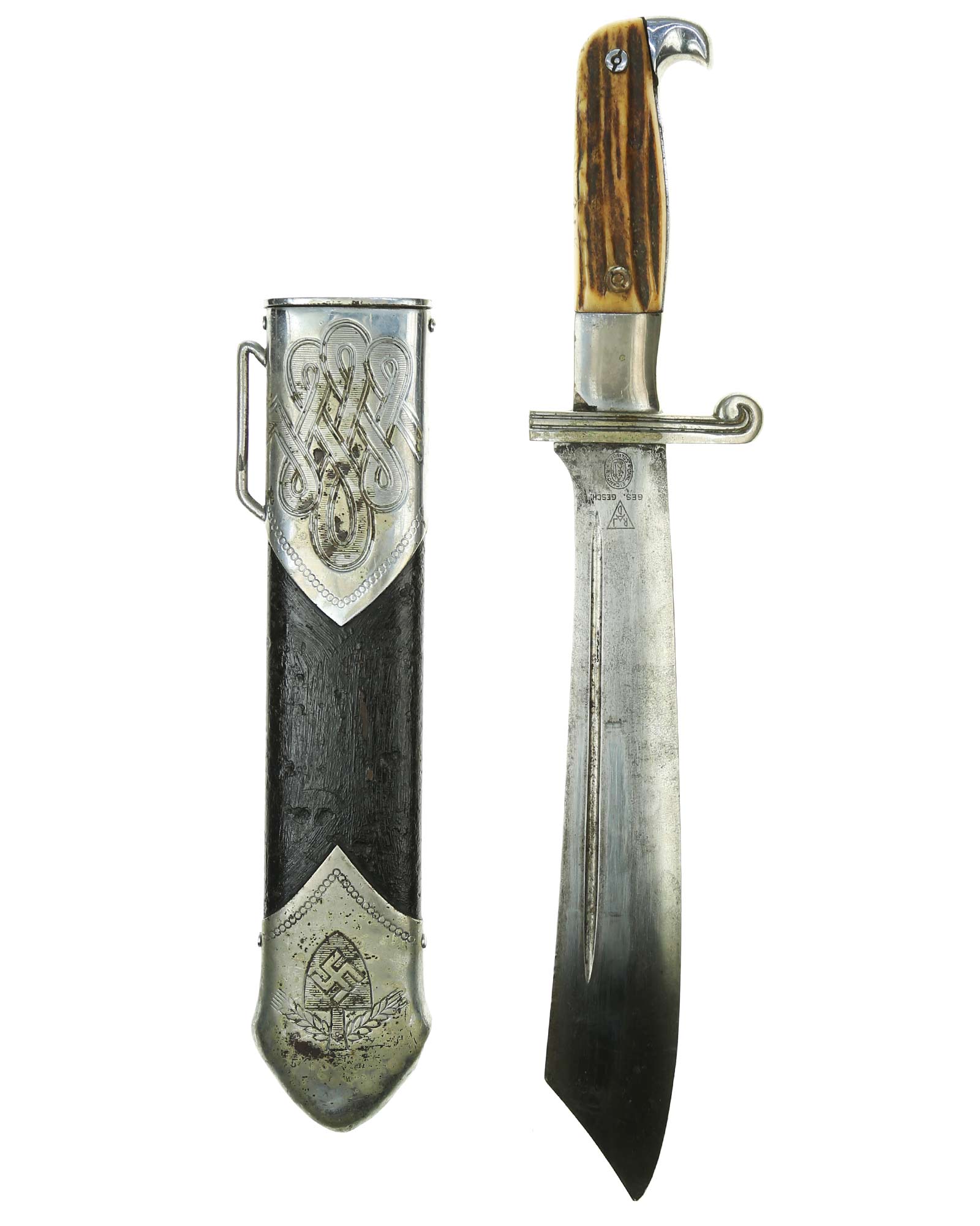 Тесак офицерского состава трудовой службы RAD [Reichsarbeitsdienst] образца 1934 года с клеймом Carl Eickhorn Solingen (Айкхорн Золинген). Общая длина: 39,7 мм.