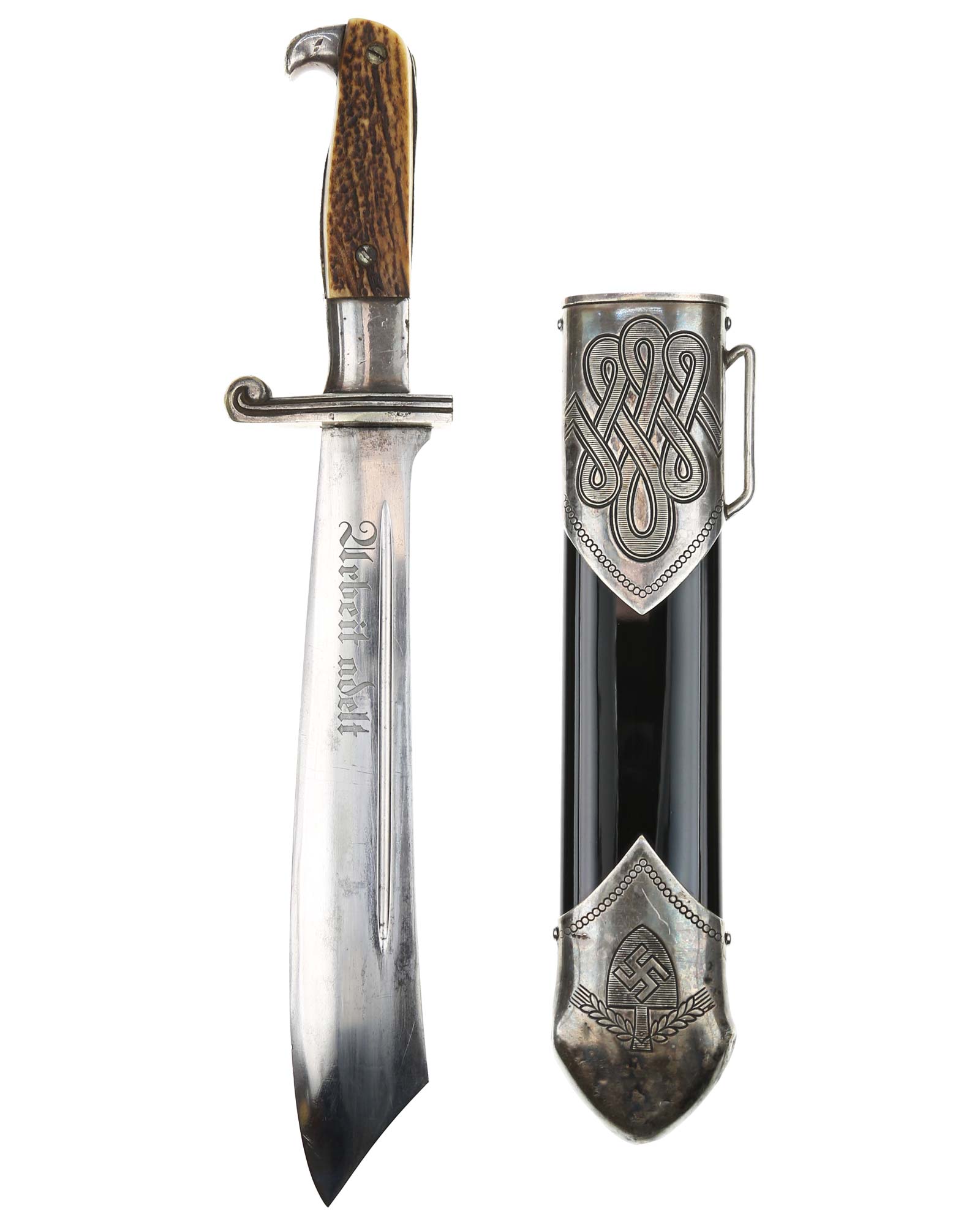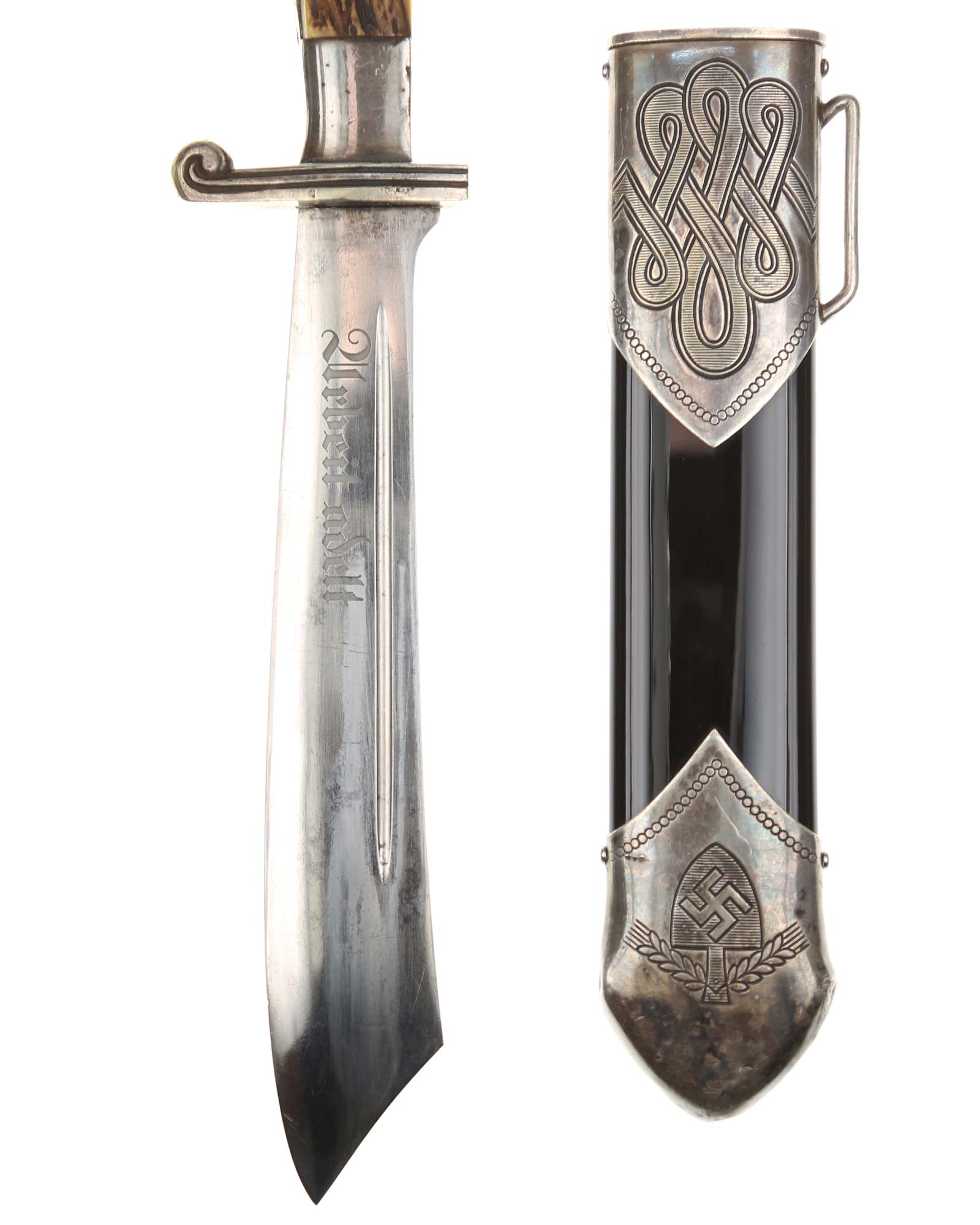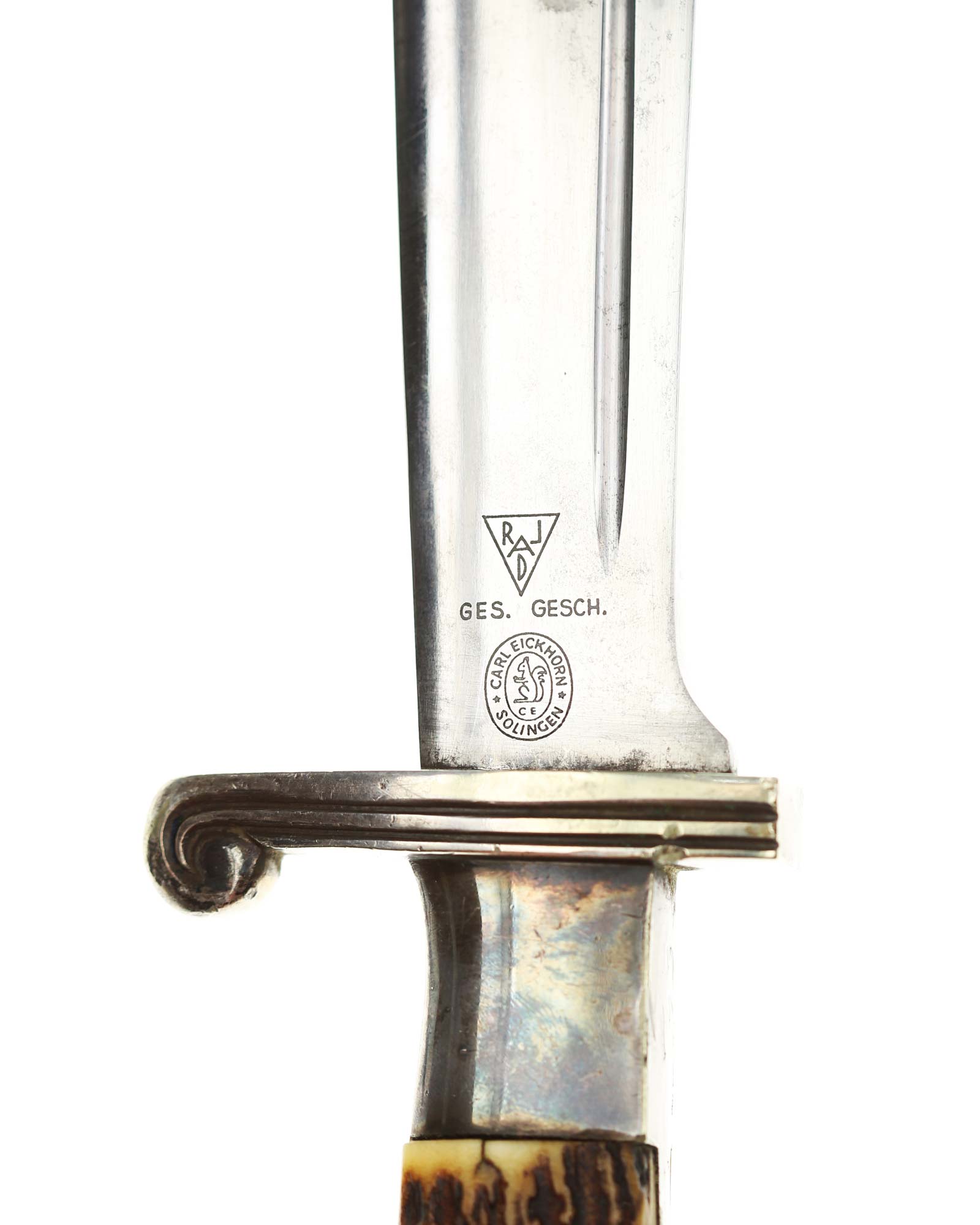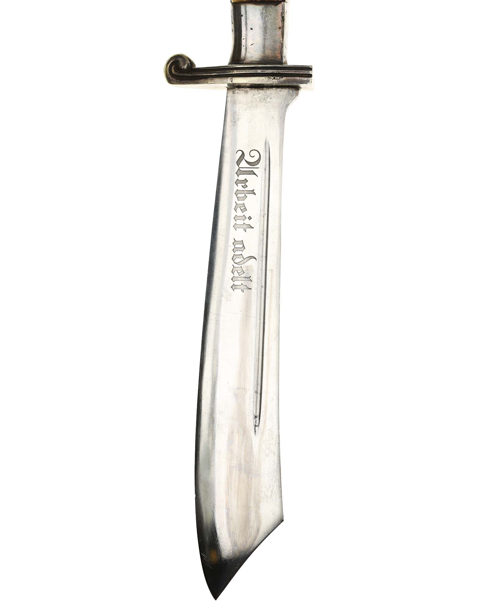 Тесак офицерского состава трудовой службы RAD [Reichsarbeitsdienst] образца 1934 года с клеймом Carl Eickhorn Solingen (Карл Айкхорн, Золинген). Общая длина: 39,5 мм.