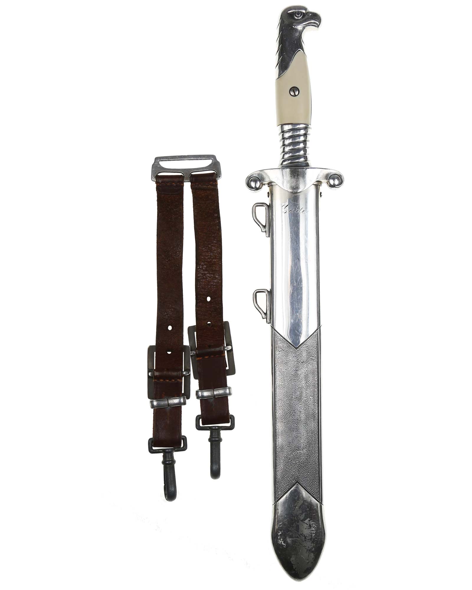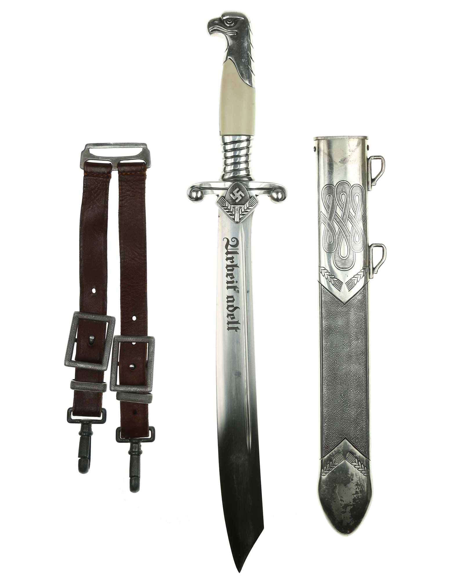 Тесак офицерского состава трудовой службы RAD [Reichsarbeitsdienst] образца 1937 года с клеймом Carl Eickhorn, Solingen (Карл Айкхорн, Золинген). Общая длина: 40,0 см.