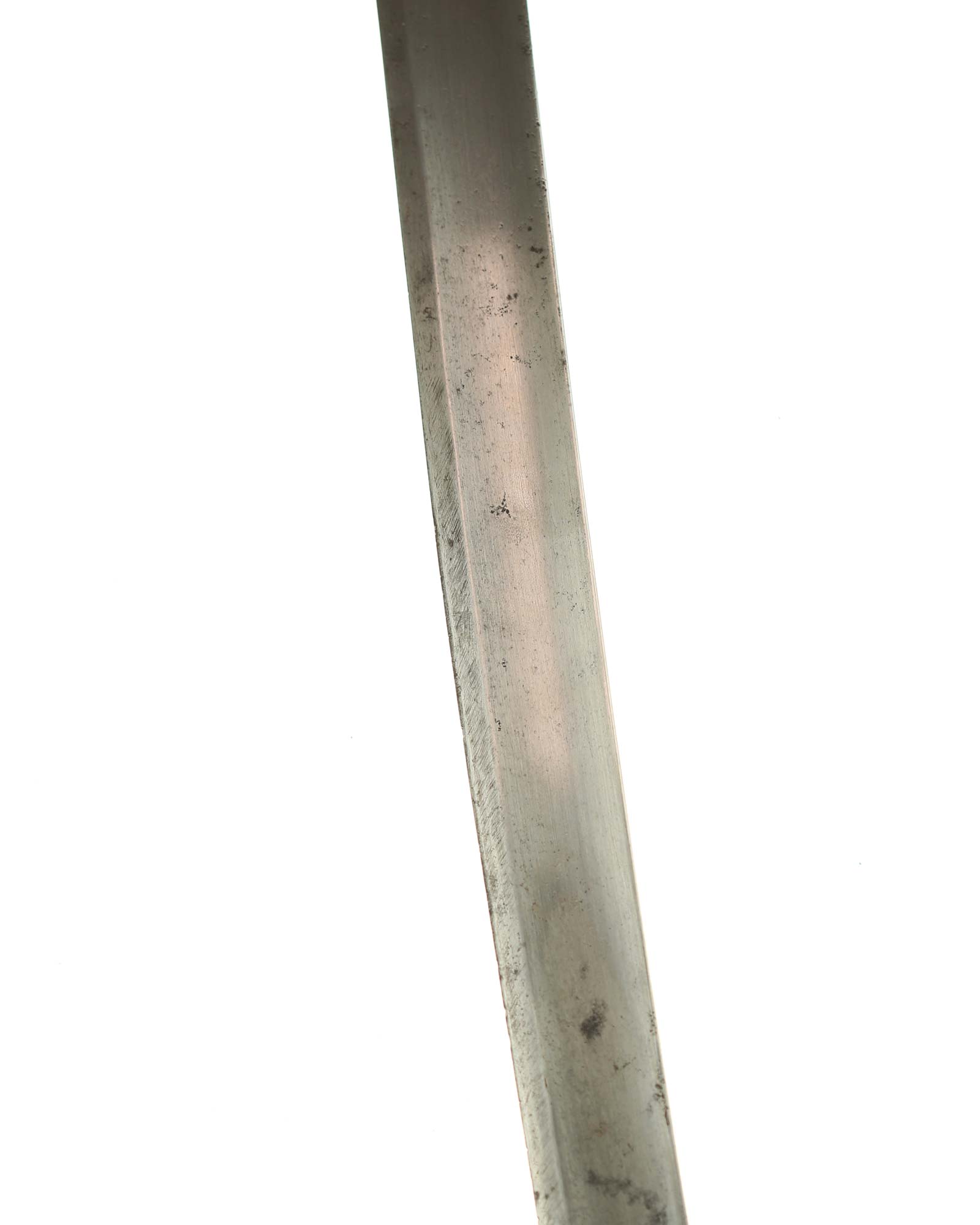 Клинок: Клинок стальной, незначительной кривизны, однолезвийный, с одним широким долом с обеих сторон и двумя узкими долами у обуха. Боевой конец двулезвийный.