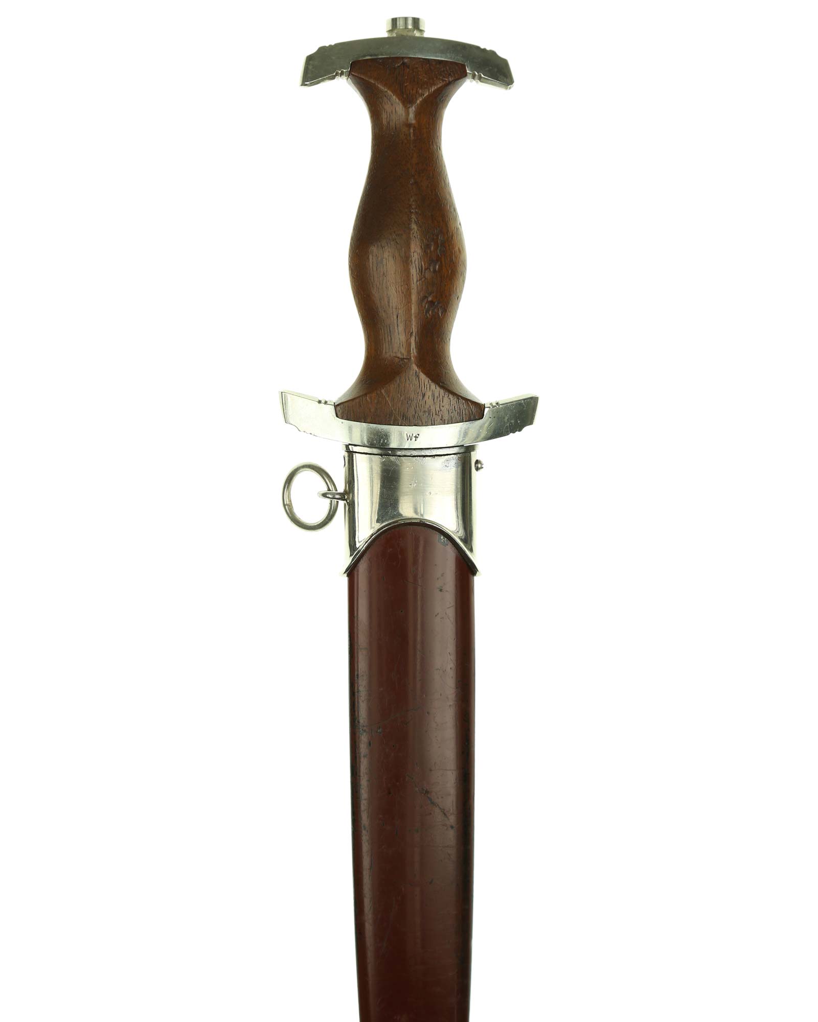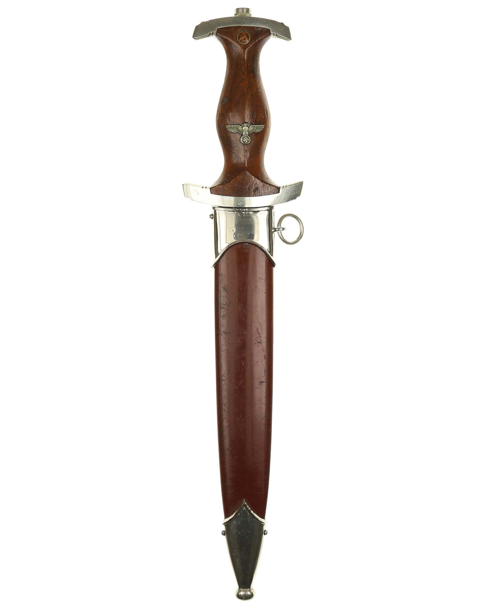 Ранний кинжал штурмовых отрядов СА образца 1933 года. Ранний период производства, 1933-1935 годы. Производитель фирма Адольф Фёлькер Шмалькальден (Adolf Völker Schmalkalden). Длина в ножнах 37,4 см.