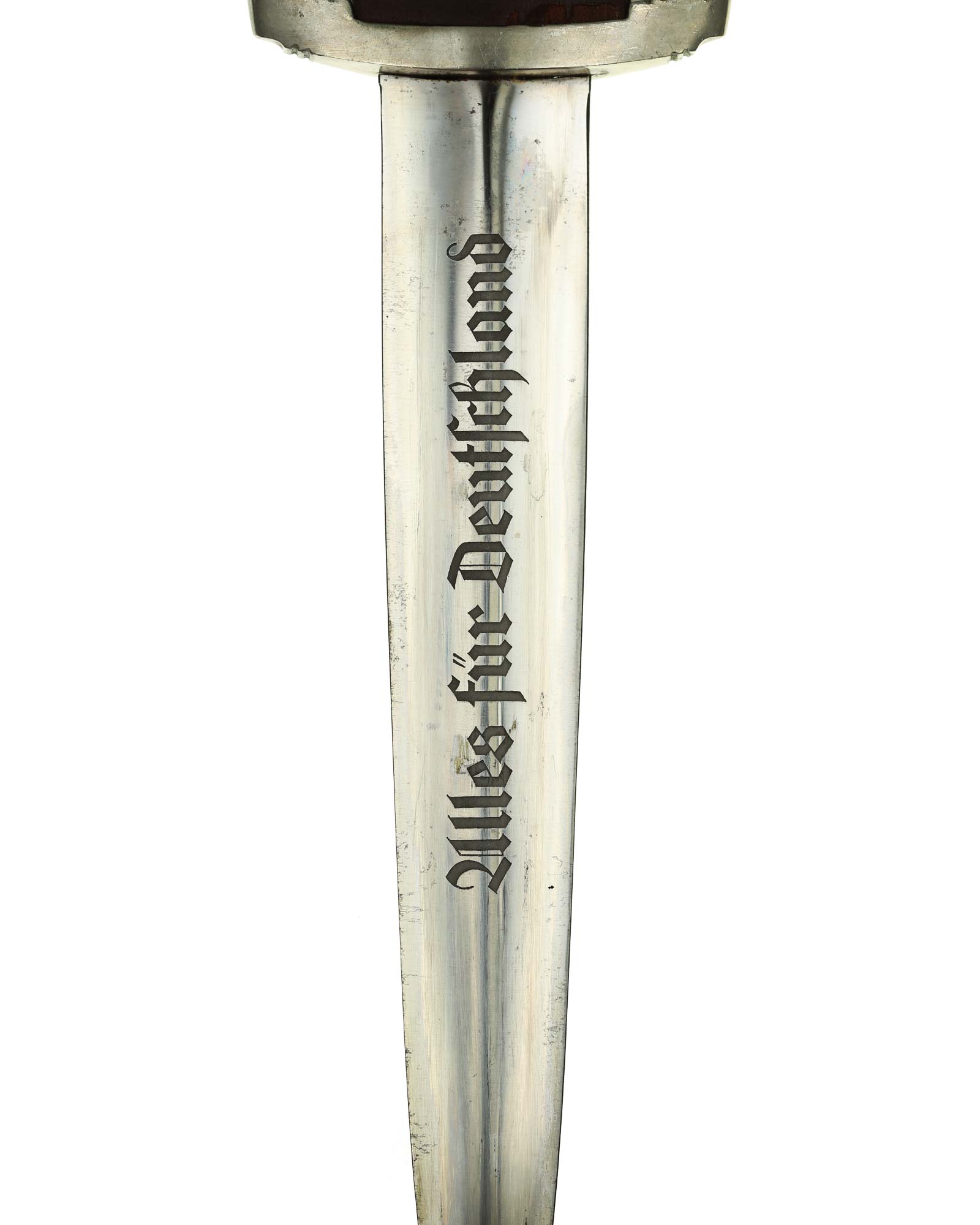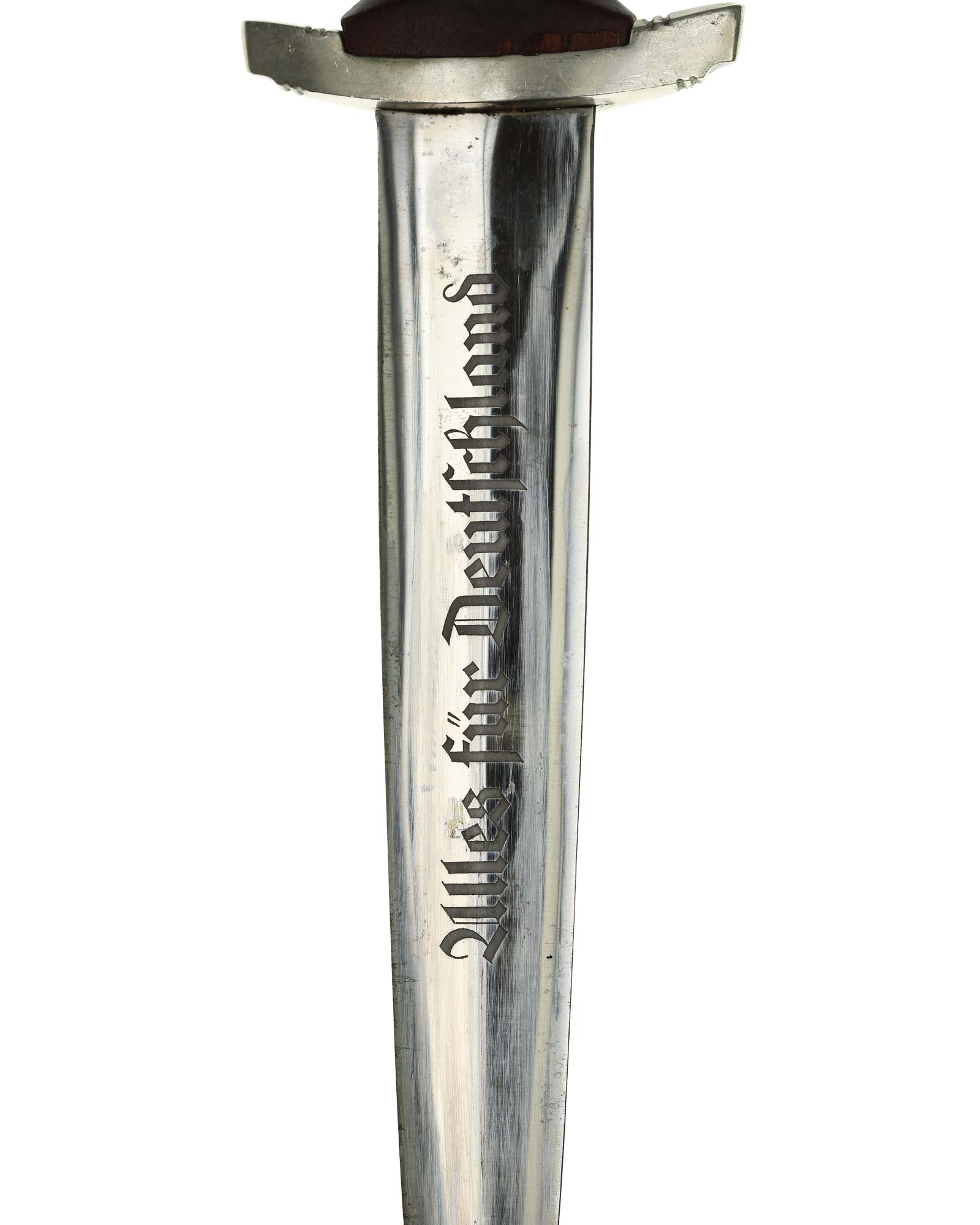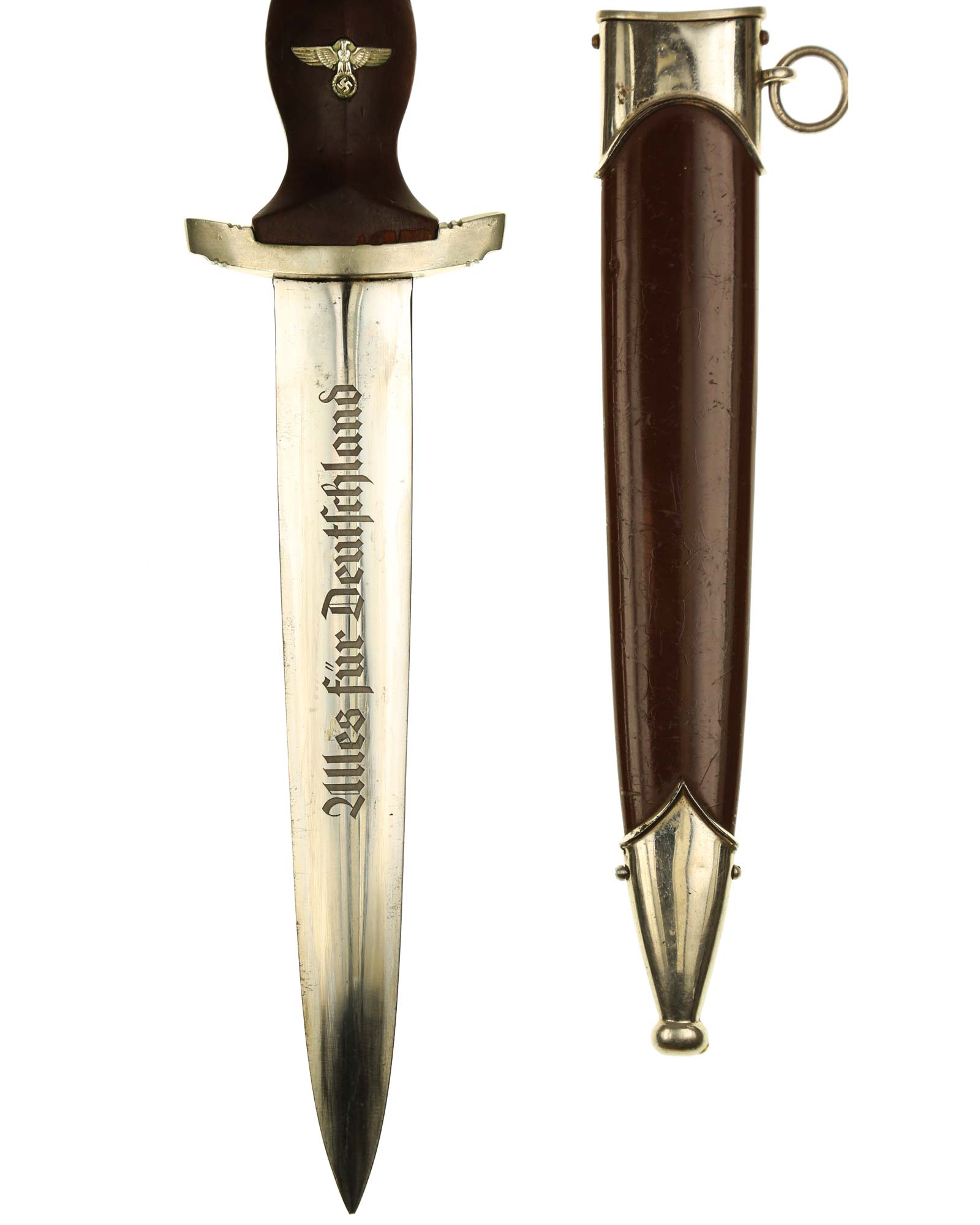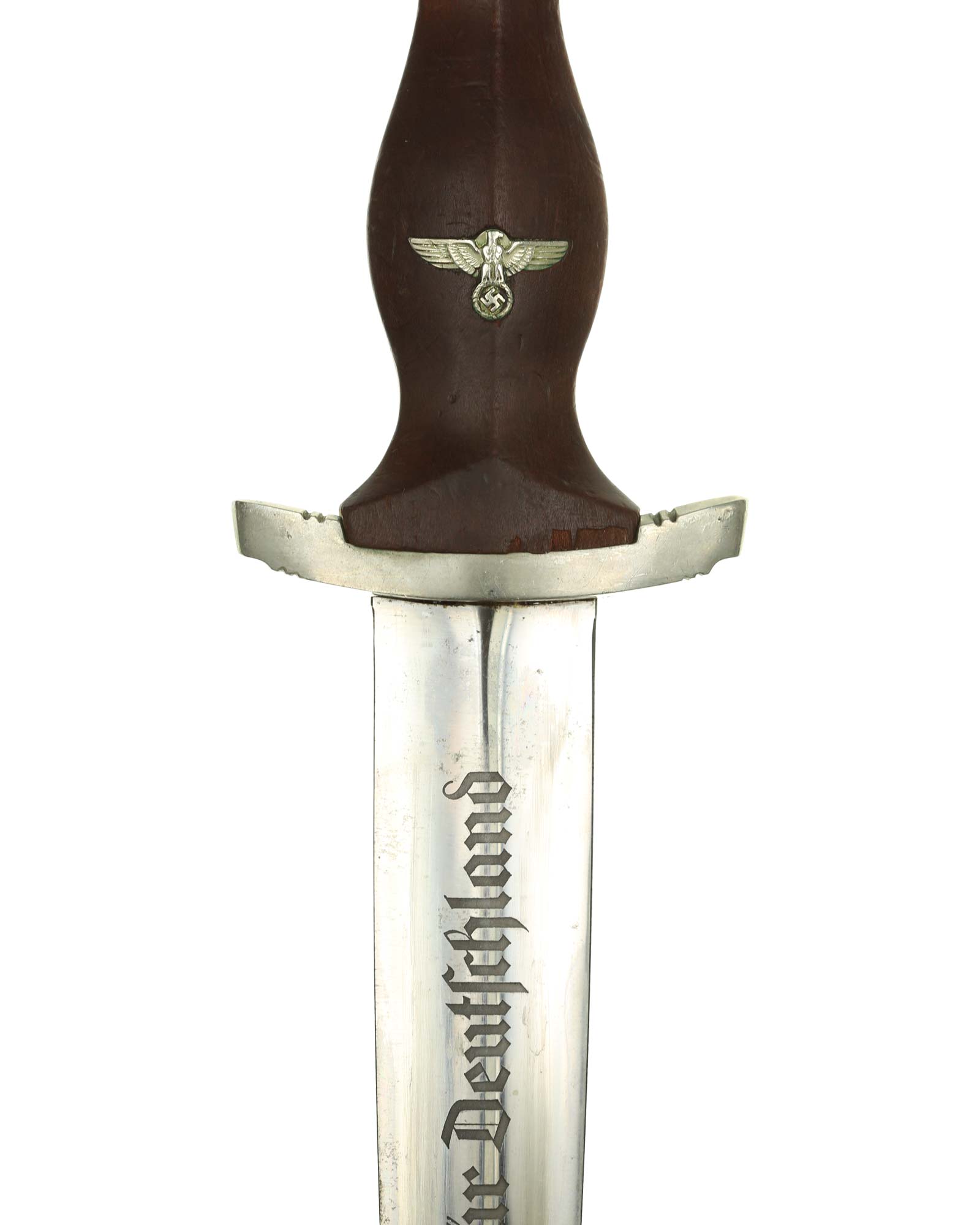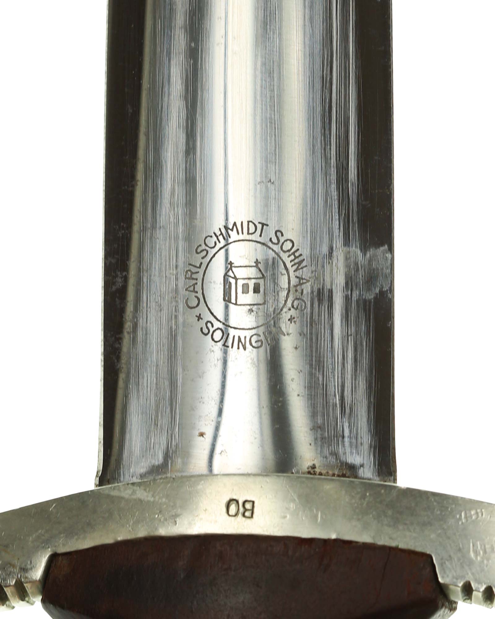 Клинок: Клинок кинжала прямой, стальной, двулезвийный, кинжального типа, с выраженным центральным ребром. На одной стороне клинка методом травления нанесен девиз СА «Всё для Германии» (Alles für Deutchland). Клинок на оборотной стороне у основания стоит клеймо производителя Carl Schmidt & Sohn Solingen (Карл Шмидт & сын, Золинген).