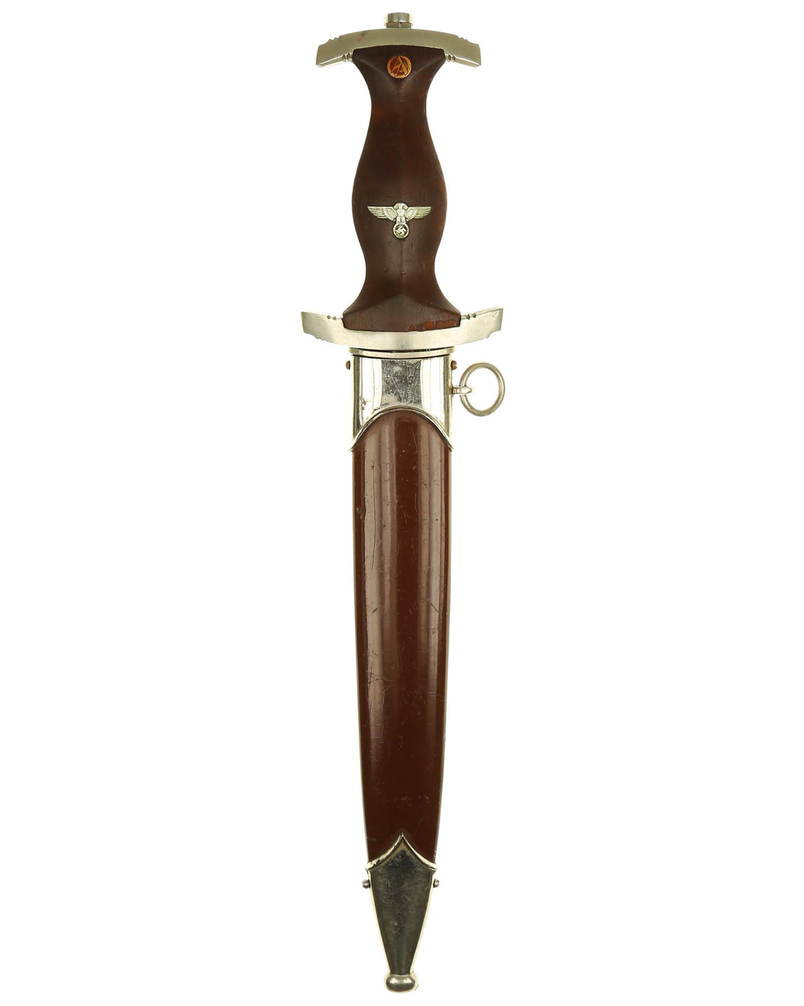 Ранний кинжал штурмовых отрядов СА образца 1933 года. Ранний период производства, 1933-1935 годы. Производитель фирма Карл Шмидт & сын, Золинген (Carl Schmidt & Sohn Solingen). Длина в ножнах 37,4 см.