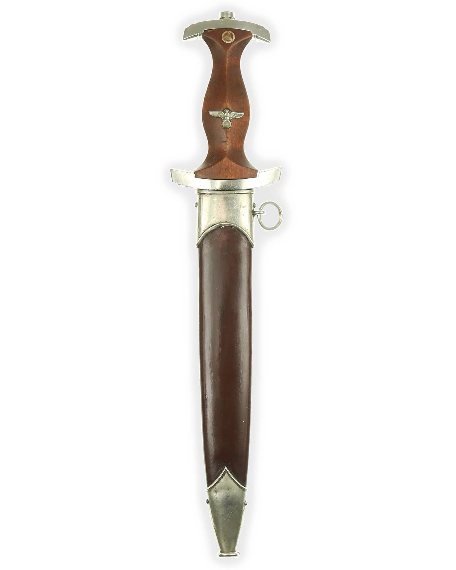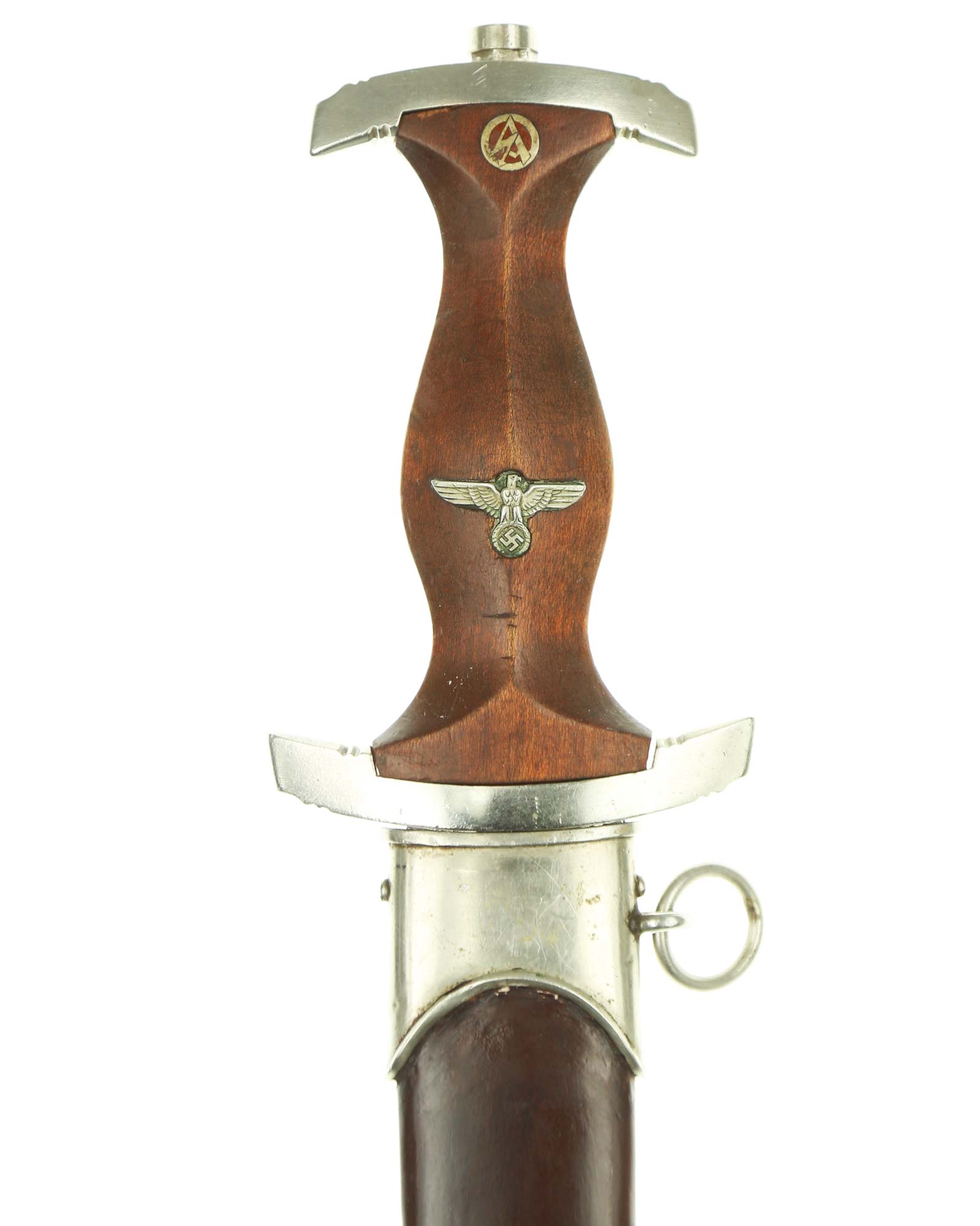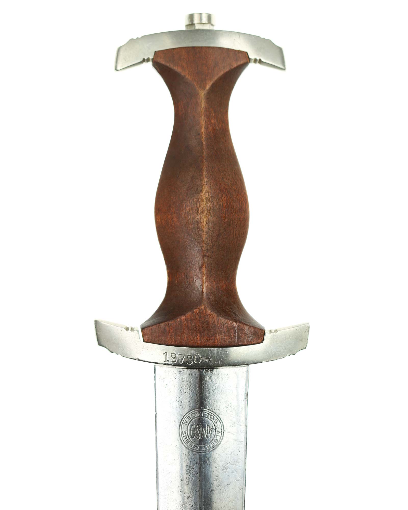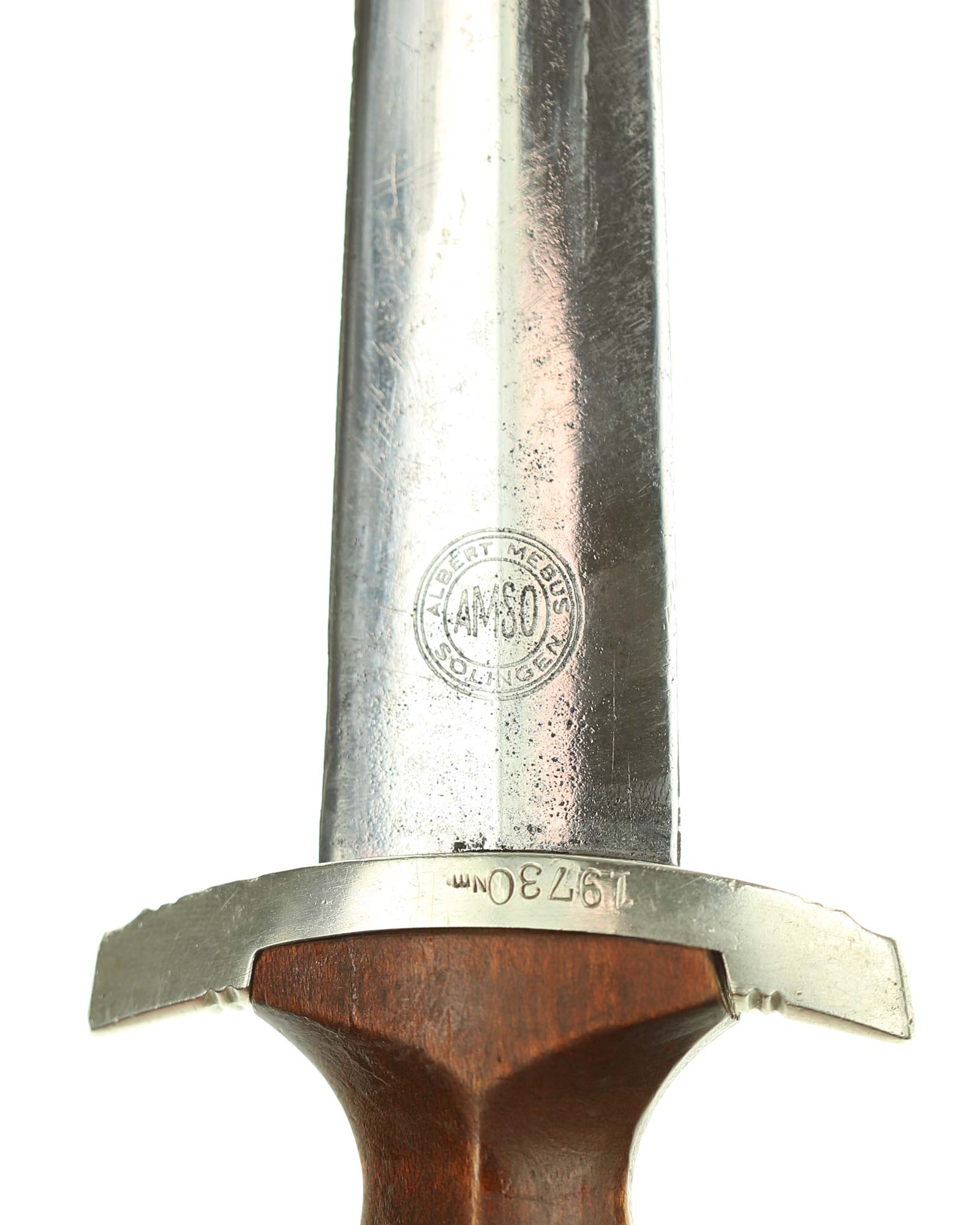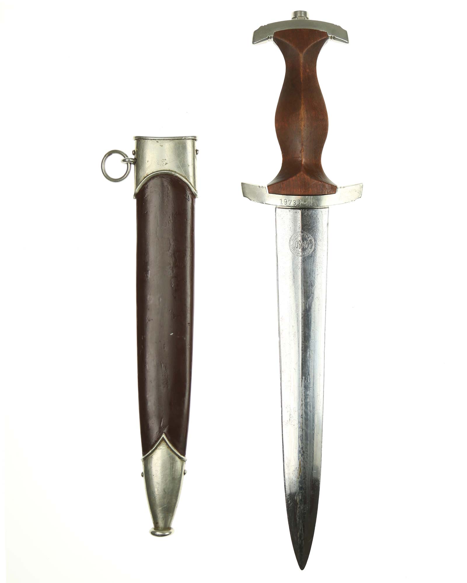 Клинок: Клинок кинжала прямой, стальной, двулезвийный, кинжального типа, с выраженным центральным ребром. На одной стороне клинка методом травления нанесен девиз СА «Всё для Германии» (Alles für Deutchland). Клинок на оборотной стороне у основания стоит клеймо производителя Альберт Мебус Золинген (Albert Mebus Solingen).