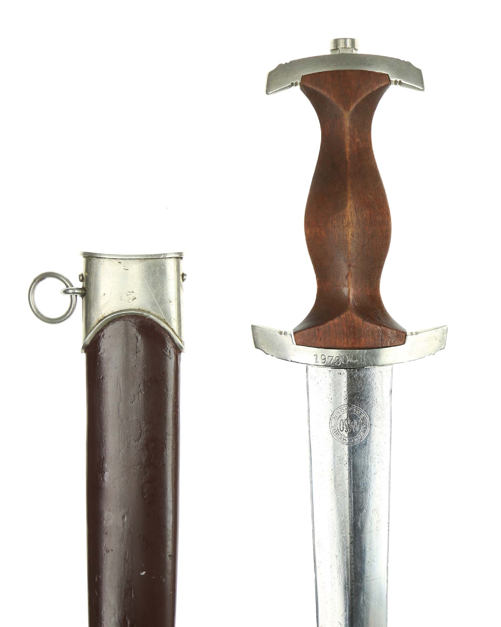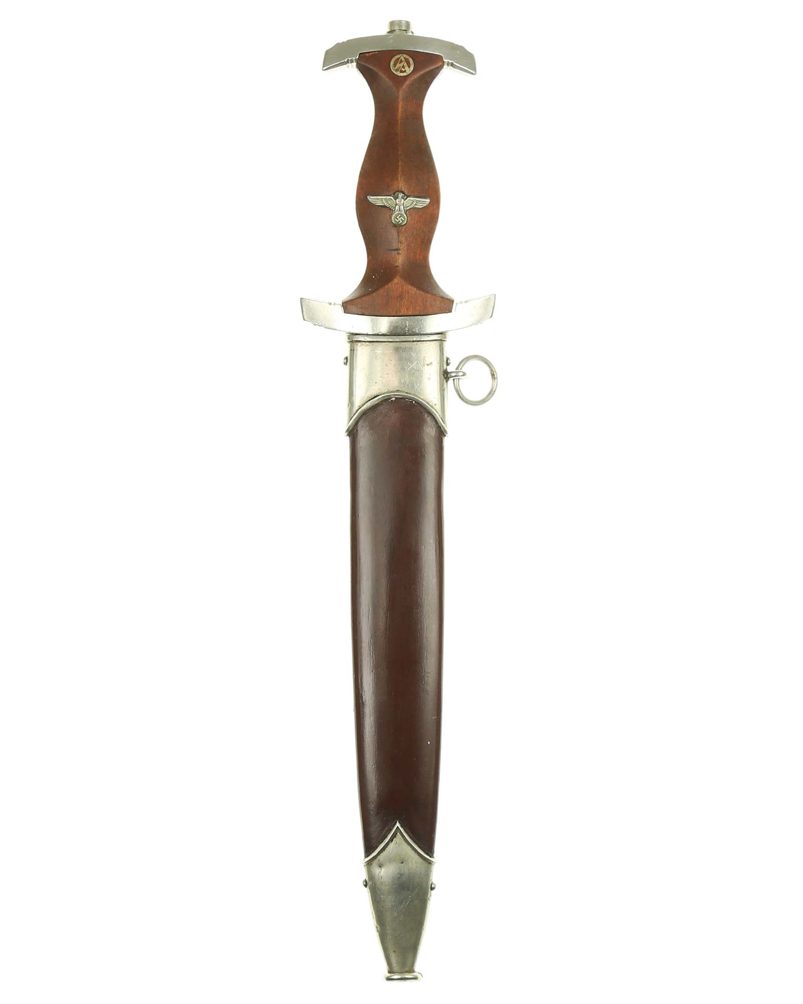 Ранний кинжал штурмовых отрядов СА образца 1933 года. Ранний период производства, 1933-1935 годы. Производитель фирма Albert Mebus (AMSO) Solingen (Альберт Мебус (АМЗО) Золинген). Длина в ножнах 37,2 см.