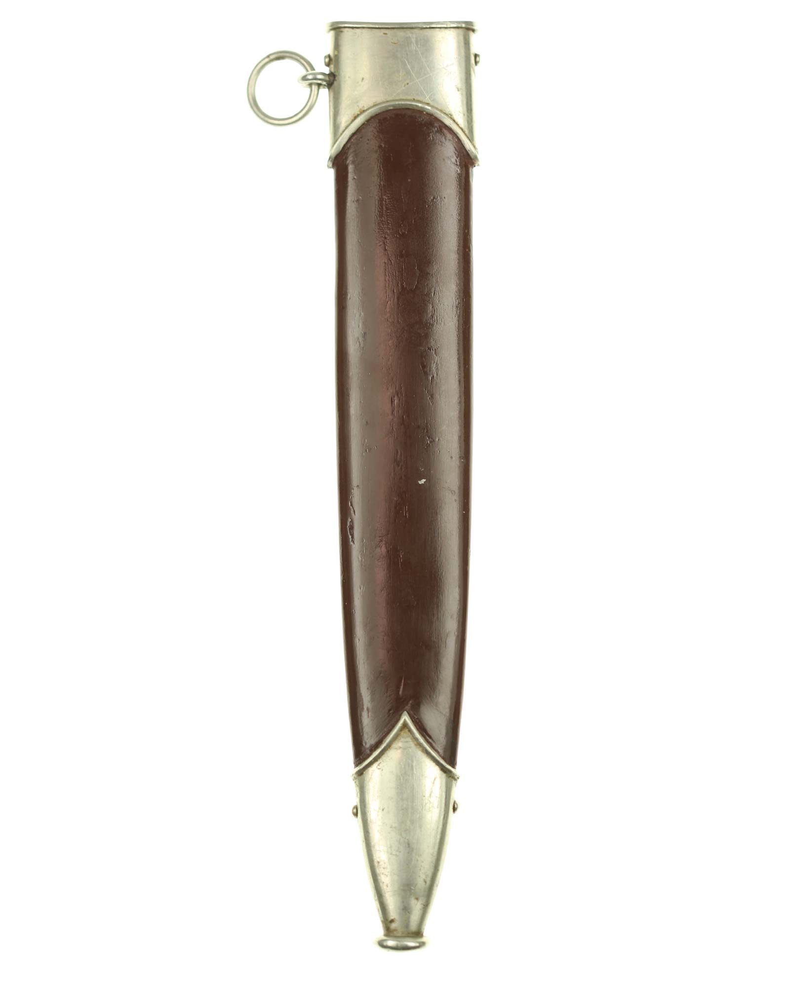 Ножны: Ножны стальные, окрашенные в коричневый цвет, с накладными наконечником и устьем с кольцом. Наконечник и устье ножен крепятся при помощи двух винтов. Прибор ножен изготовлен из белого металла и состоит из устья с гайкой и кольцом для подвешивания га ремень и устья с шариком.