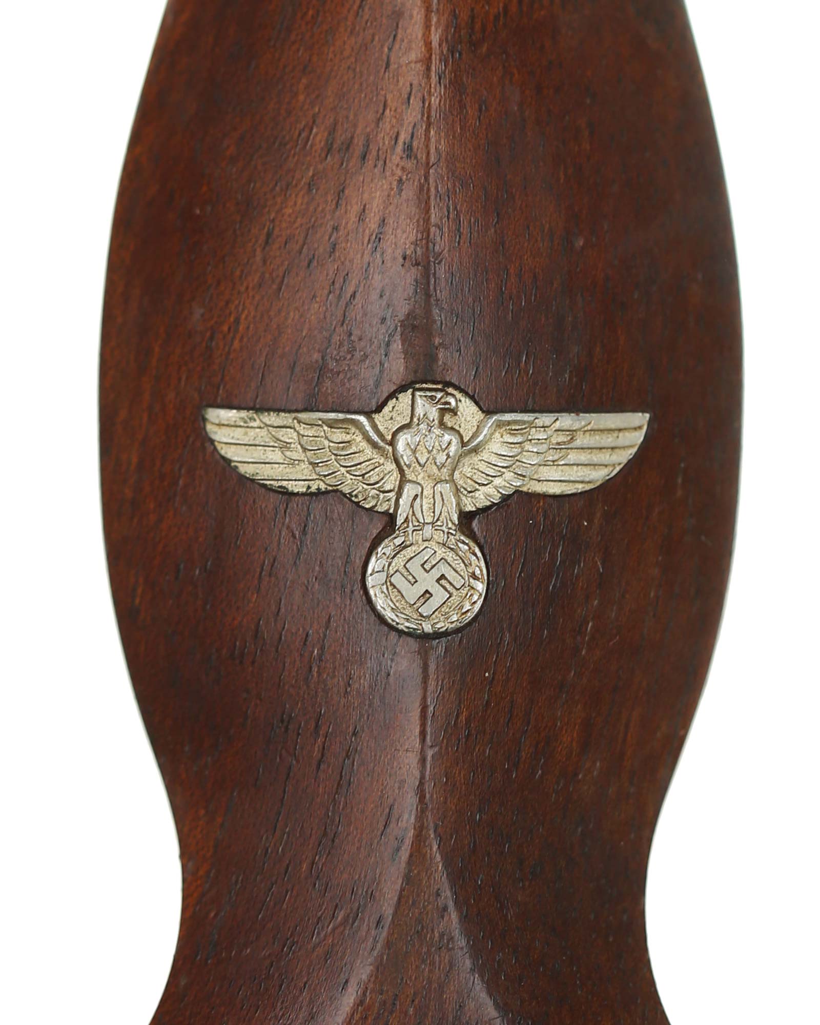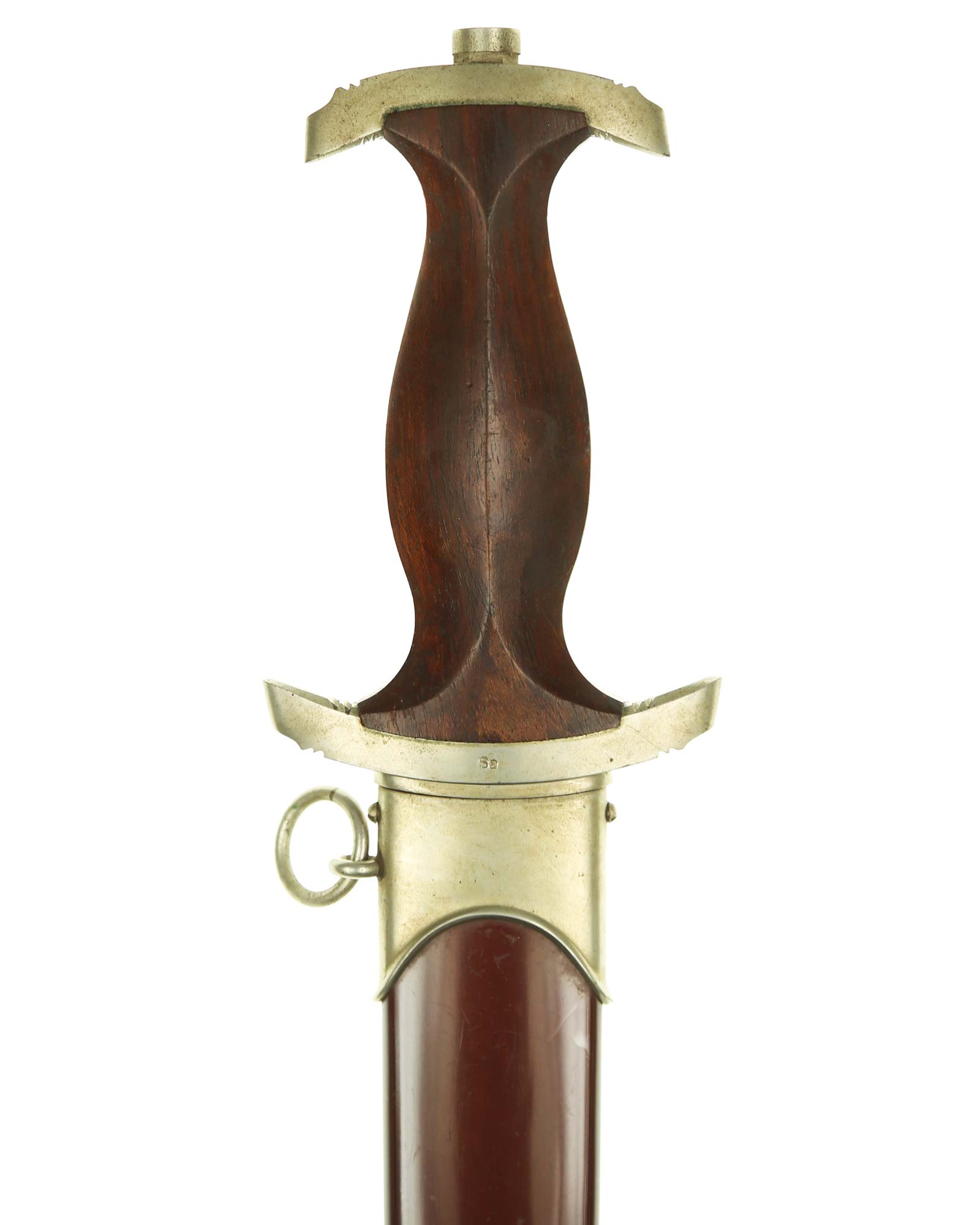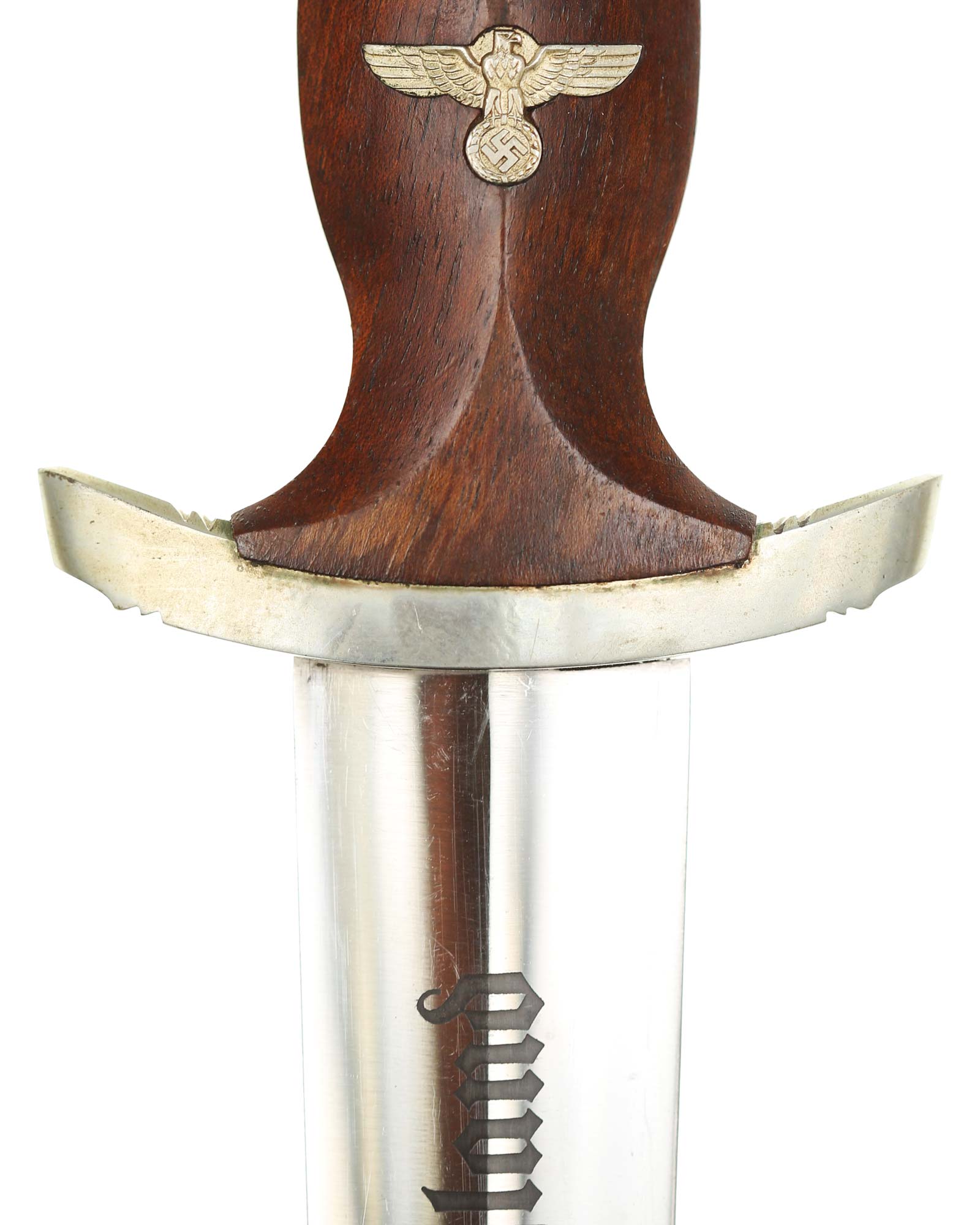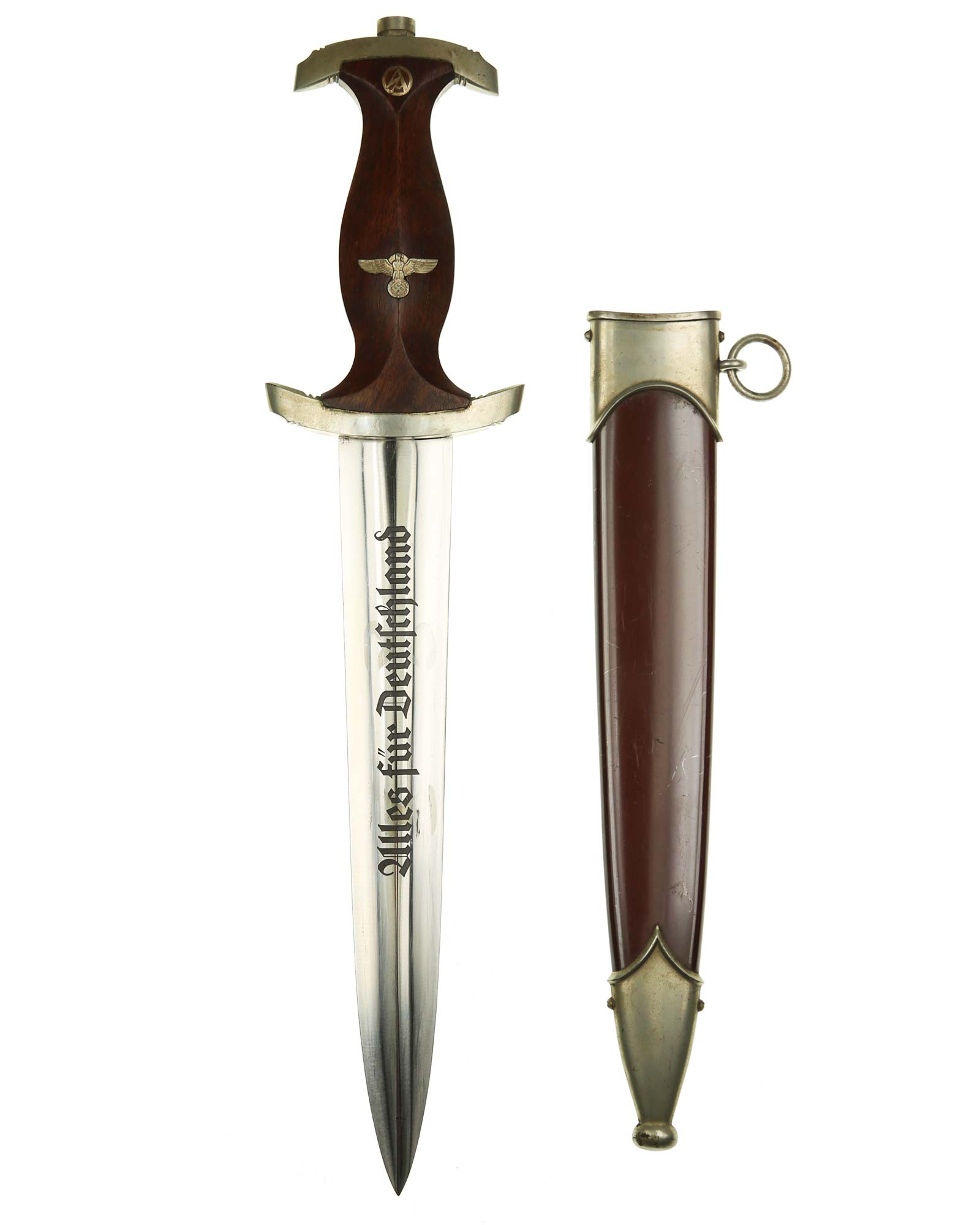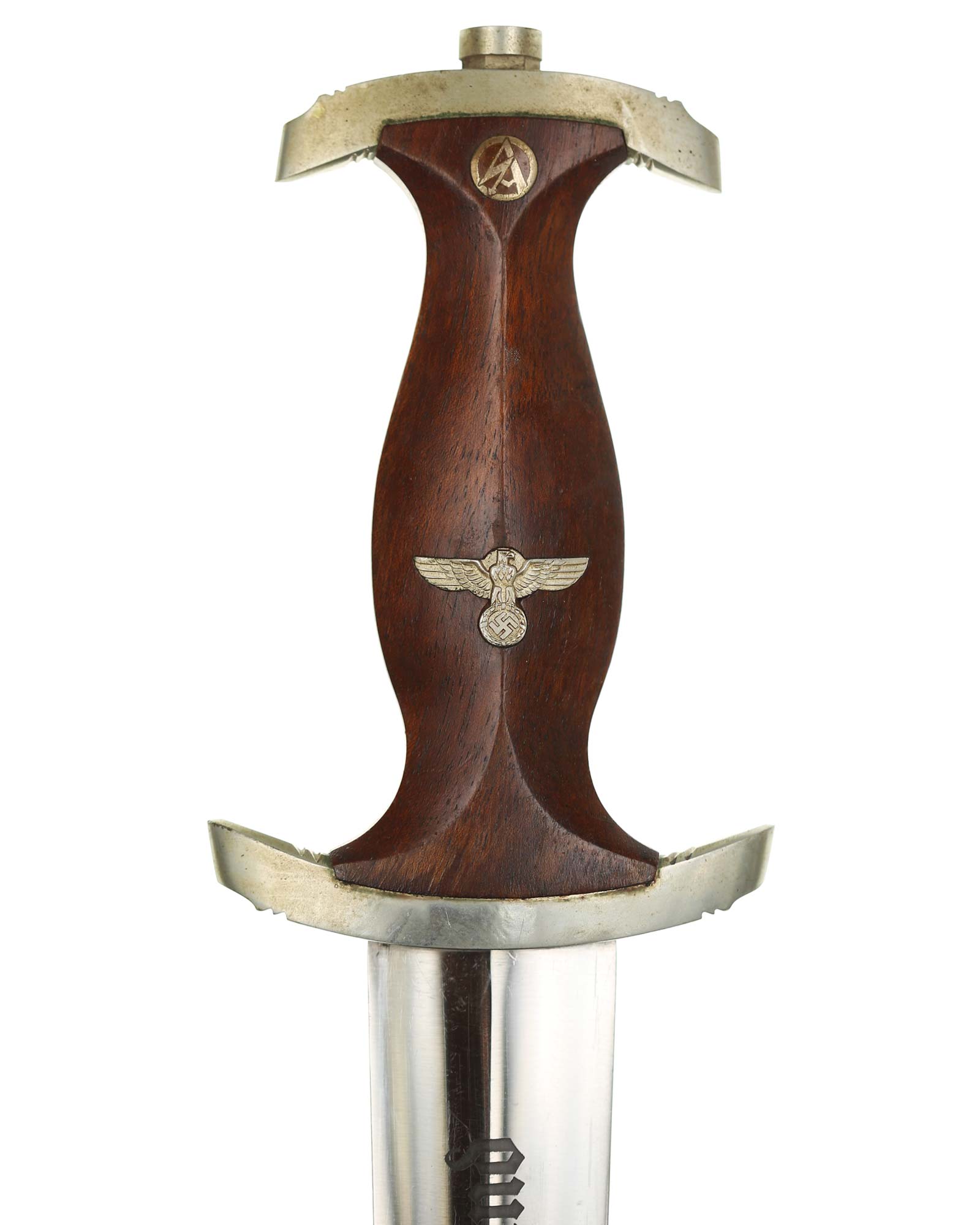 Клинок: Клинок кинжала прямой, стальной, двулезвийный, кинжального типа, с выраженным центральным ребром. На одной стороне клинка методом травления нанесен девиз СА «Всё для Германии» (Alles für Deutschland). Клинок на оборотной стороне у основания стоит клеймо производителя Ц. Г. Хенель Зуль (C. G. Haenel Suhl).