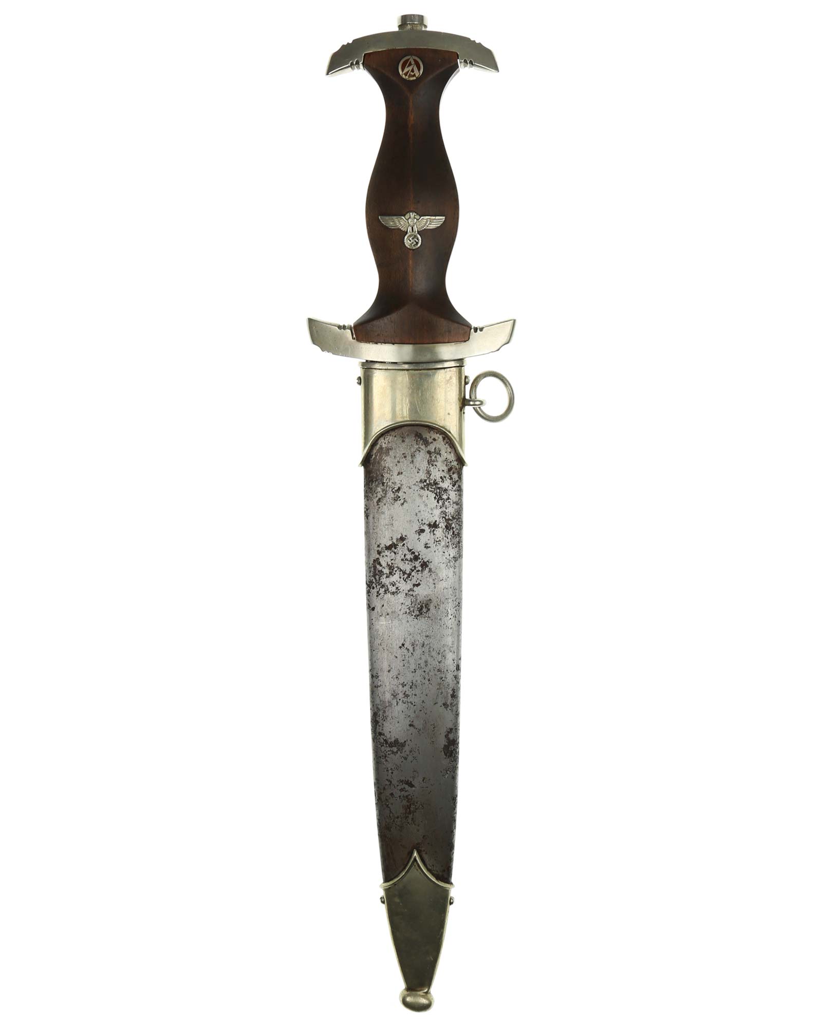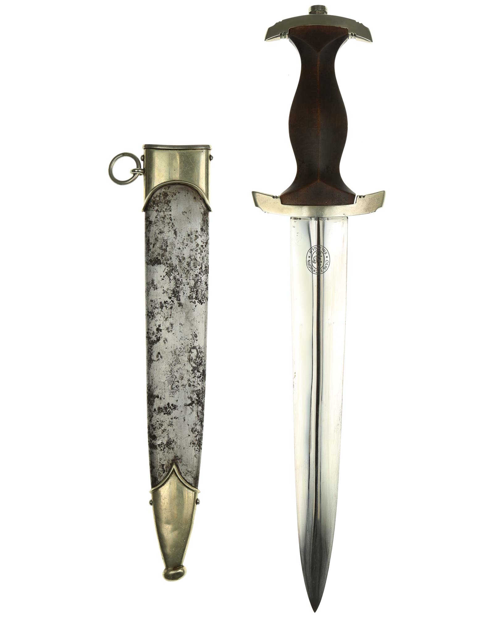 Ранний кинжал штурмовых отрядов СА образца 1933 года. Ранний период производства, 1933-1935 годы. Производитель фирма Карл Айкхорн Золинген (Carl Eickhorn Solingen). Длина в ножнах 37,2 см.