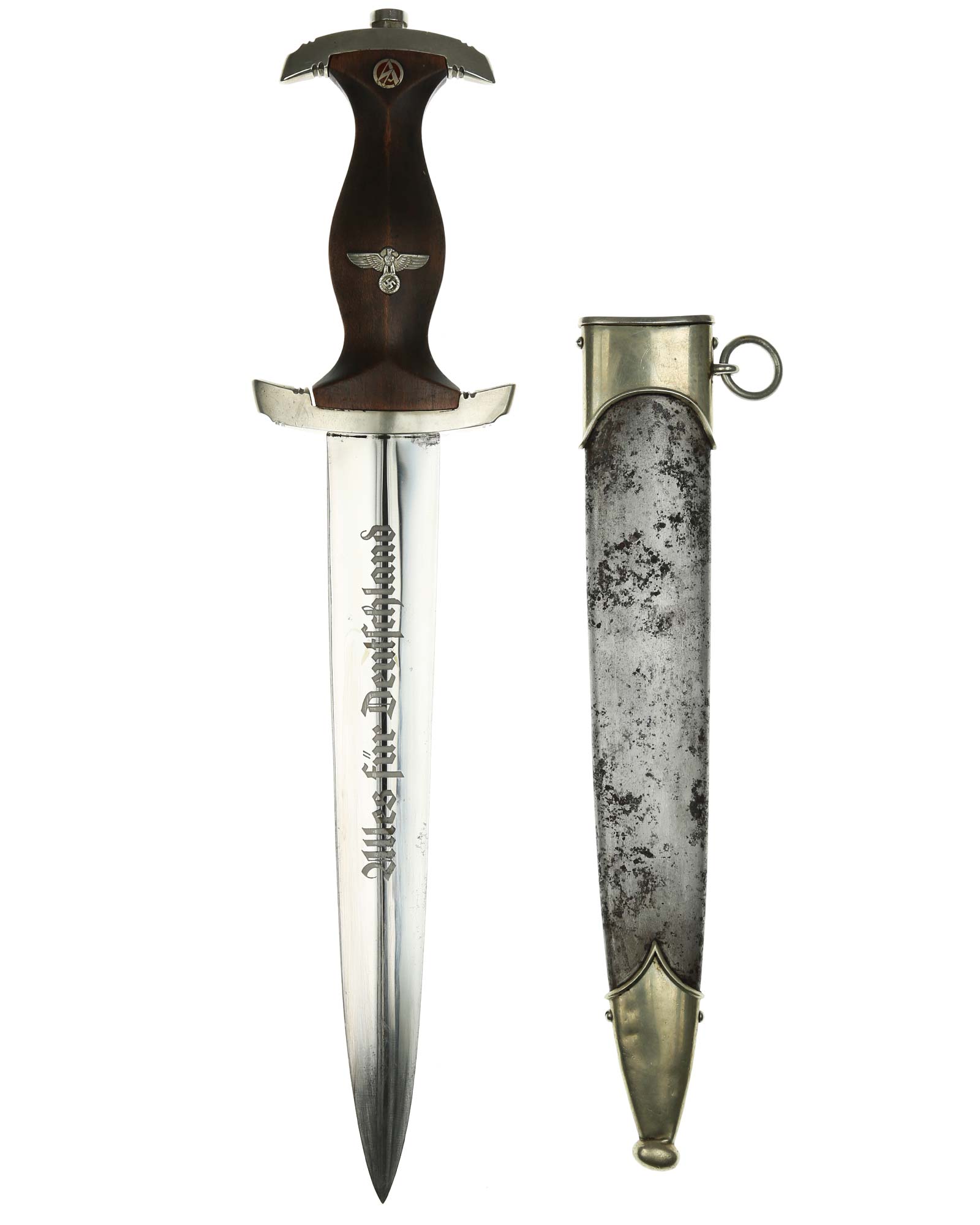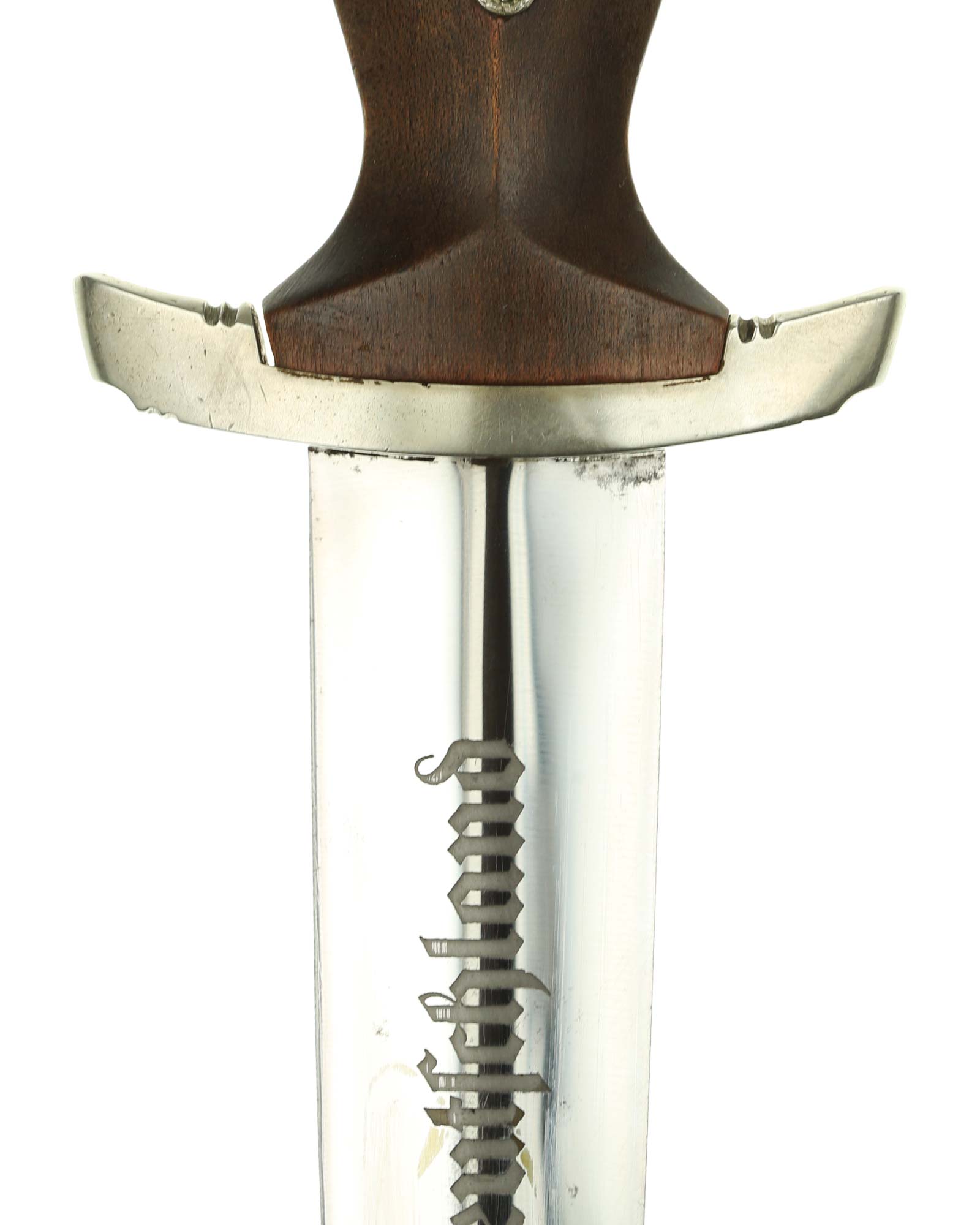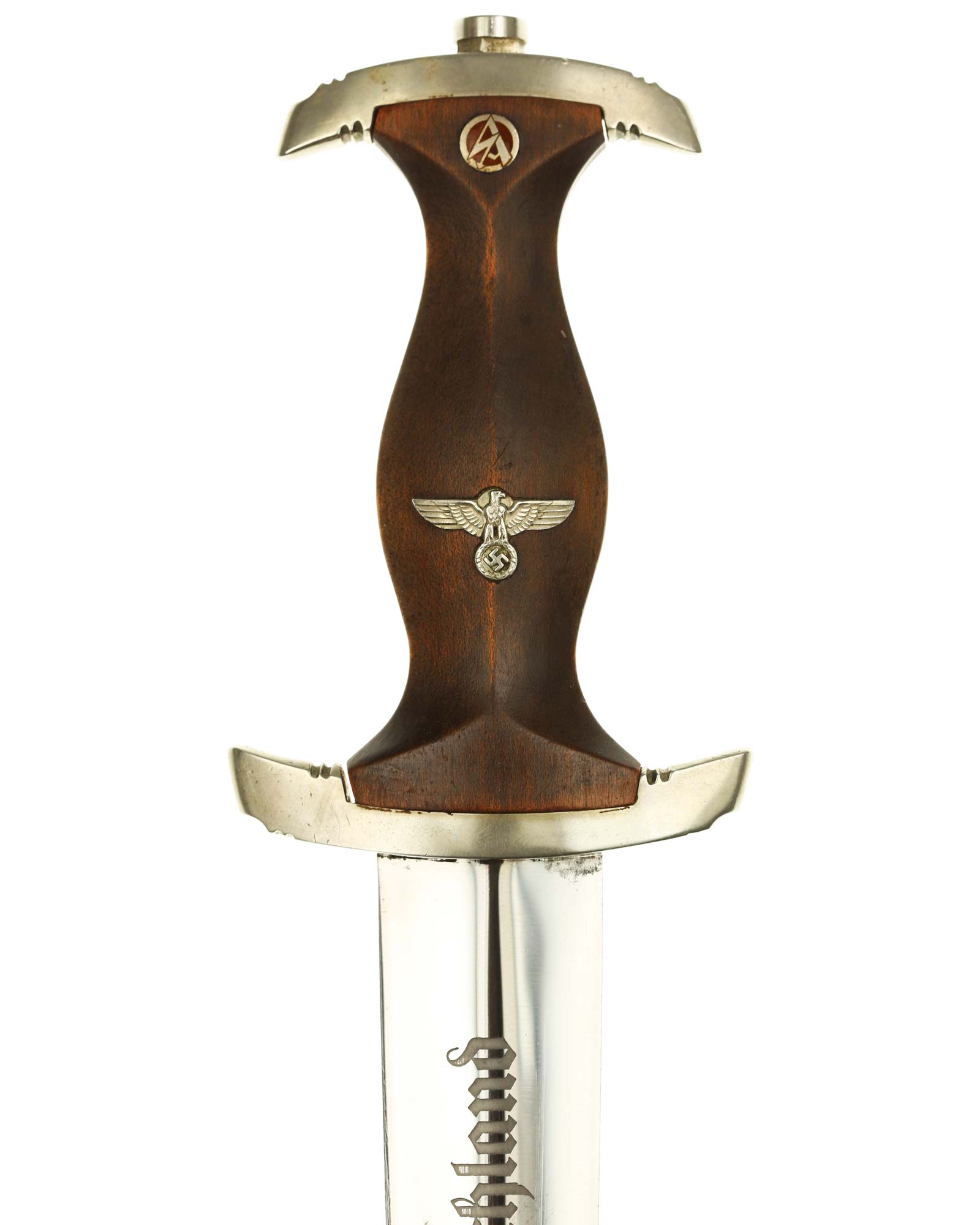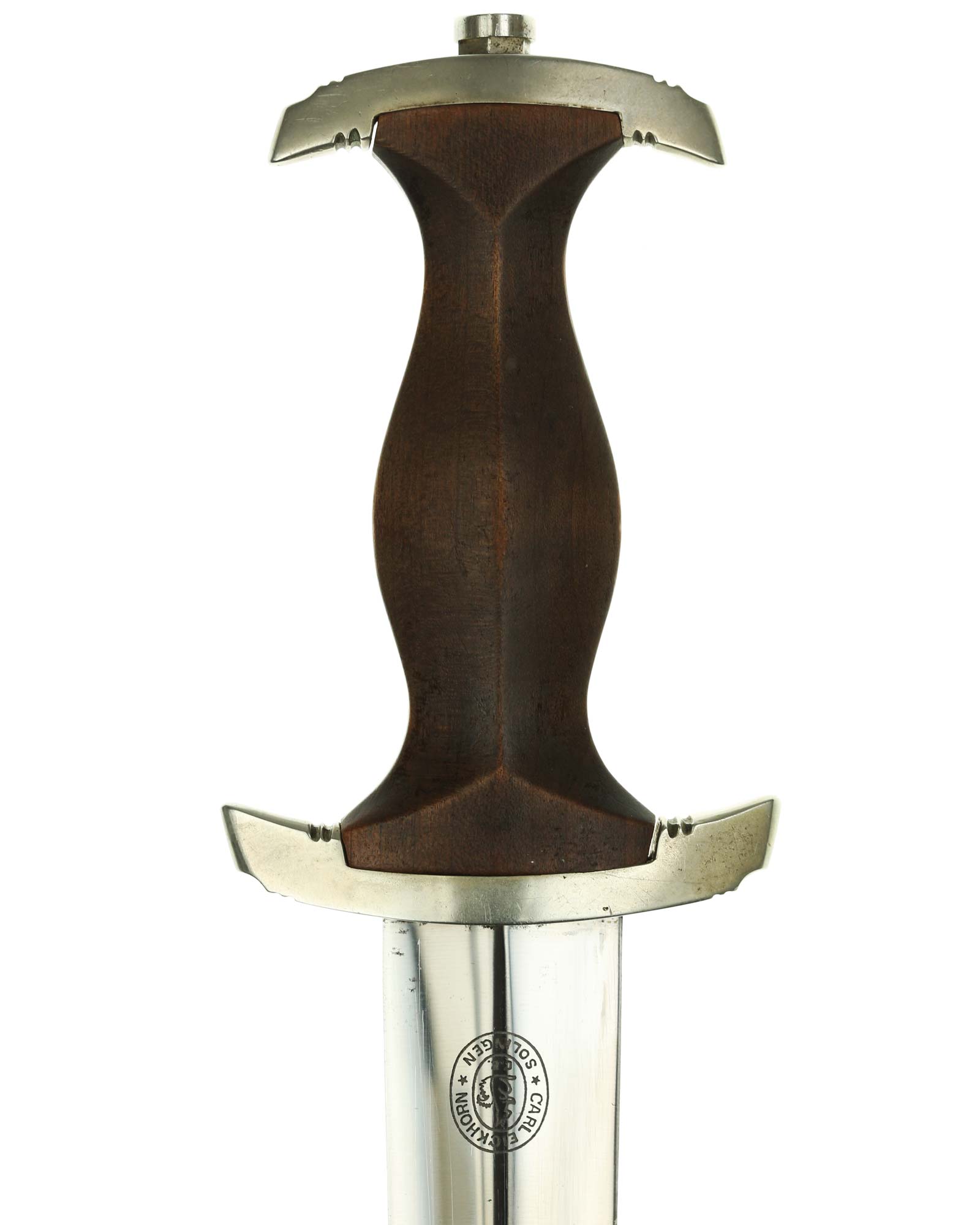 Клинок: Клинок кинжала прямой, стальной, двулезвийный, кинжального типа, с выраженным центральным ребром. На одной стороне клинка методом травления нанесен девиз СА «Всё для Германии» (Alles für Deutchland). Клинок на оборотной стороне у основания стоит клеймо производителя Карл Айкхорн Золинген (Carl Eickhorn Solingen).
