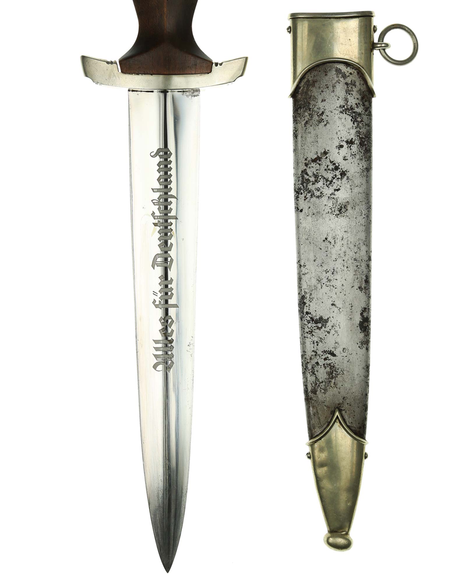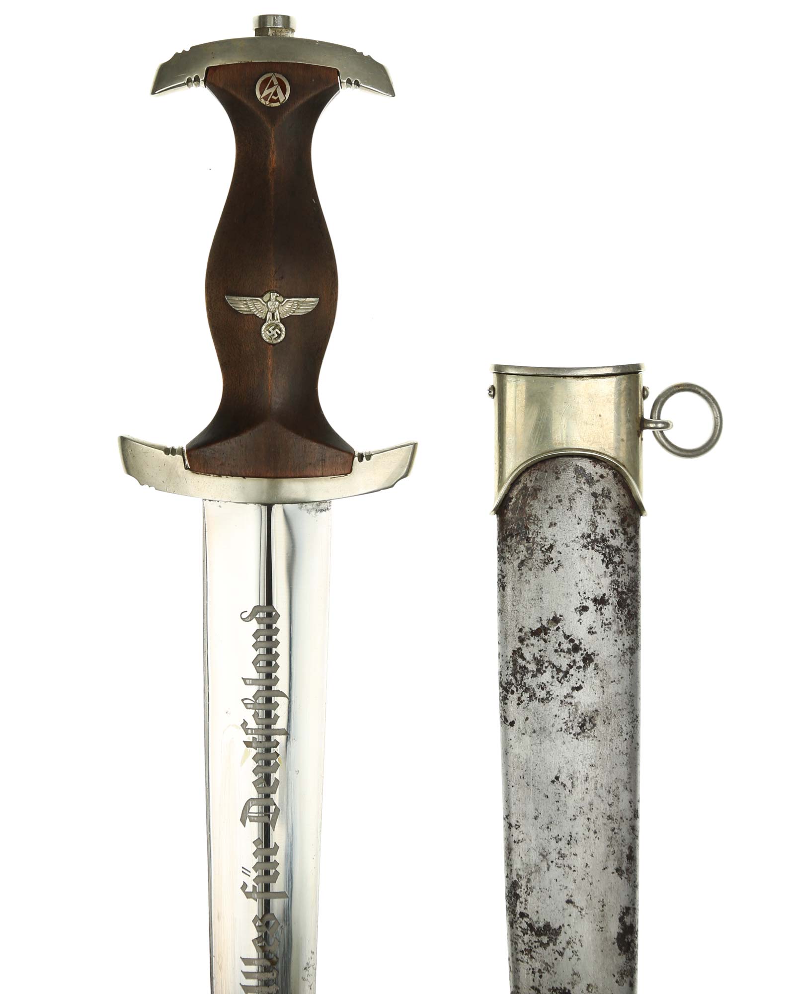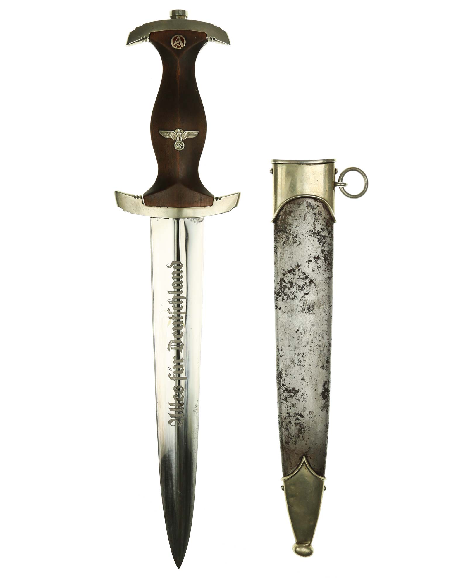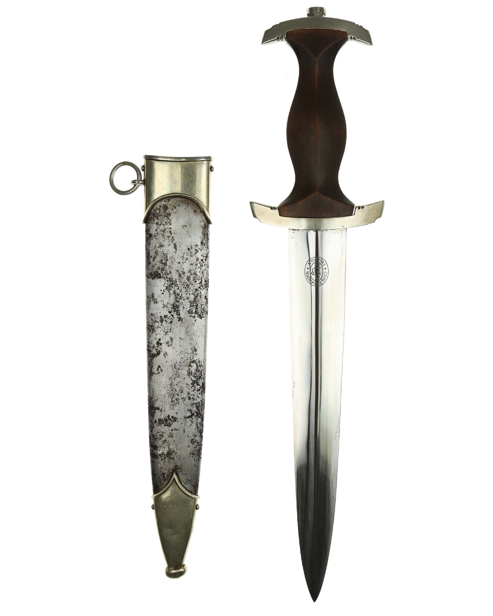 Клинок: Клинок кинжала прямой, стальной, двулезвийный, кинжального типа, с выраженным центральным ребром. На одной стороне клинка методом травления нанесен девиз СА «Всё для Германии» (Alles für Deutchland). Клинок на оборотной стороне у основания стоит клеймо производителя Карл Айкхорн Золинген (Carl Eickhorn Solingen).