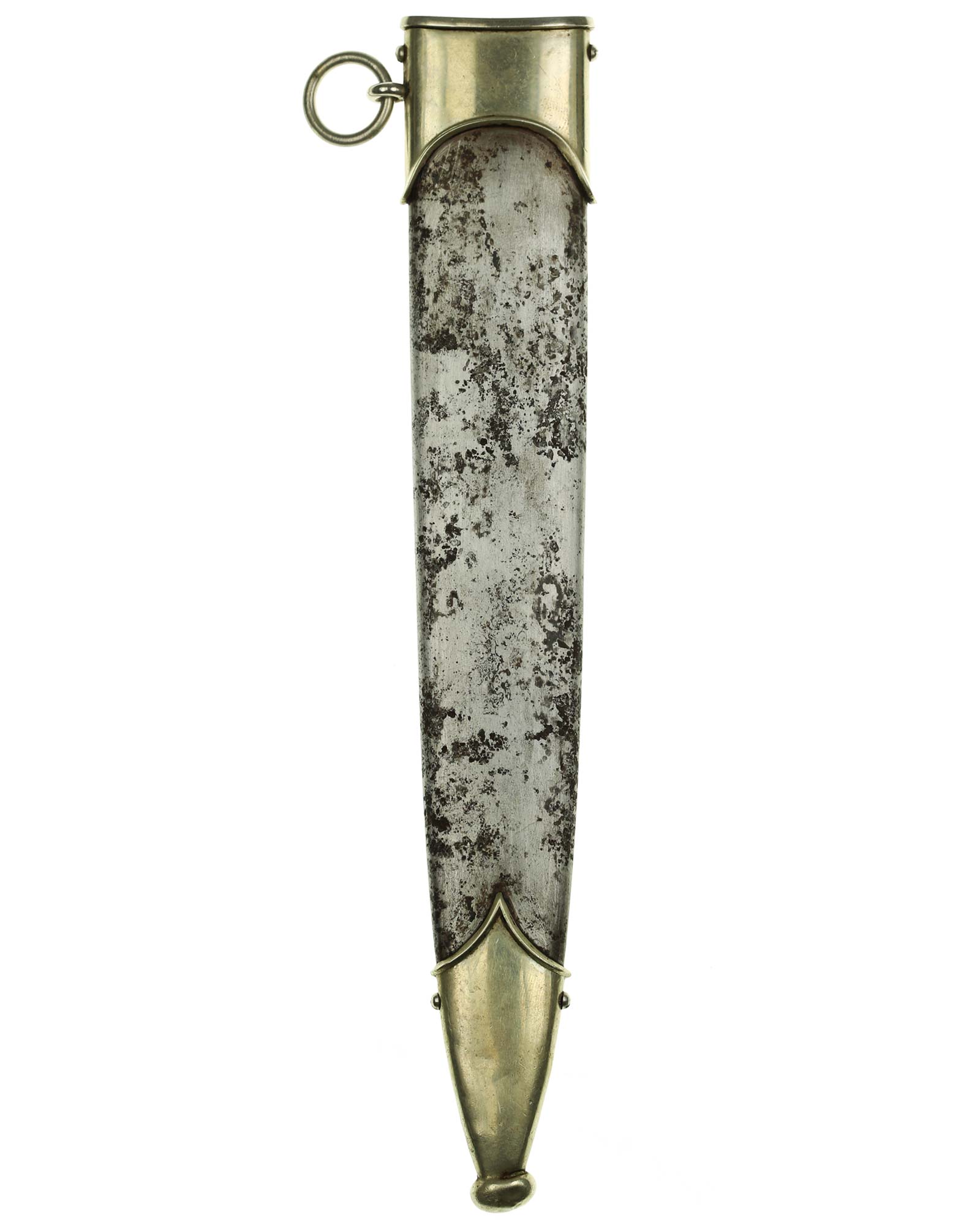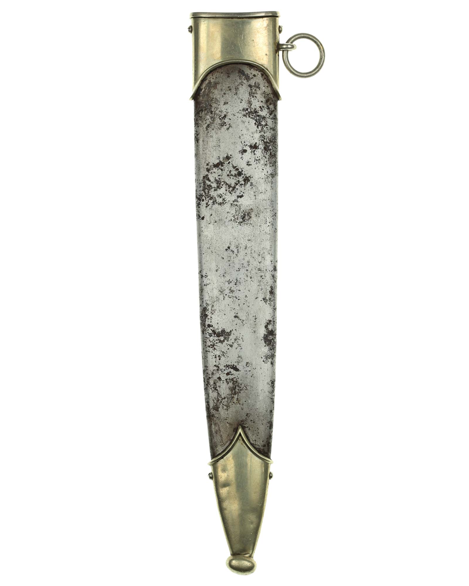 Ножны: Ножны стальные с накладными наконечником и устьем. Наконечник и устье ножен крепятся при помощи двух винтов. Прибор ножен изготовлен из белого металла и состоит из устья с гайкой.