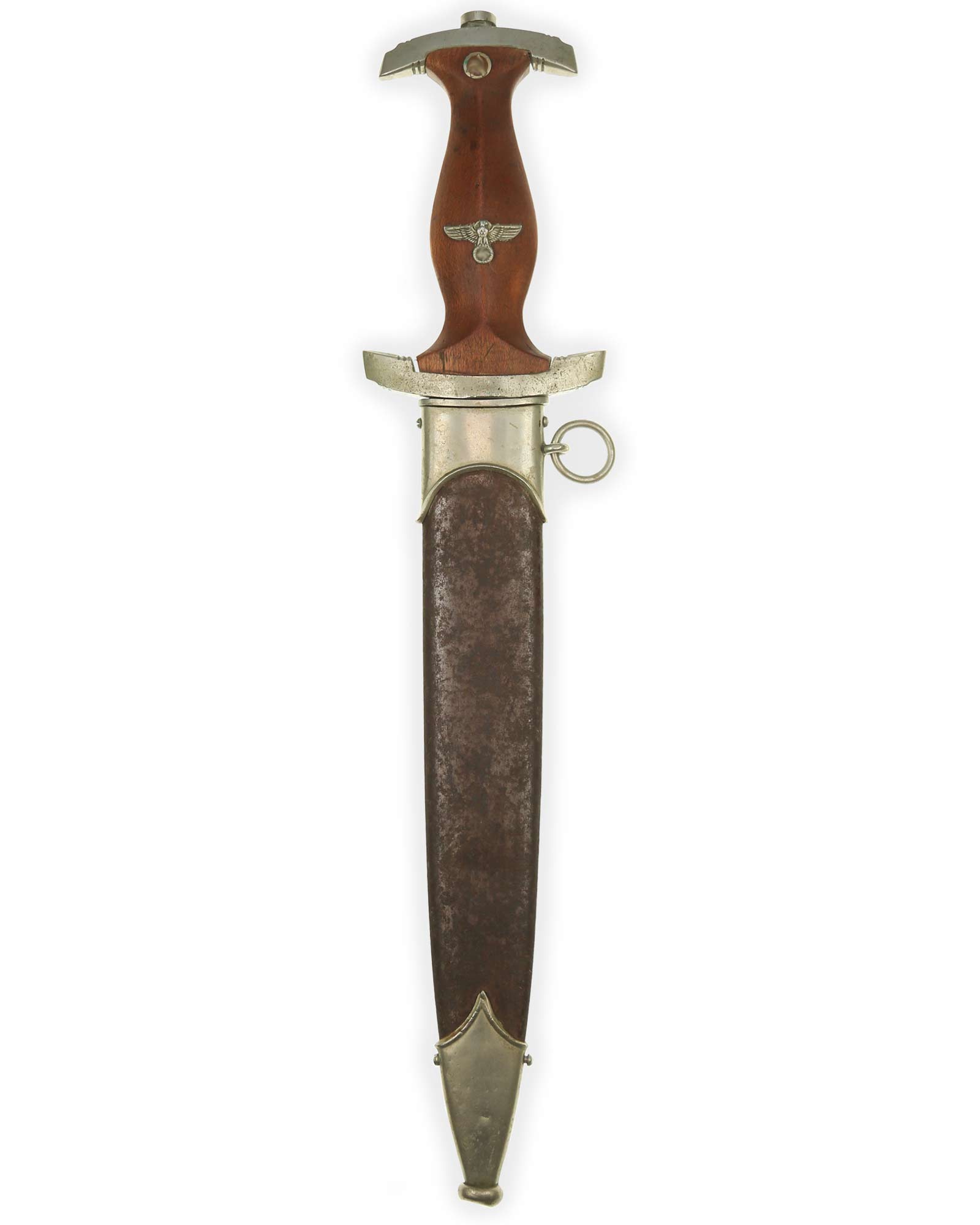 Ранний кинжал штурмовых отрядов СА образца 1933 года. Ранний период производства, 1933-1935 годы. Производитель фирма Эрнст Эрих Виттэ Золинген (Ernst Erich Witte Solingen). Длина в ножнах 37,1 см.